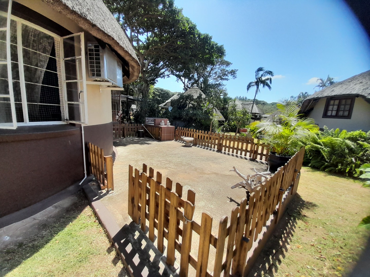 This townhouse offers a unique blend of coastal living with its thatched rondavel design. The property features two bedrooms (including a loft), a bathroom, and an open- plan kitchen and lounge area. Enjoy the convenience of a built-in braai on the patio, perfect for entertaining or relaxing outdoors.