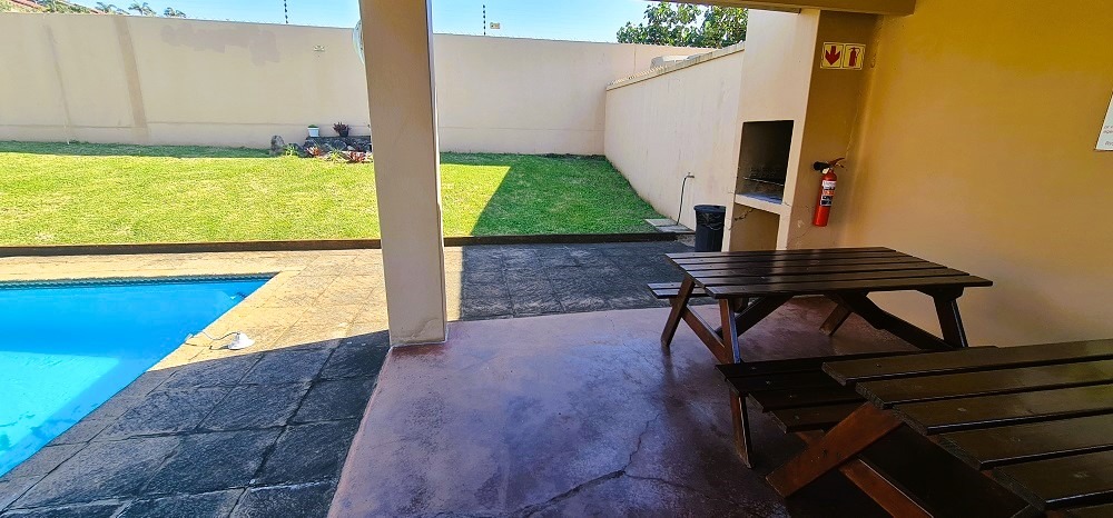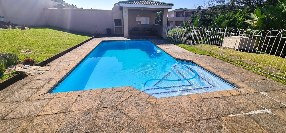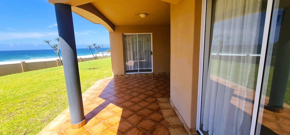 Stunning beachfront unit with beautiful sea view situated in a well-maintained complex with lovely gardens and sparkling communal swimming pool with braai area designed to offer both comfort and sense of community for its residents. The complex , which is walking distance from the very popular Hibberdene Blue flag main beach, also has back up water as well as an electric fence right around connected to a reliable security company.