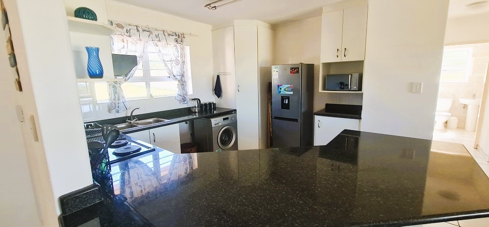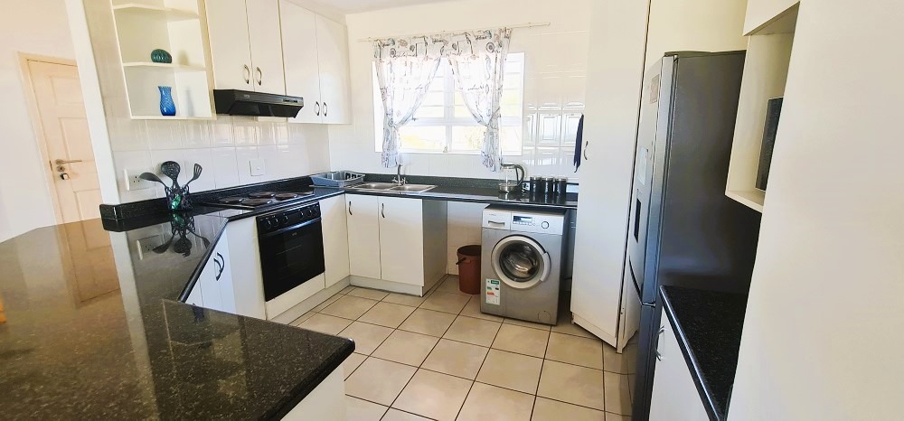 Offering an open plan kitchen, dining room and lounge leading through sliding doors to a spacious balcony with built in braai and lovely sea view. Three bedrooms with build in cupboards of which the main bedroom and second bedroom also offer sliding doors leading onto the balcony and the third bedroom has its own balcony, two large bathrooms, storage room and a double garage. Overall , this beachfront unit offers a luxurious and peaceful retreat, with sea view as the focal point of the living space which is filled with light during the day, and at night, the sound of the waves provides a tranquil backdrop. Please contact agent for an appointment to view.