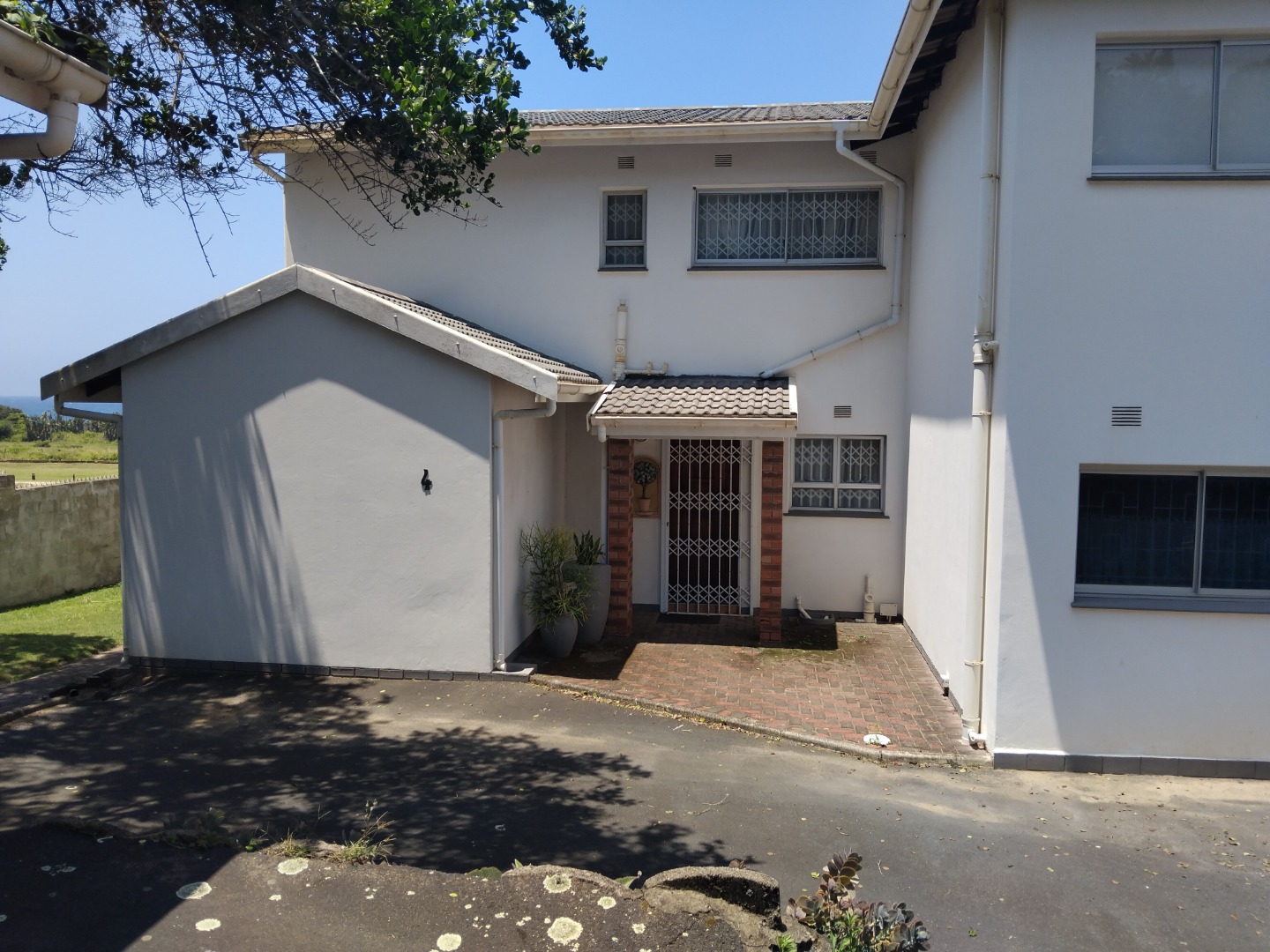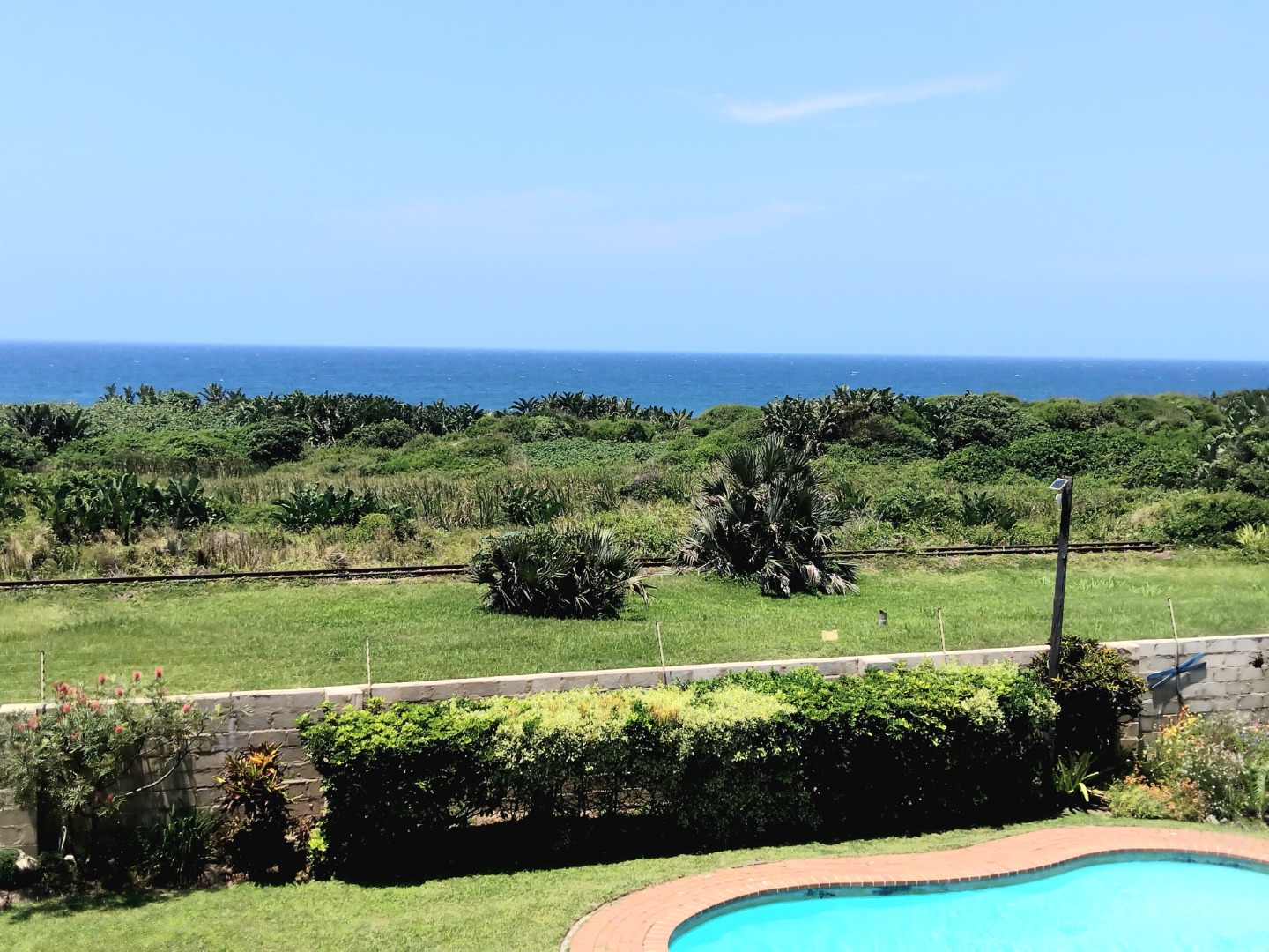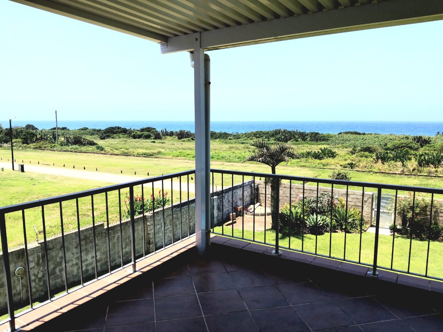The allure extends outdoors to a private oasis, where a sparkling swimming pool beckons for refreshing dips amidst lush, well-maintained gardens. A private balcony and a charming patio provide idyllic settings for al fresco dining or simply savoring the magnificent ocean vistas that stretch to the horizon. A single garage ensures secure parking, enhancing the property's practical appeal. Ensuring peace of mind, the residence is fortified with an alarm system, access gate, and burglar bars, all within a totally walled perimeter. Practical amenities include water tanks, contributing to sustainable living in this coastal haven.