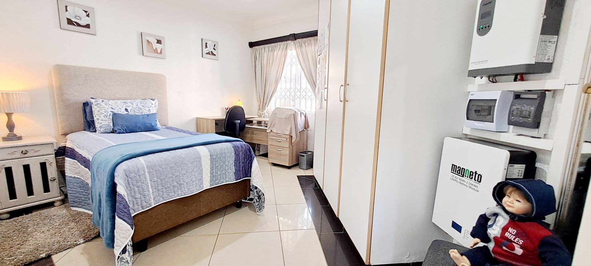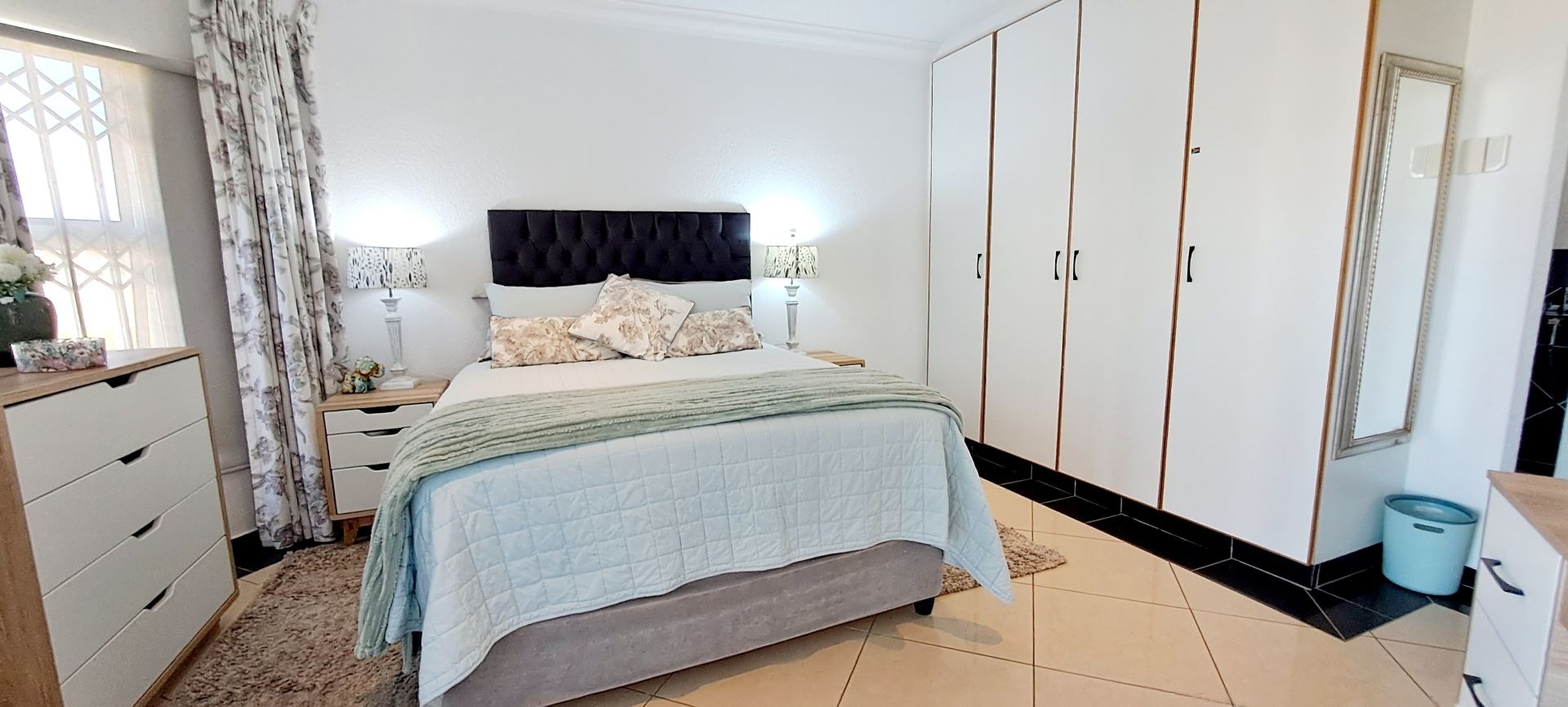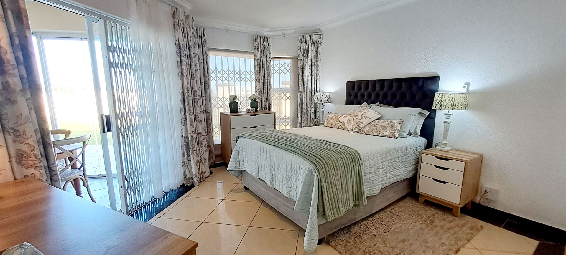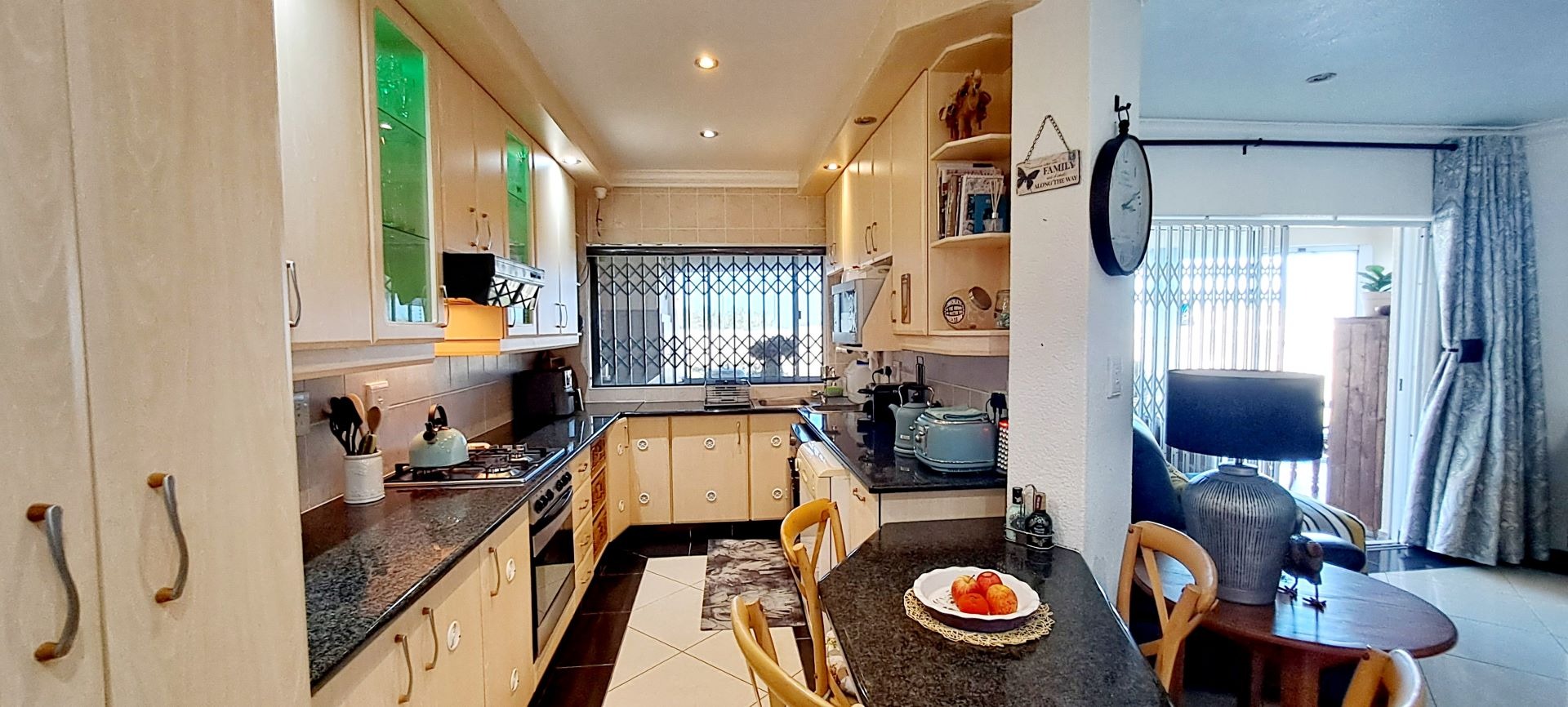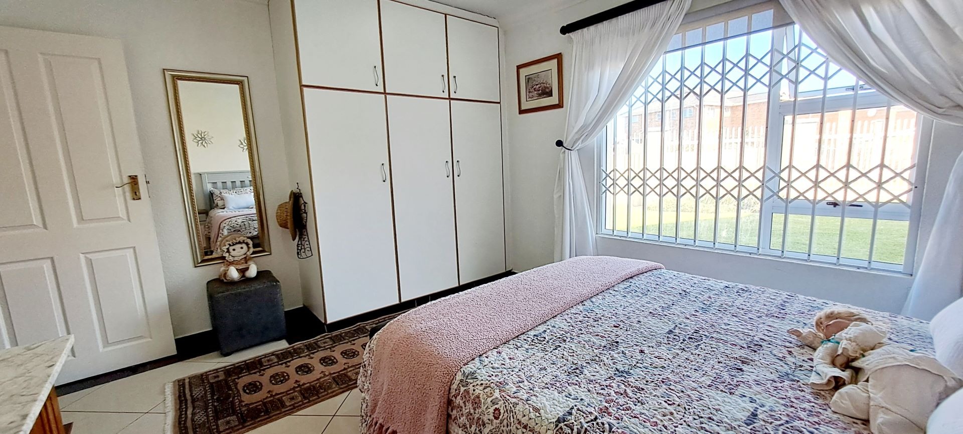 Outdoor amenities include a private swimming pool with a paved sundeck and a built-in braai, perfect for entertaining. The property provides a single garage and an additional parking space. As part of a secure complex, residents benefit from electric fencing, an access gate, burglar bars, and security gates. A battery inverter ensures power backup, and the home is wheelchair friendly. Enjoy sea views from this waterfront property.