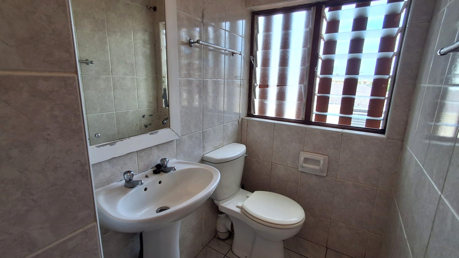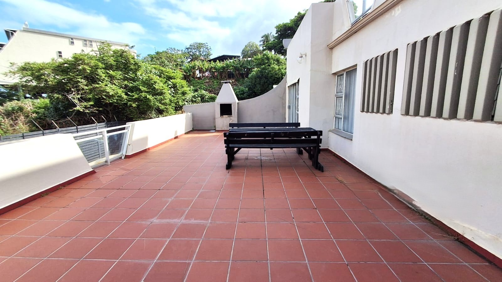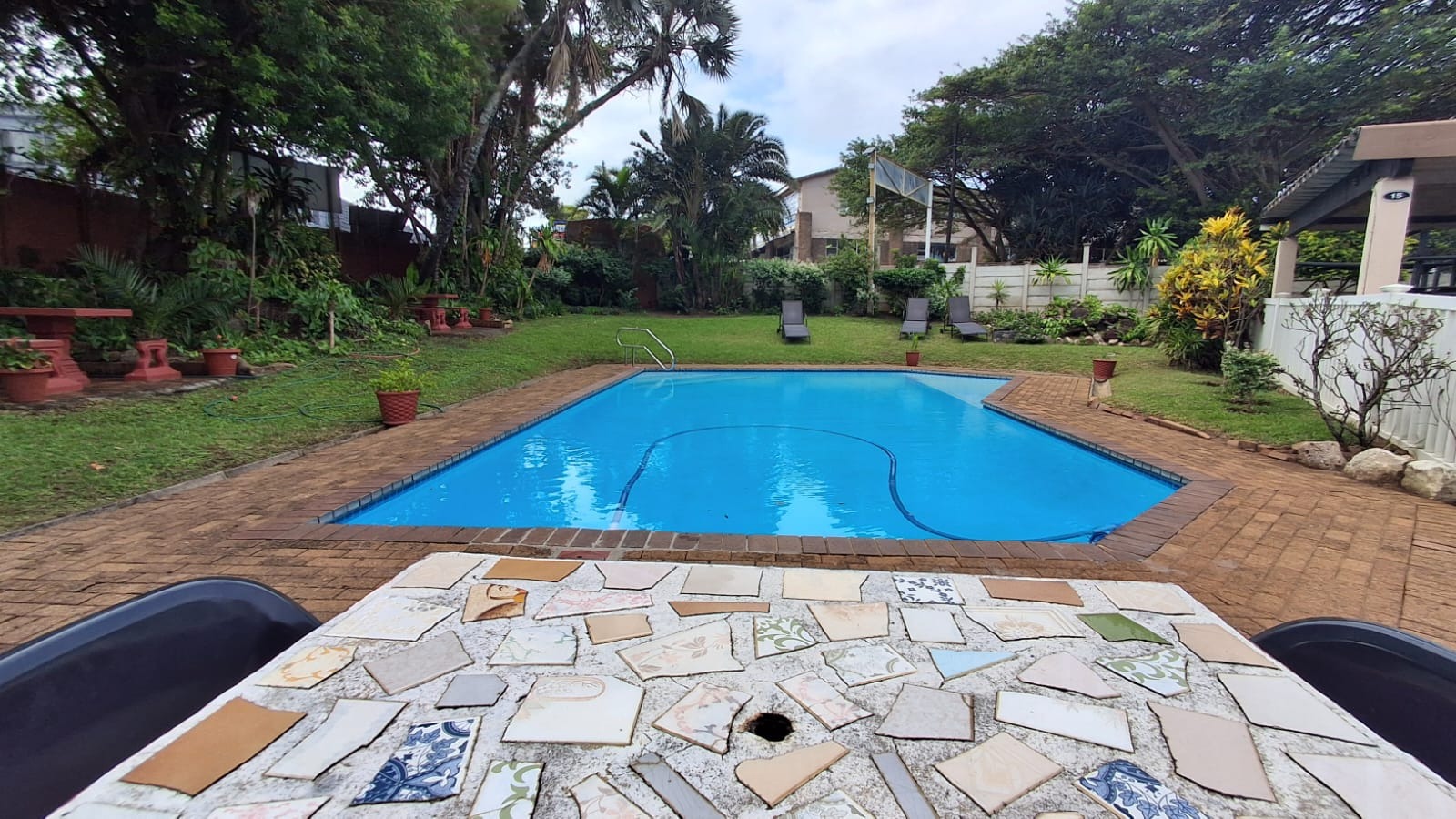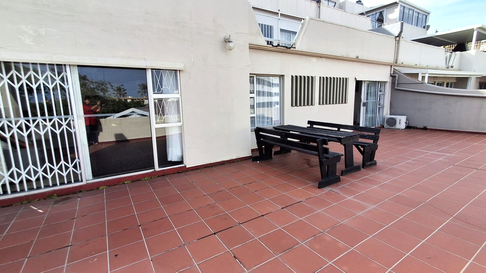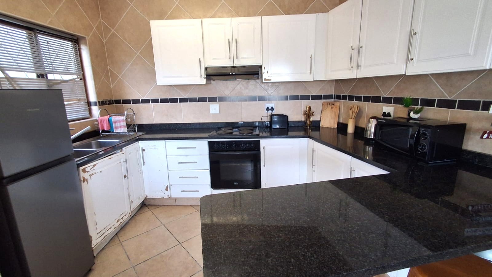 Discover this inviting 2-bedroom, 2-bathroom apartment located in a secure gated community in Manaba Beach, Margate. This residential sale offers a comfortable 142 sqm of living space, designed for modern coastal living. The property features a unique terraced architectural style with multiple balconies, providing ample outdoor enjoyment and a well-maintained green lawn area. Step inside to an open-plan living area, complete with a spacious lounge and tiled flooring throughout, ensuring easy maintenance. The kitchen is functional and well-equipped, featuring white cabinetry, black countertops, a double sink, and modern appliances including a stove/oven and stainless steel refrigerator. Natural light fills the space, complemented by a ceiling fan for comfort. Both bedrooms are designed for relaxation, offering bright and tidy spaces with comfortable beds and tiled floors. The main bedroom includes a ceiling fan and air conditioning for optimal climate control. The two bathrooms are conveniently located to serve the residents and guests. Outside, residents can enjoy a clean, inviting swimming pool with ample leisure space, perfect for unwinding. The property boasts stunning panoramic sea views from an elevated position, with the beach and breaking waves visible, making it an ideal holiday home. Security is enhanced with an access gate and security bars on some windows and doors, providing peace of mind. Additional features include one parking bay and water tanks for sustainability.