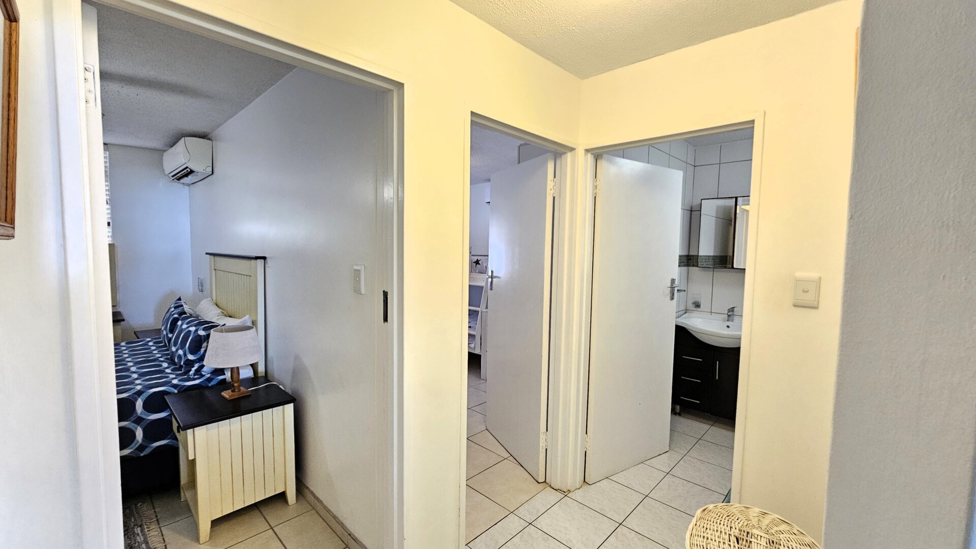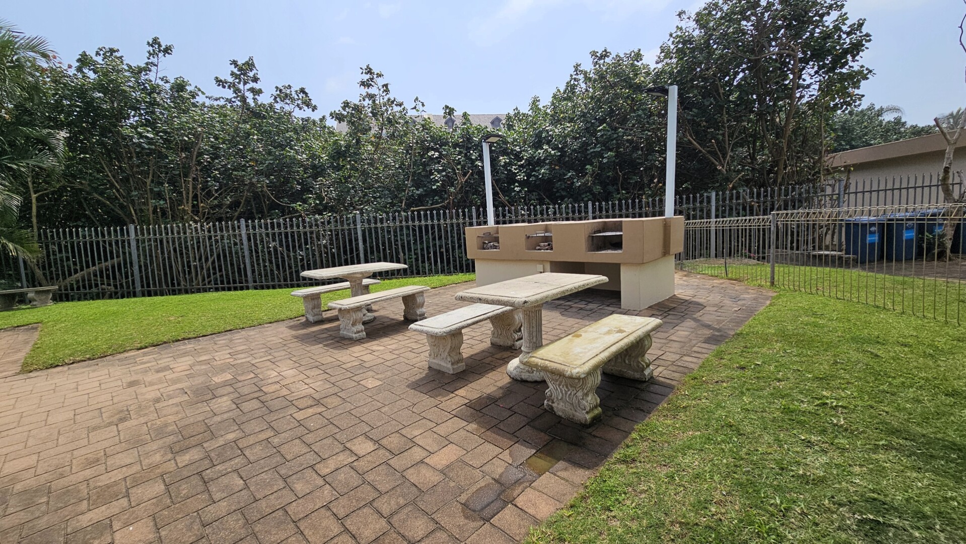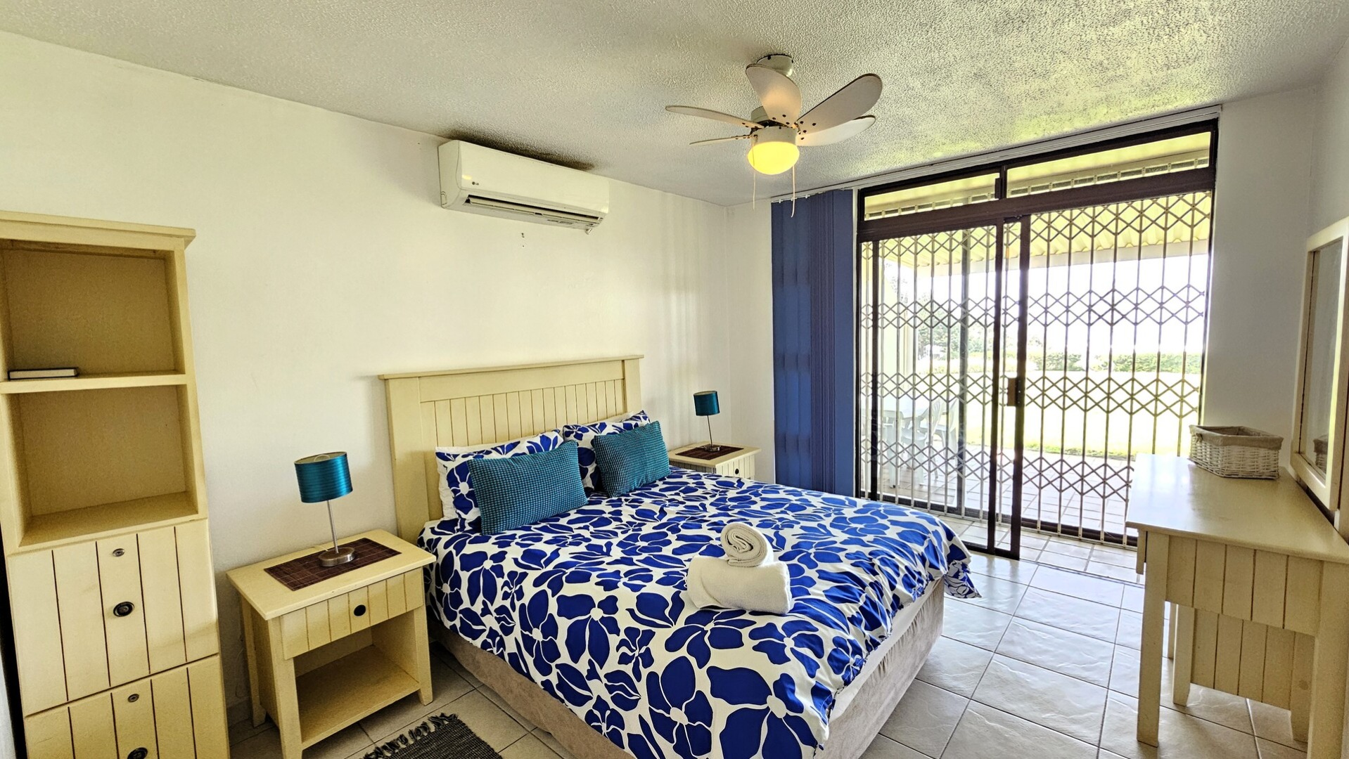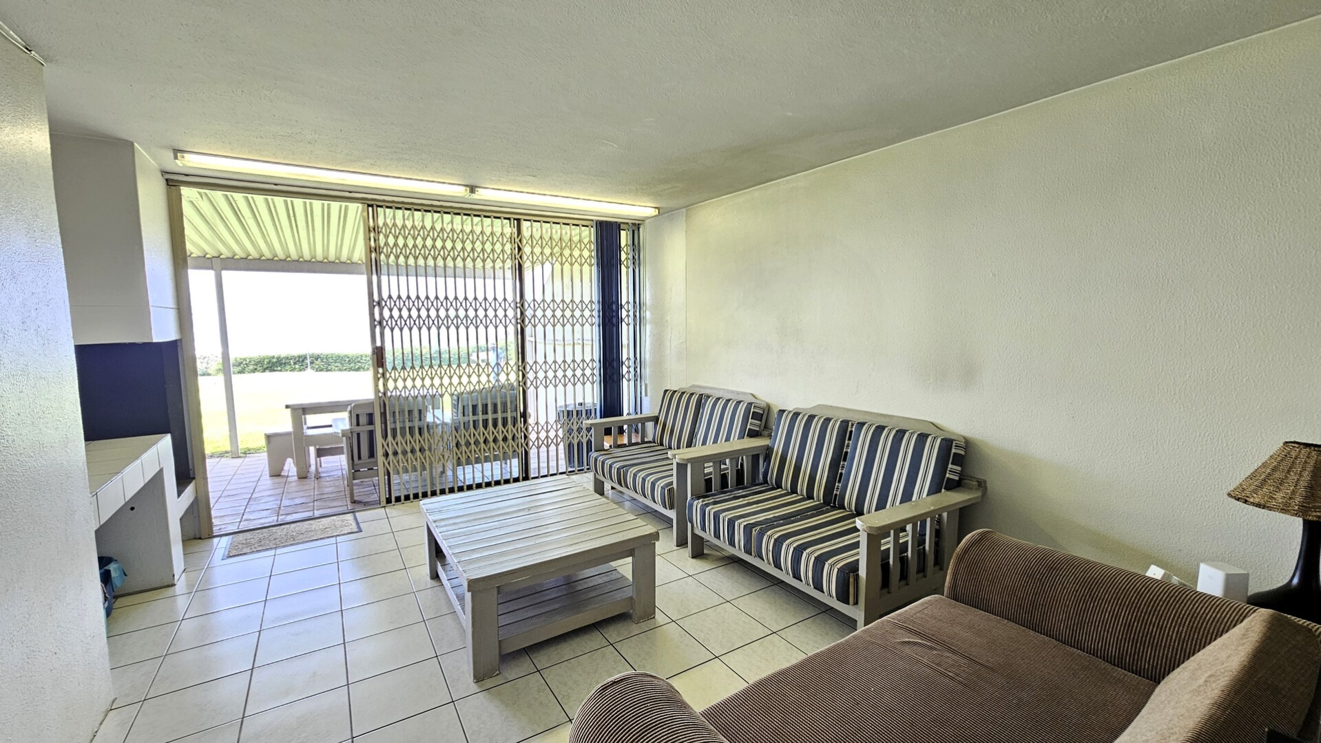 This inviting 3-bedroom, 2-bathroom apartment, located in a desirable complex in Manaba Beach, offers comfortable coastal living with a floor size of 149 sqm. Designed for practicality and ease, the apartment features an open-plan lounge, dining area, and kitchen, all adorned with tiled flooring for simple maintenance. Air conditioning units and ceiling fans ensure comfort throughout the year, while the apartment comes fully furnished, ready to be your new holiday home. The functional kitchen provides ample cabinet space, an integrated oven and hob, an extractor fan, and a double sink, catering to everyday needs. The three well-proportioned bedrooms include one en-suite bathroom, offering privacy and convenience. Both bathrooms are fully tiled and feature modern vanities and glass-enclosed showers. Additional practical amenities within the complex include a dedicated laundry area and domestic rooms. Step outside to enjoy the private patio, perfect for relaxation. The complex boasts a refreshing swimming pool and a communal braai area, ideal for entertaining and enjoying the South African climate. With a single garage and a garden, this property combines convenience with outdoor enjoyment. Its wheelchair-friendly design ensures accessibility for all.
