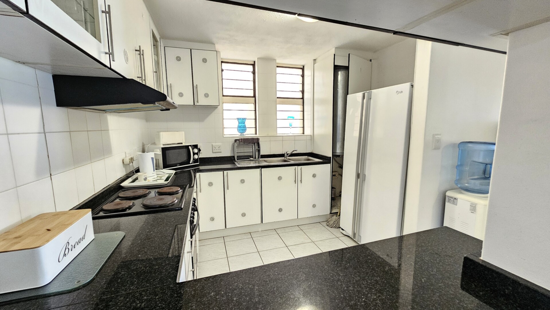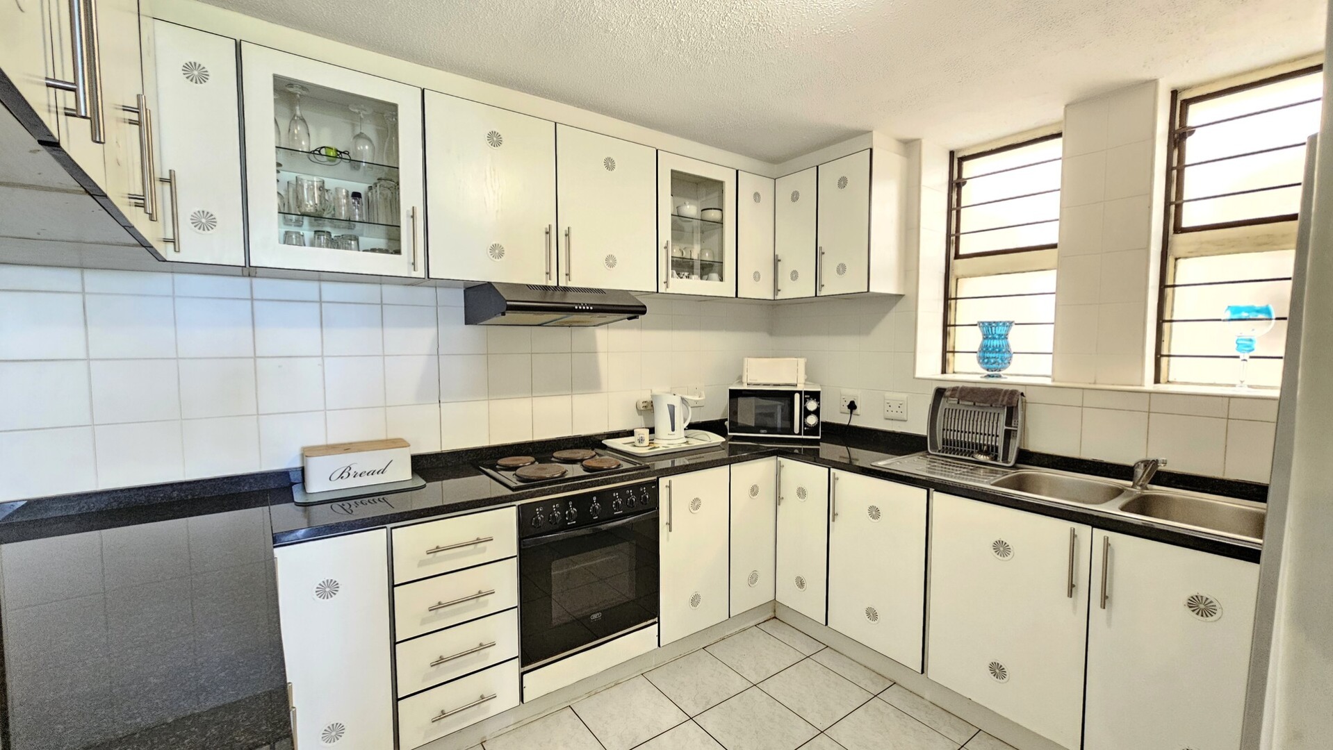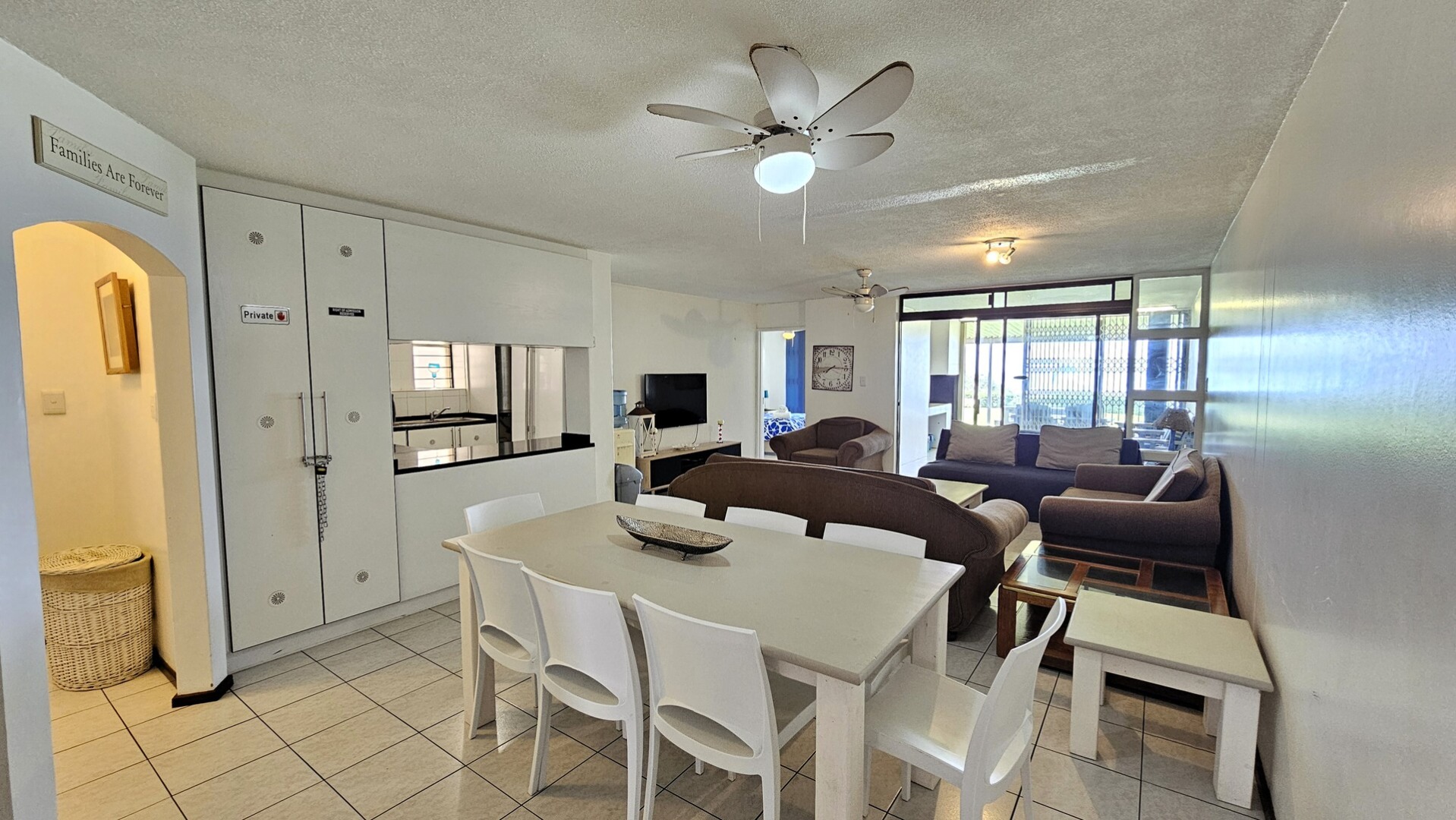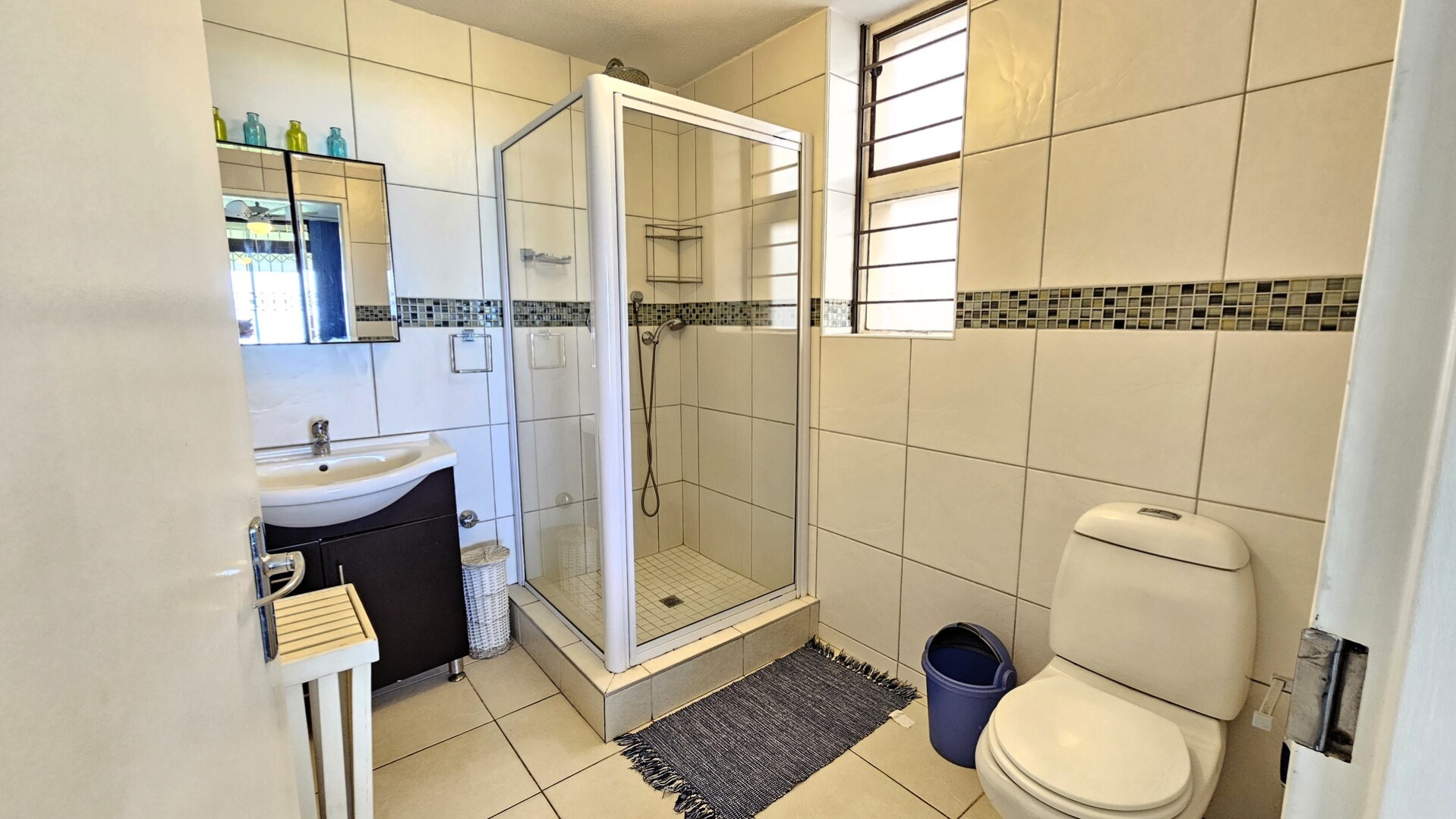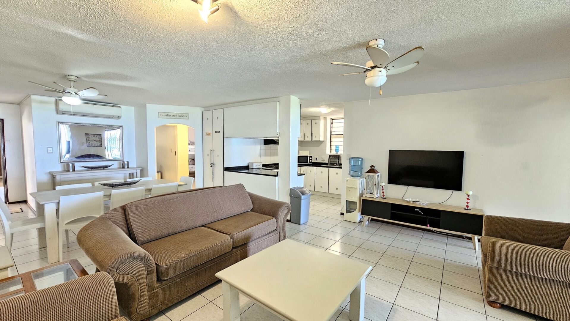This inviting 3-bedroom, 2-bathroom apartment, located in a desirable complex in Manaba Beach, offers comfortable coastal living with a floor size of 149 sqm. Designed for practicality and ease, the apartment features an open-plan lounge, dining area, and kitchen, all adorned with tiled flooring for simple maintenance. Air conditioning units and ceiling fans ensure comfort throughout the year, while the apartment comes fully furnished, ready to be your new holiday home. The functional kitchen provides ample cabinet space, an integrated oven and hob, an extractor fan, and a double sink, catering to everyday needs. The three well-proportioned bedrooms include one en-suite bathroom, offering privacy and convenience. Both bathrooms are fully tiled and feature modern vanities and glass-enclosed showers. Additional practical amenities within the complex include a dedicated laundry area and domestic rooms. Step outside to enjoy the private patio, perfect for relaxation. The complex boasts a refreshing swimming pool and a communal braai area, ideal for entertaining and enjoying the South African climate. With a single garage and a garden, this property combines convenience with outdoor enjoyment. Its wheelchair-friendly design ensures accessibility for all.