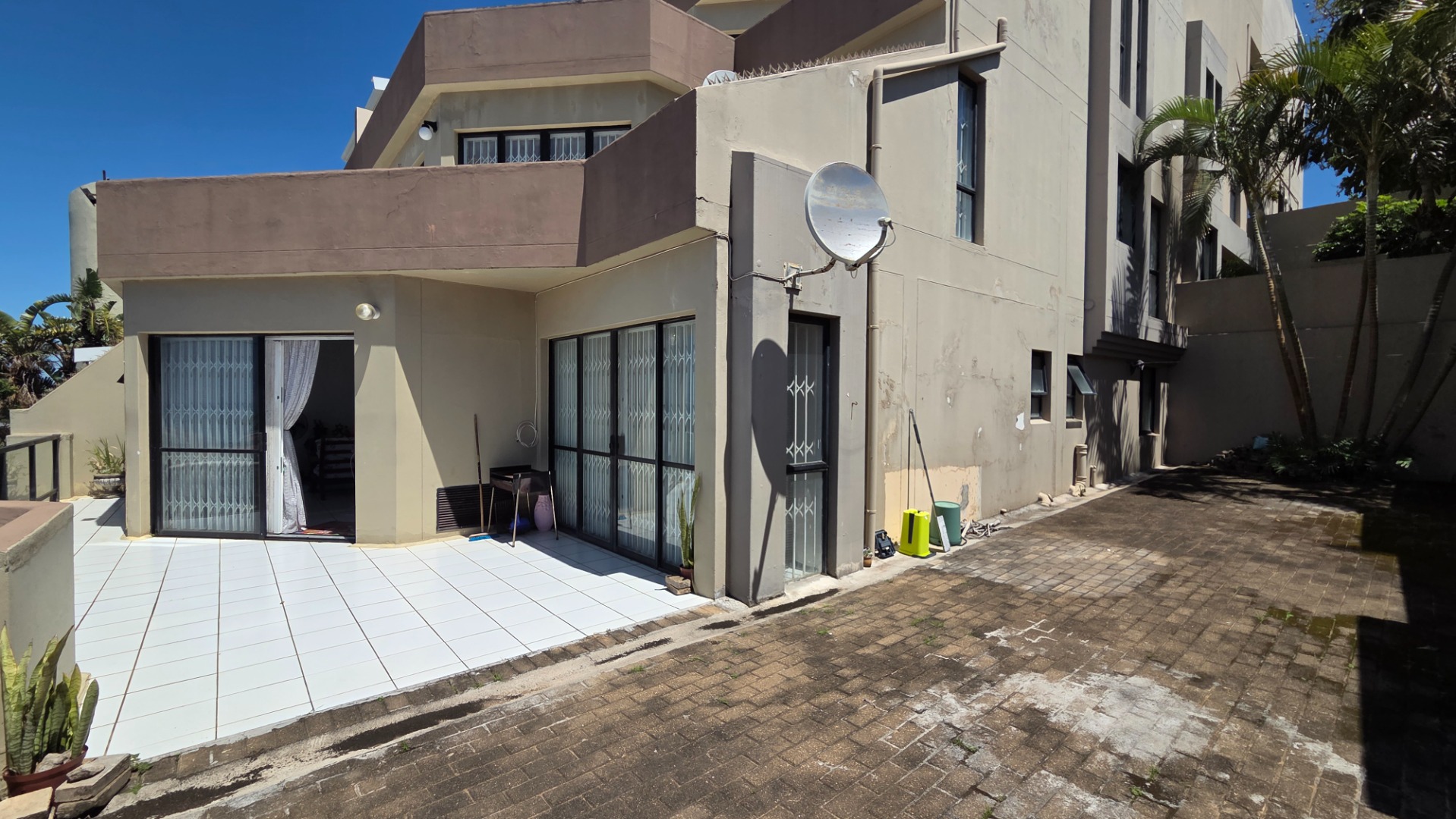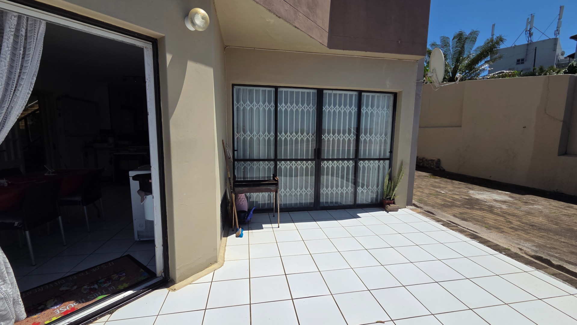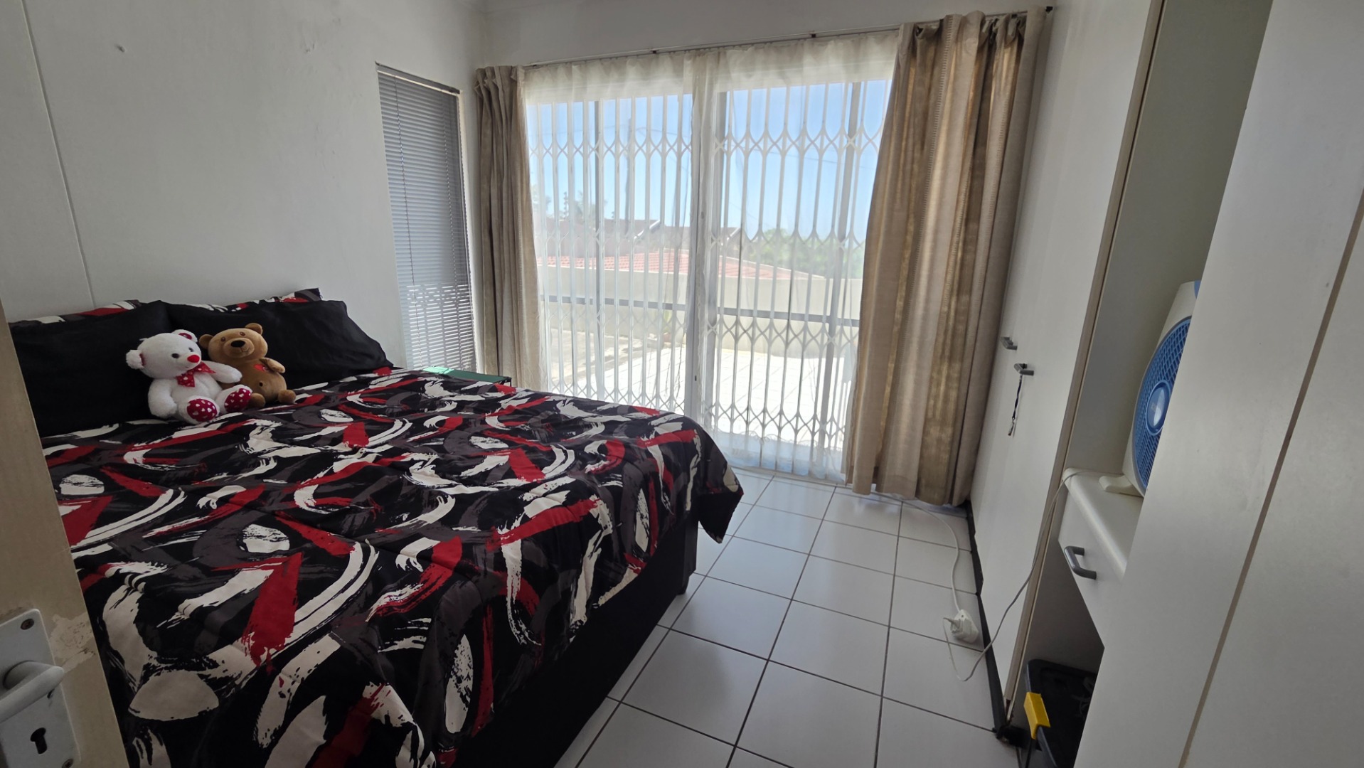 The apartment offers three comfortable bedrooms, all with tiled flooring. The main bedroom includes a built-in wardrobe and direct access to a private bathroom. A second well-appointed bathroom serves the remaining bedrooms and guests. Security bars on windows and a security gate on the sliding door provide peace of mind, allowing you to fully embrace the coastal lifestyle.
