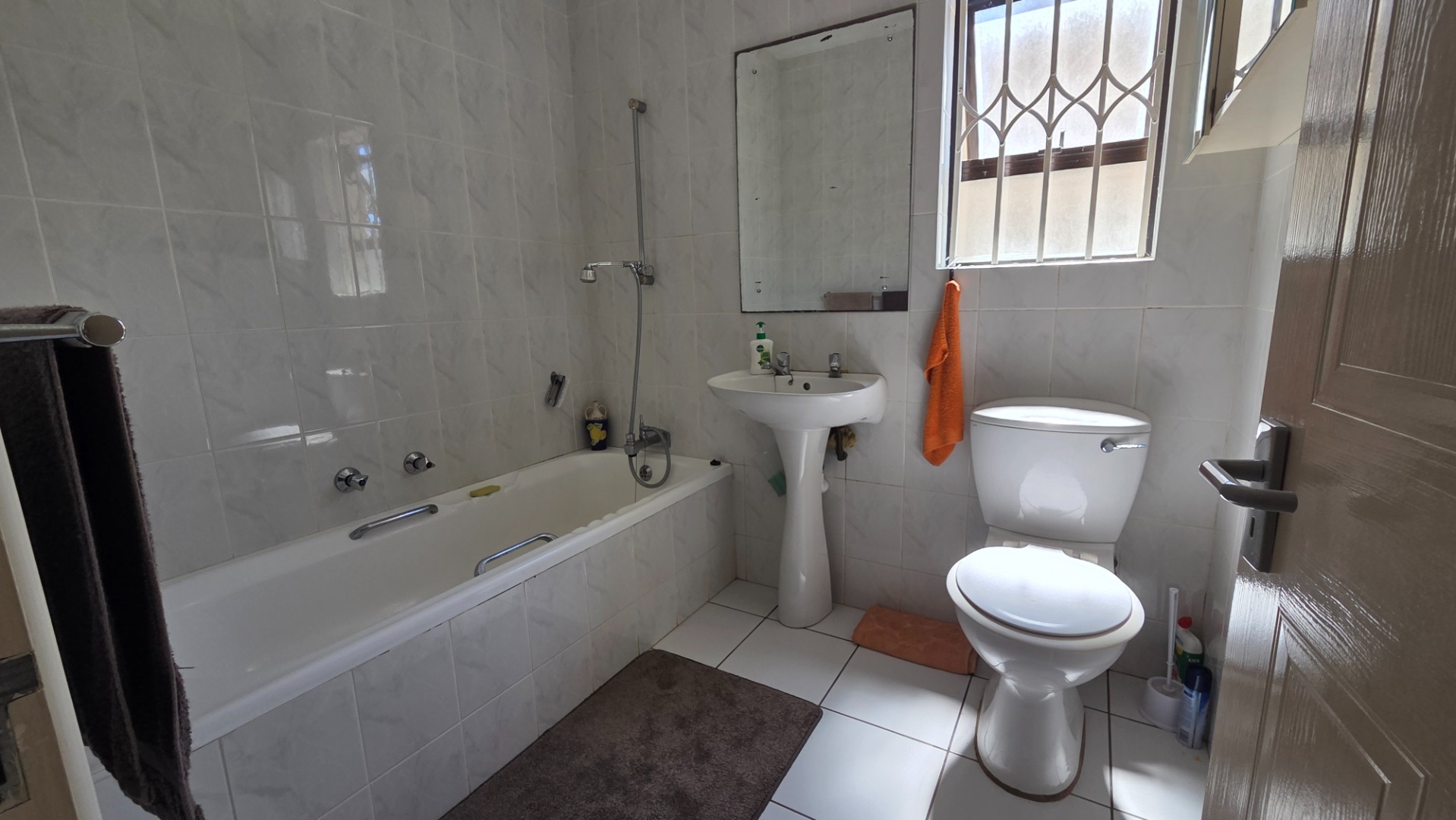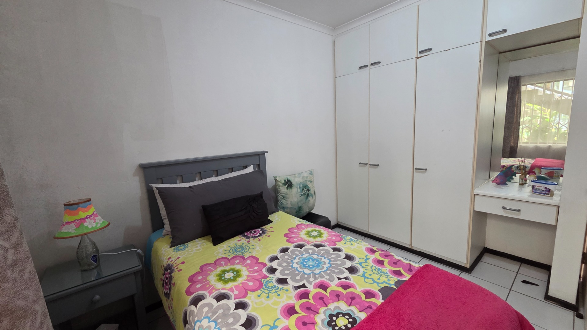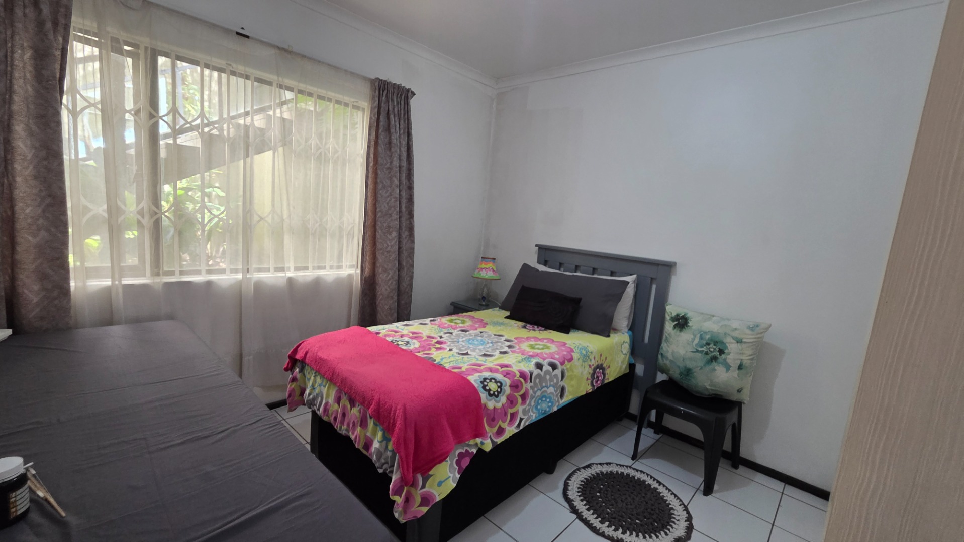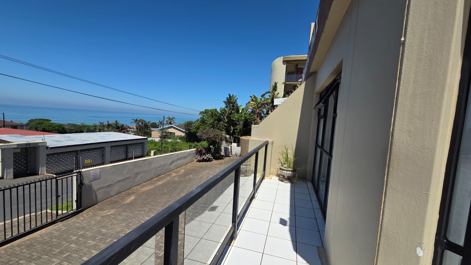 The apartment offers three comfortable bedrooms, all with tiled flooring. The main bedroom includes a built-in wardrobe and direct access to a private bathroom. A second well-appointed bathroom serves the remaining bedrooms and guests. Security bars on windows and a security gate on the sliding door provide peace of mind, allowing you to fully embrace the coastal lifestyle.