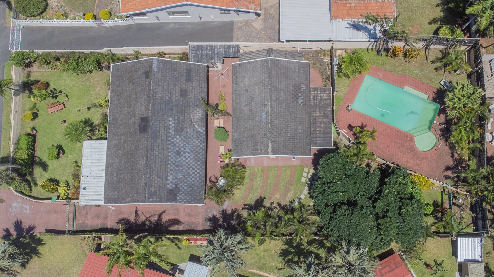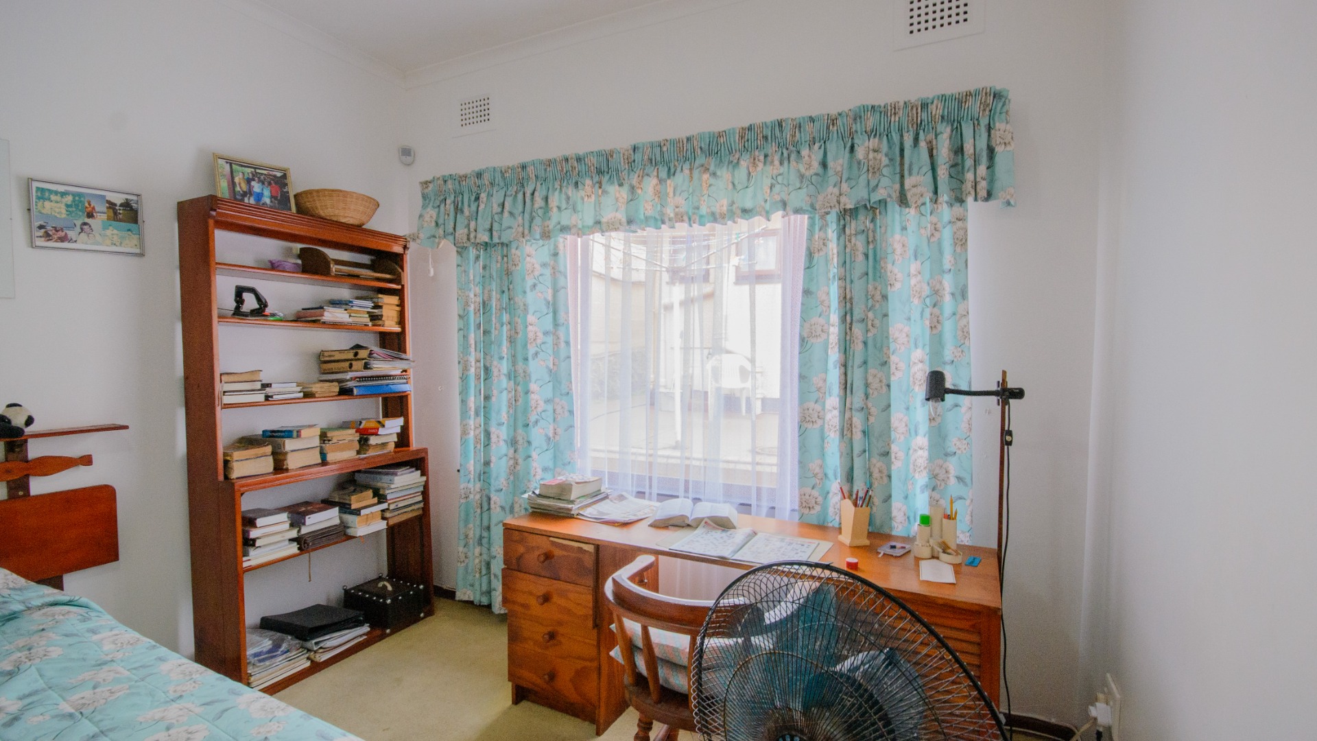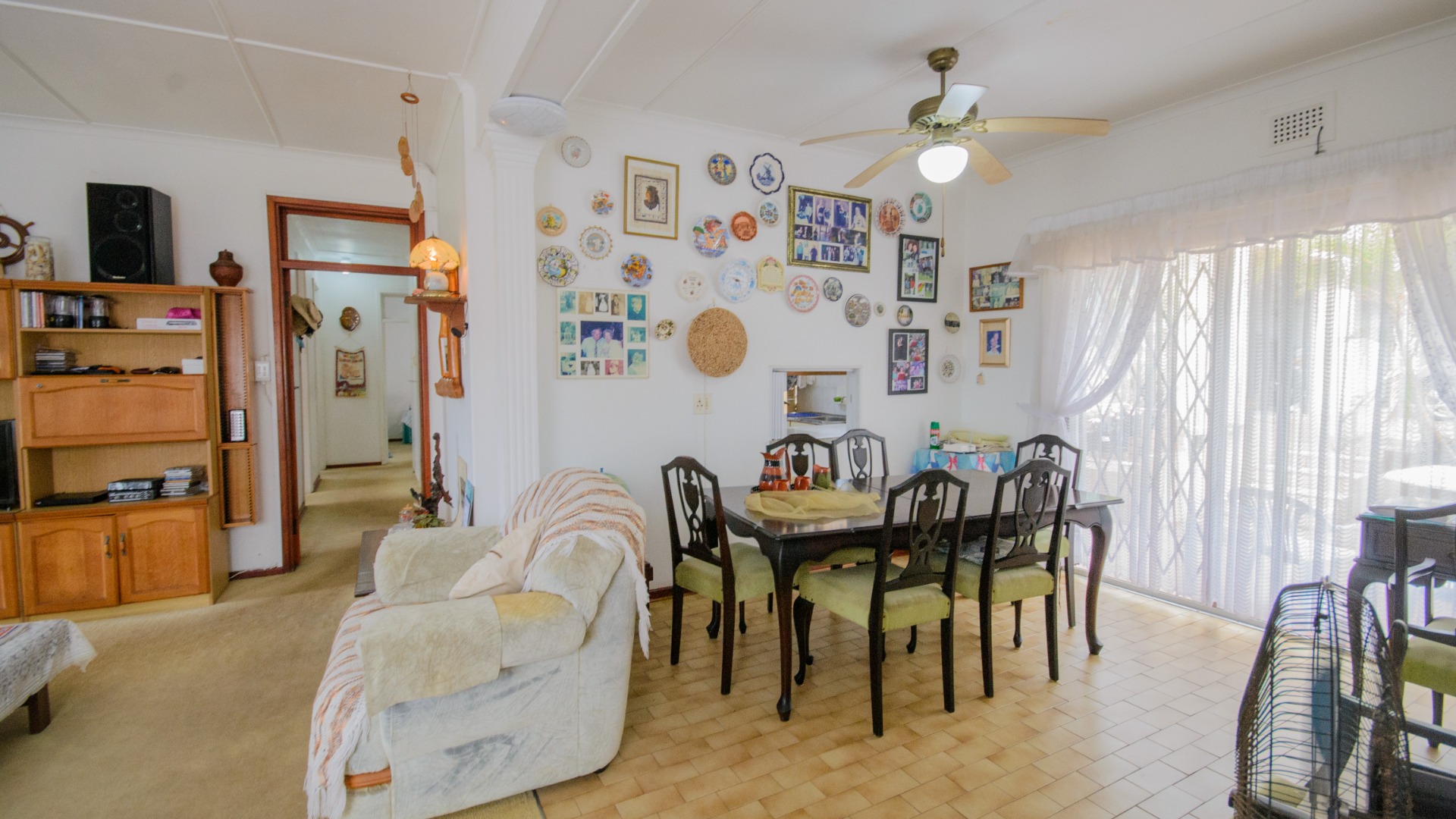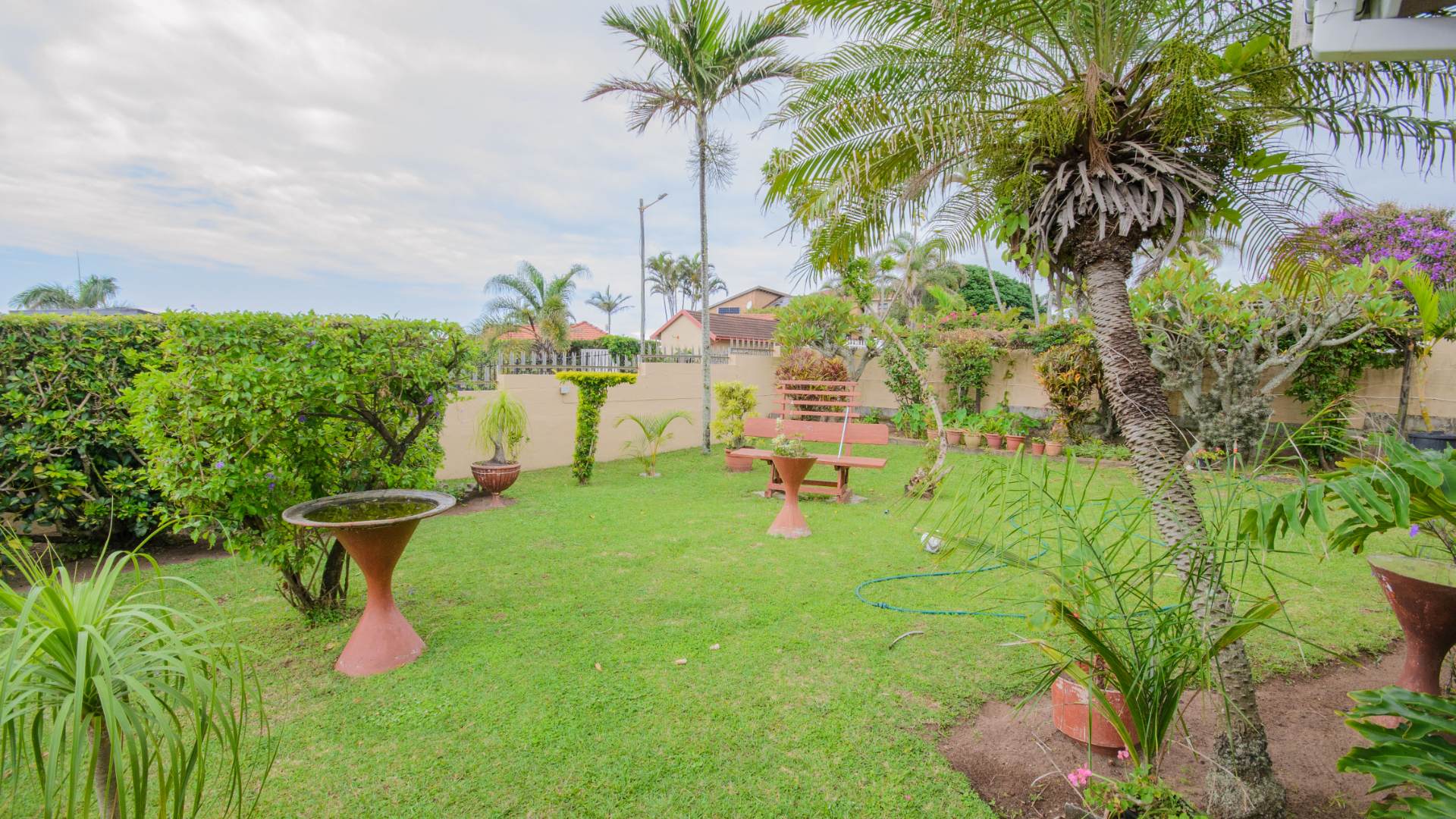 The garden stands out as a peaceful retreat, with a neat lawn, established tropical plants, and a sparkling pool that invites slow afternoons under the sun. A covered patio offers space for quiet mornings, long lunches, and relaxed evenings. A single garage and additional parking complete the layout, while security bars and an automatic gate add peace of mind.