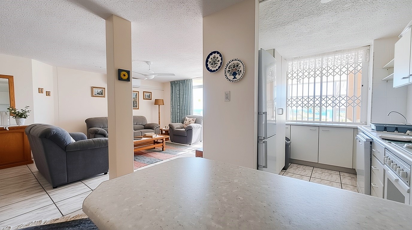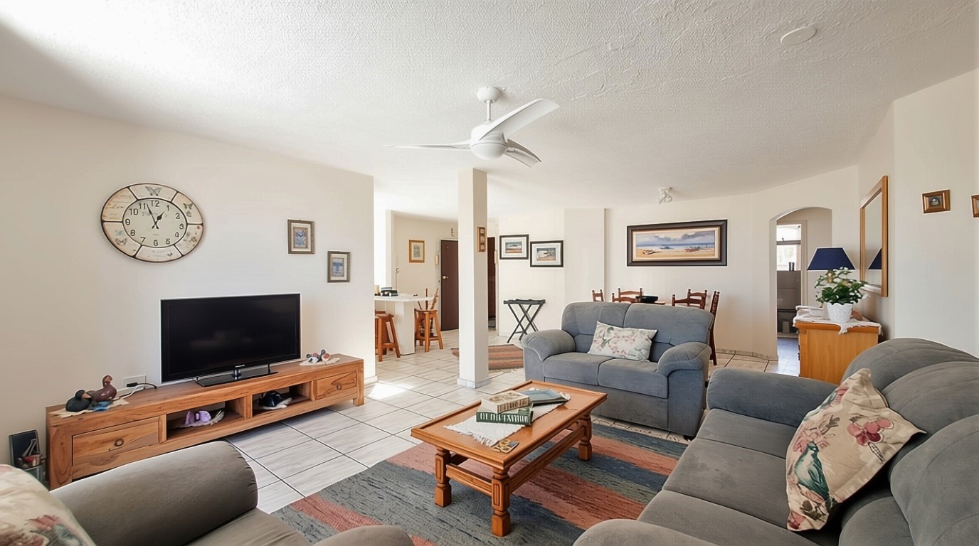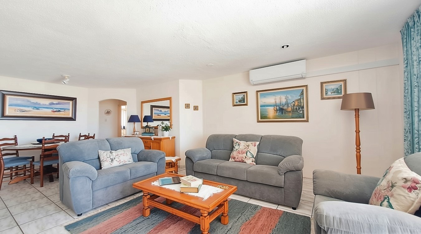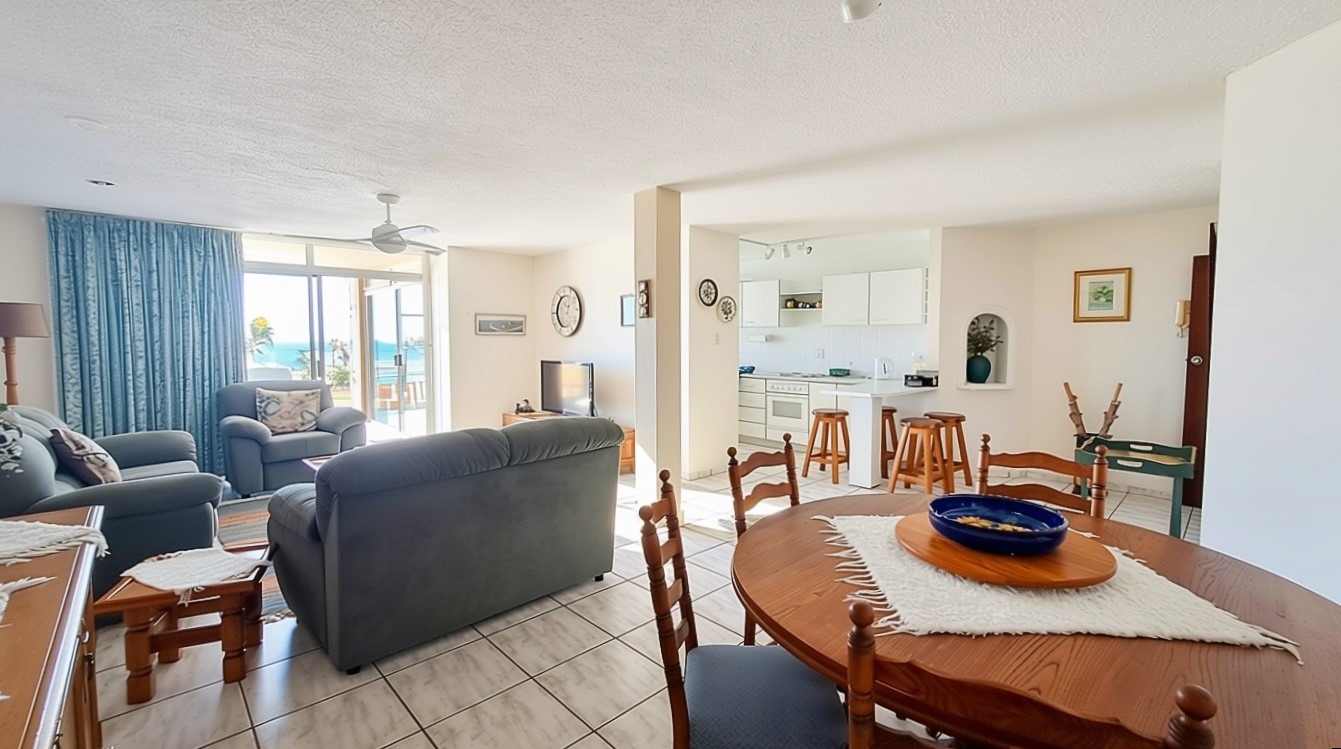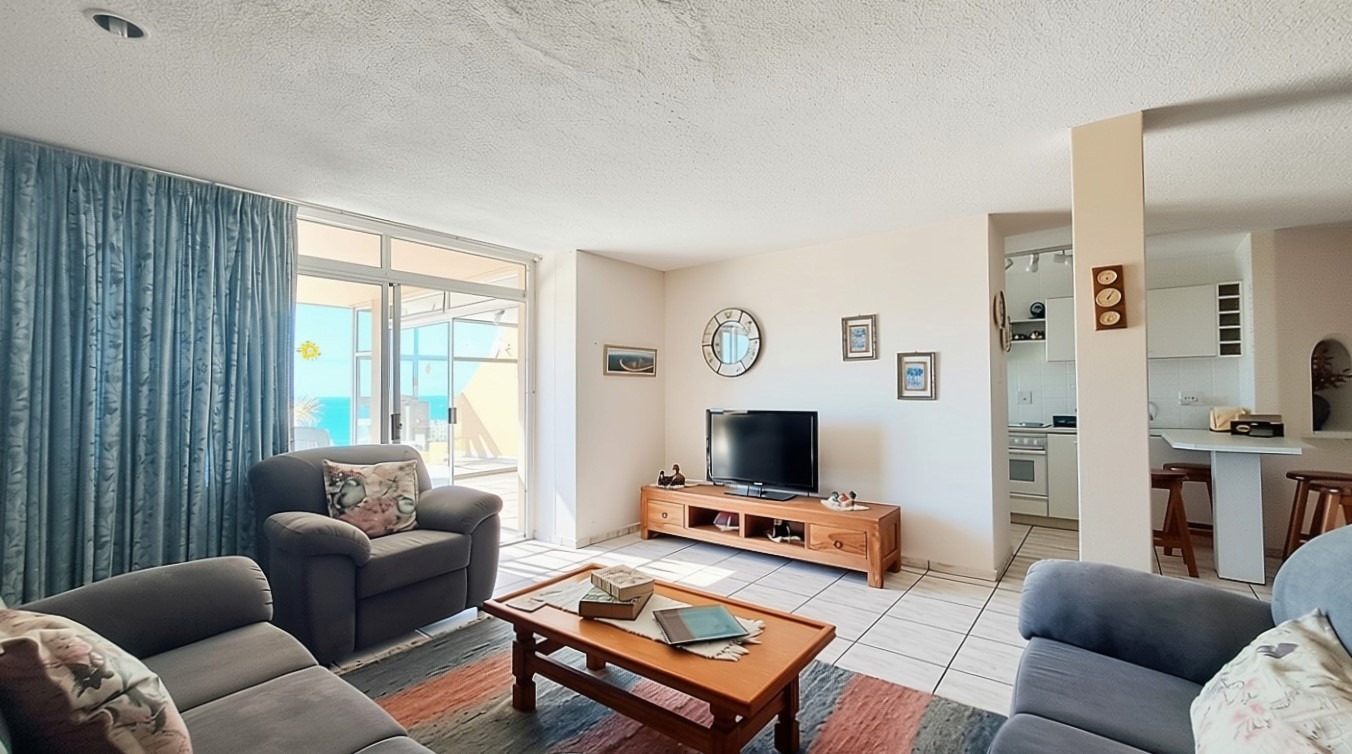 Sole Mandate - Welcome to your perfect forever home! This furnished 203-square-meter apartment, located within walking distance of the prestigious Blue Flag Lucien Beach, is ideal for long-term living and as a permanent residence. The open-plan kitchen, lounge, and dining area flow seamlessly onto a patio that offers breathtaking 180-degree sea views, with an enclosed braai room for those cozy rainy days. The property features three bedrooms with built-in cupboards, including a main bedroom that opens onto the patio with sliding doors and an en-suite bathroom. Additionally, there is a fourth large room that can be converted into a bedroom, office, or recreation space.
