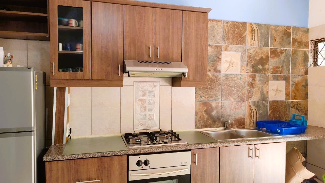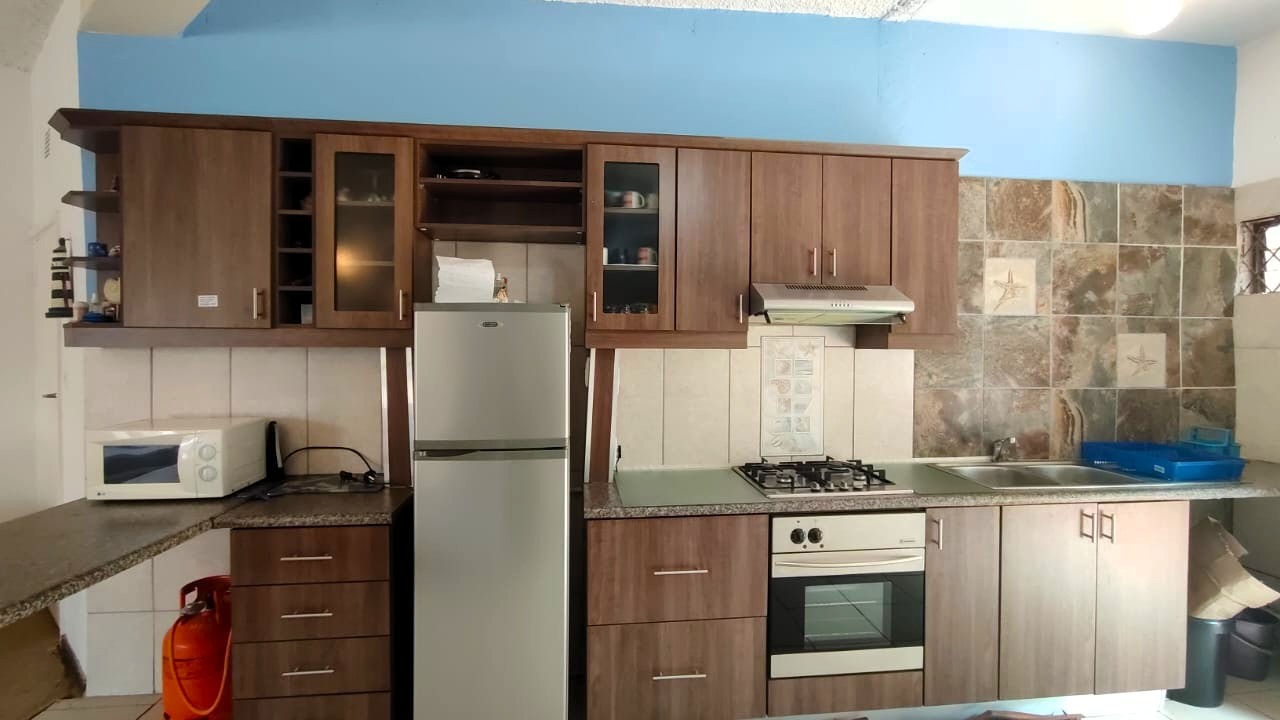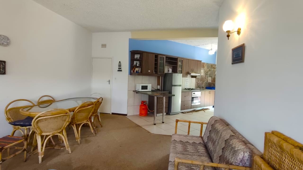 Situated in the tropical paradise of the coastal town of Ramsgate. A relaxed and desirable lifestyle with its beautiful beaches and aquatic activities. This property, ideally situated within a secure complex, boasts a distinctive angular roofline and is set amidst lush tropical surroundings. A paved driveway and well-maintained garden enhance its welcoming kerb appeal. Inside, the home has an open-plan living and dining area, providing a versatile space for relaxation and entertaining. The functional kitchen is equipped with ample wooden cabinetry, a built-in oven, gas stovetop, and a double sink, complete with a breakfast bar for casual meals. The living area is very spacious and can fit some extra accommodation.