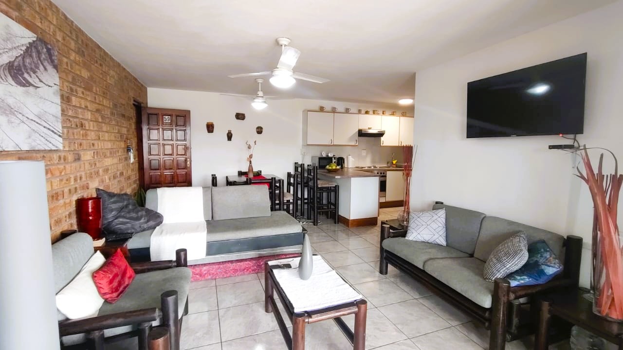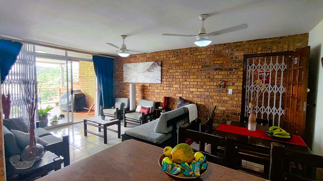 Nestled in the desirable coastal suburb of Ramsgate, Margate, this property offers an ideal holiday home or permanent residence. Step inside this 99 sqm unit to discover an inviting open-plan layout comprising a dining area, kitchen and lounge leading through a sliding door onto the spacious balcony with spectacular river and valley views. The functional kitchen boasts a breakfast bar, built-in oven, hob and extractor fan and ample cabinetry, perfect for everyday living or entertaining. There is Air conditioning and ceiling fans provide comfort throughout. The residence features two comfortable bedrooms with built-in cupboards, including one with an en-suite bathroom. The main bedroom has access to the private balcony, allowing in the natural light and from the balcony there are stunning scenic views.
