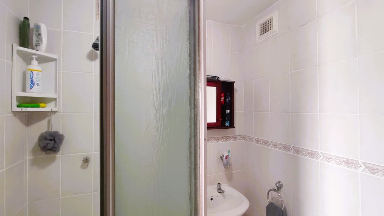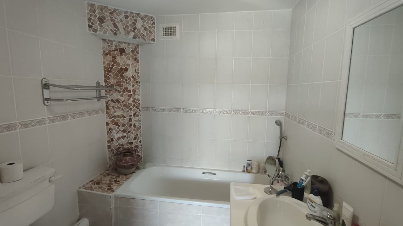 The two bathrooms are fully tiled, with the main bathroom featuring a practical bath with a handheld shower and the second bathroom has a shower, toilet and basin. The unit has two flights of stairs down from the ground level, making the home closer to the water and views.