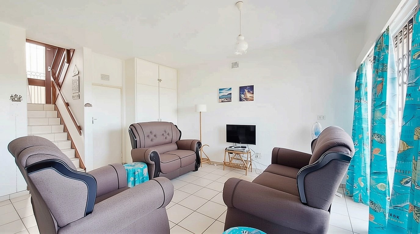 Discover this inviting 2-bedroom, 1-bathroom residence in Ramsgate, Margate, offering a desirable coastal lifestyle. The modern exterior with large windows and private patios creates a welcoming first impression, complemented by distant sea views from your outdoor spaces. Inside, the 86 sqm floor plan features an open-plan lounge, dining room, and a well-appointed kitchen, all bathed in natural light and finished with practical tiled flooring. This furnished home ensures immediate comfort, perfect for a holiday retreat or permanent seaside living. Enjoy a private patio and garden, alongside a communal braai area ideal for entertaining. The property includes a garage and an additional parking space, plus water tanks for sustainability. Enhanced security features like an access gate, security gates, and burglar bars provide peace of mind. Fibre connectivity is also available. This sought-after coastal beach suburb is renowned for its aquatic activities and vibrant community, offering an idyllic setting. Key Features: * 2 Bedrooms, 1 Bathroom * Open-plan living, tiled floors * Furnished property * Private patio & garden * Distant sea views * Communal braai area * Garage & additional parking * Security gates & burglar bars * Fibre ready