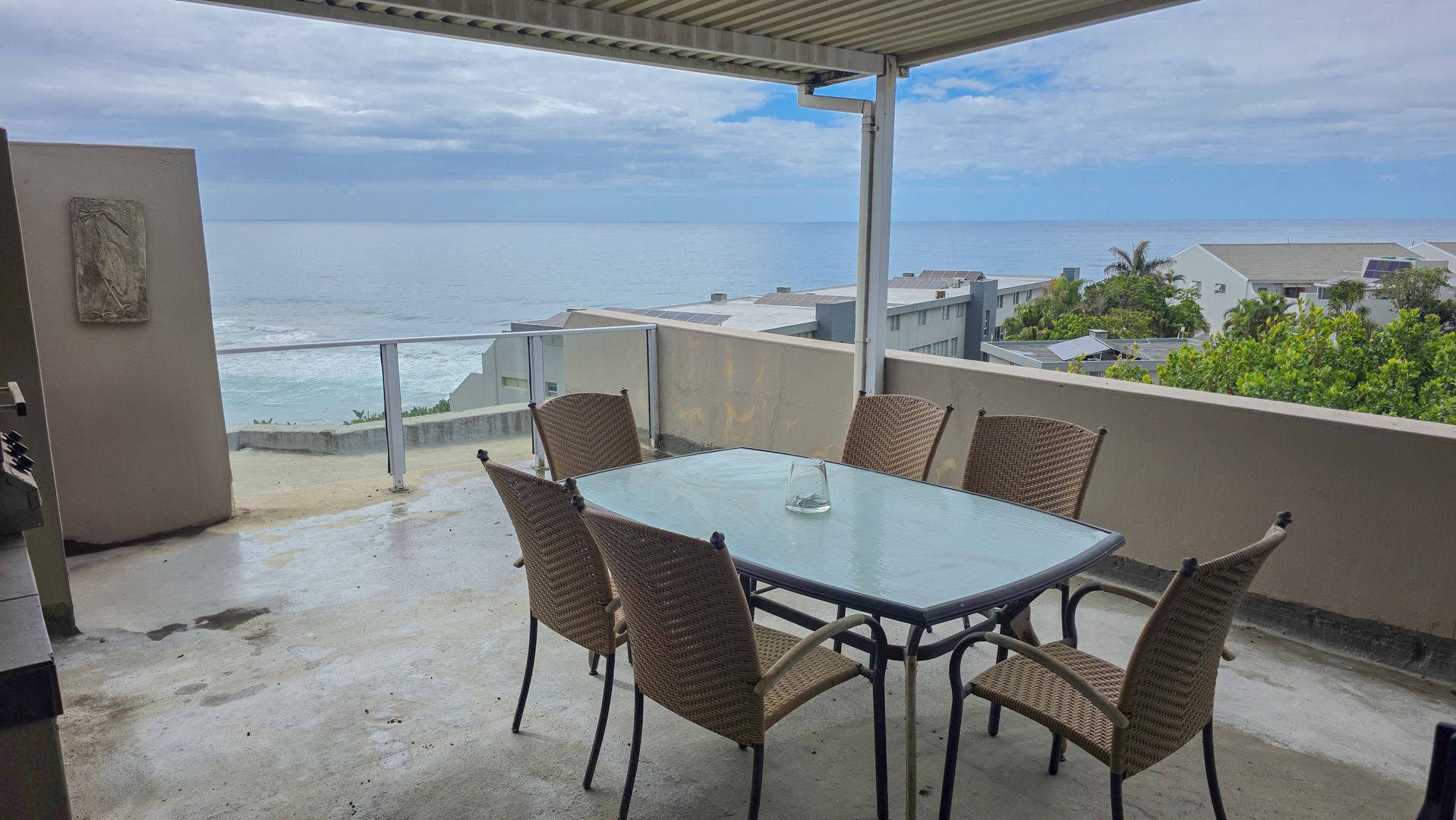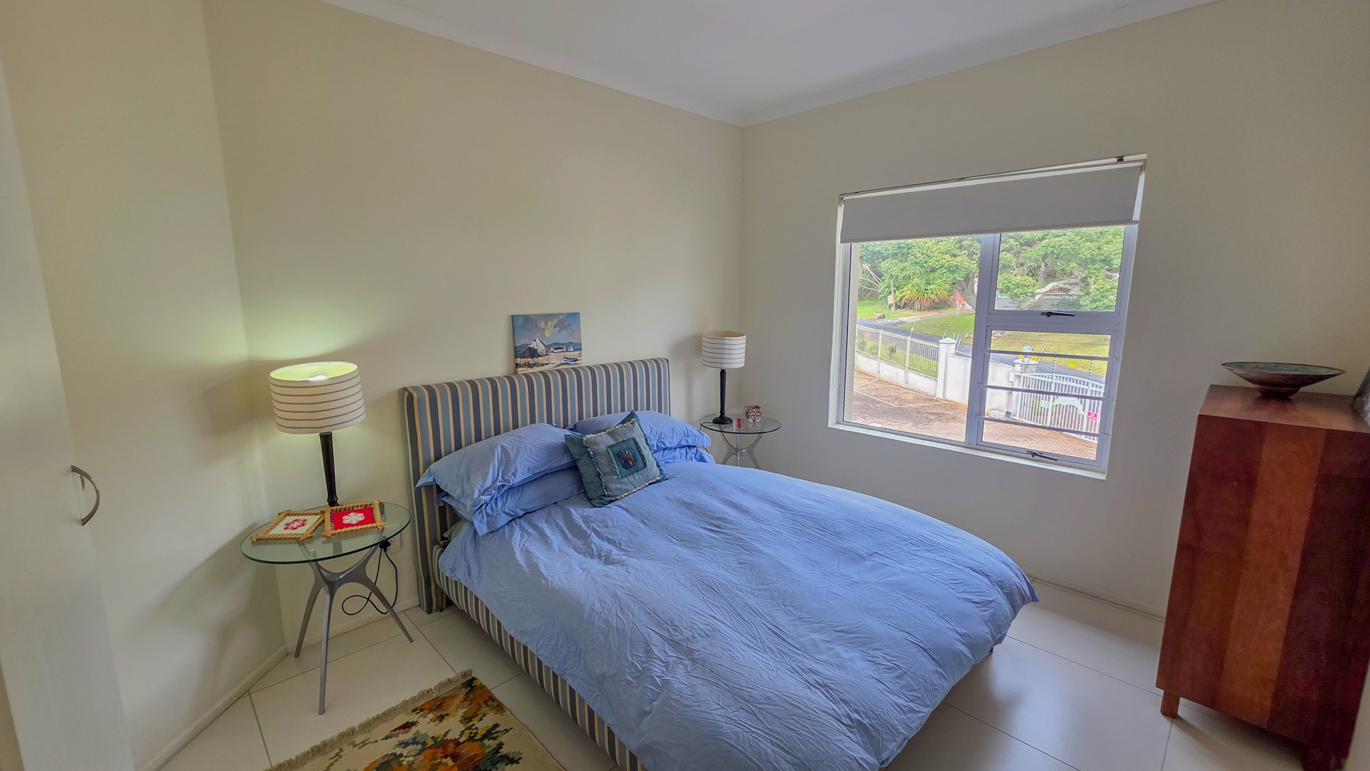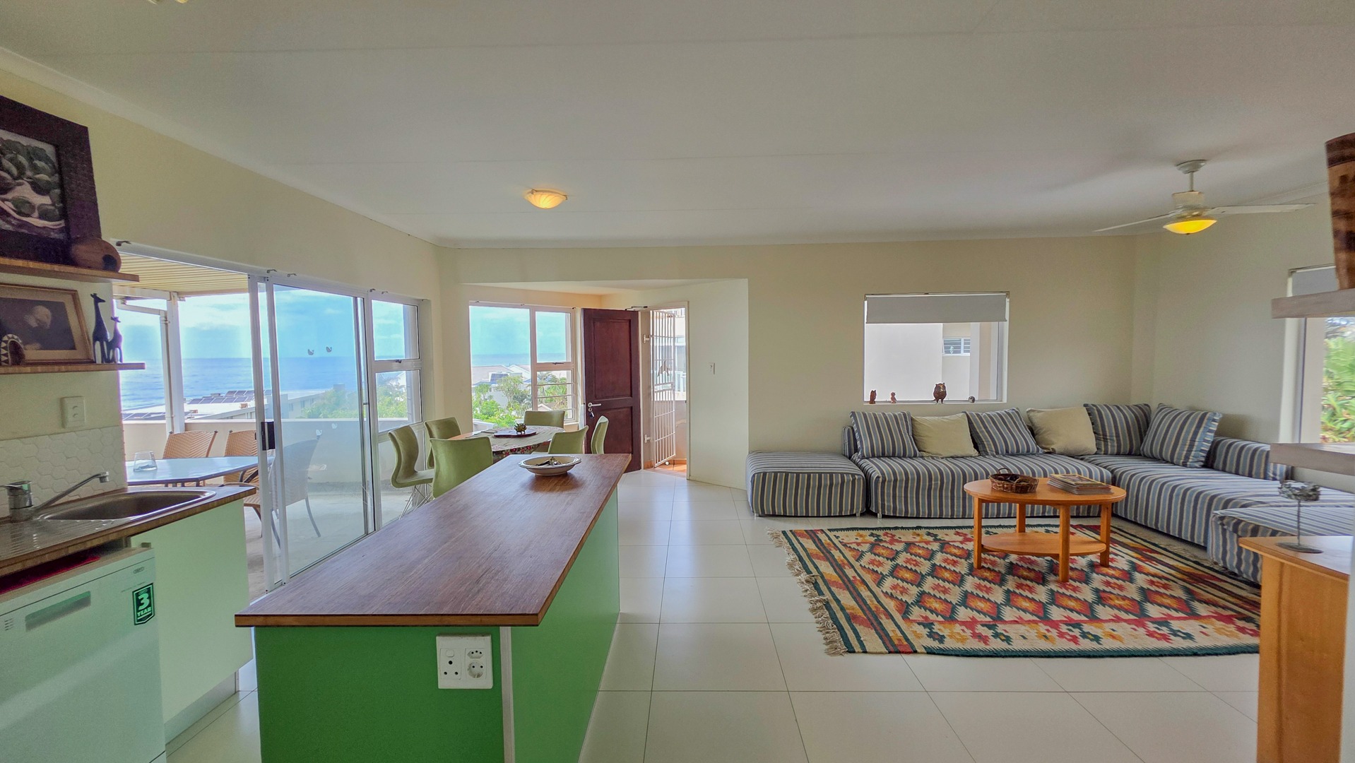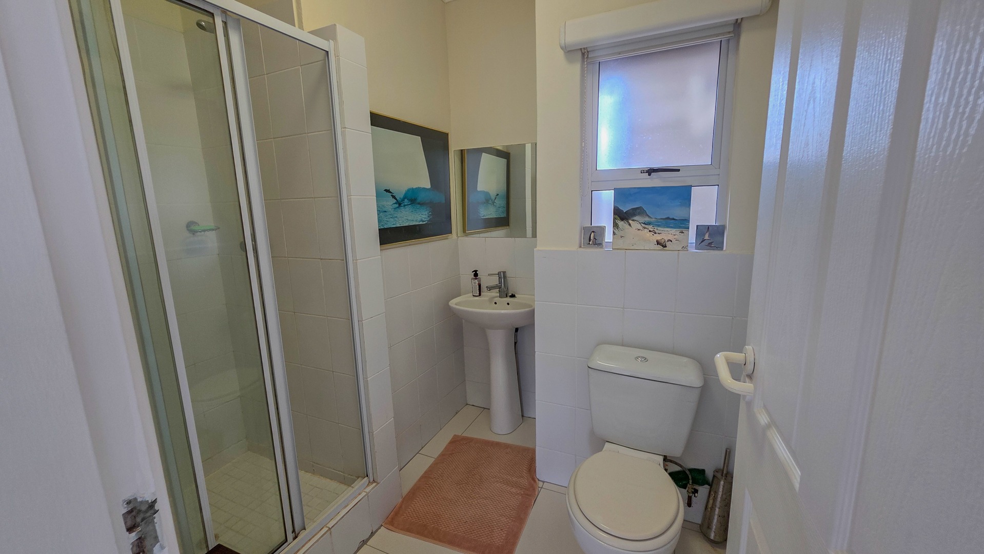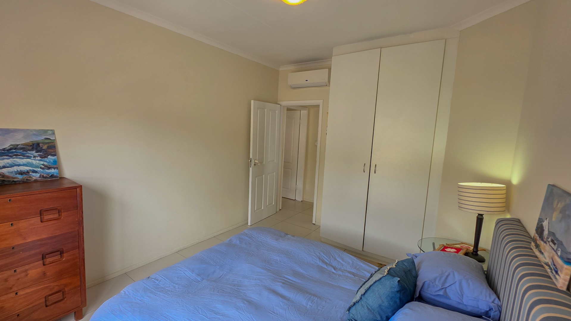 This third floor apartment delivers a calm coastal style with a clean, modern layout. Fully tiled floors keep the space sleek from room to room. The undercover patio opens to wide sea views that shape quiet mornings and slow afternoons. The courtyard adds another outdoor corner suited for plants or a small seating setup. The main bedroom offers generous space with built in cupboards and an open plan bathroom designed for comfort. It includes a full sized bath for slow evenings, a separate shower for daily use, a toilet and a basin. The layout keeps the room open, bright and easy to move through.