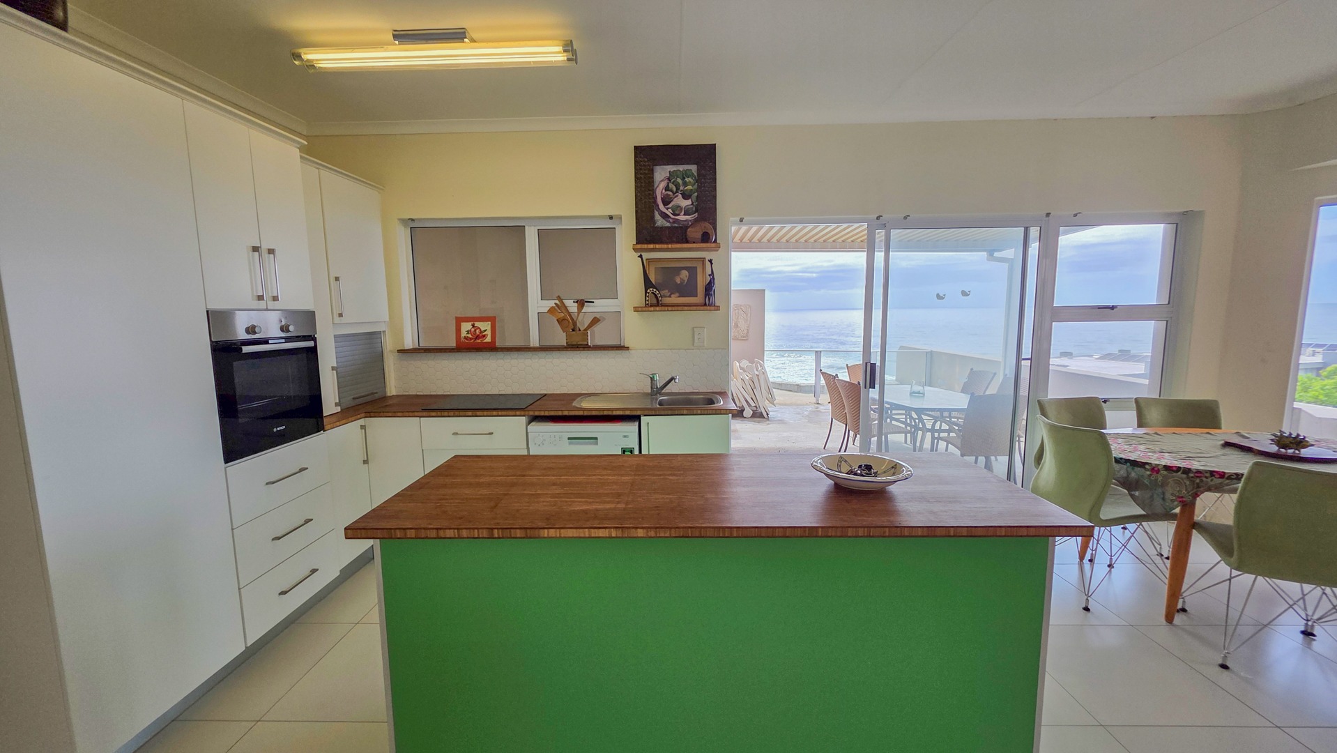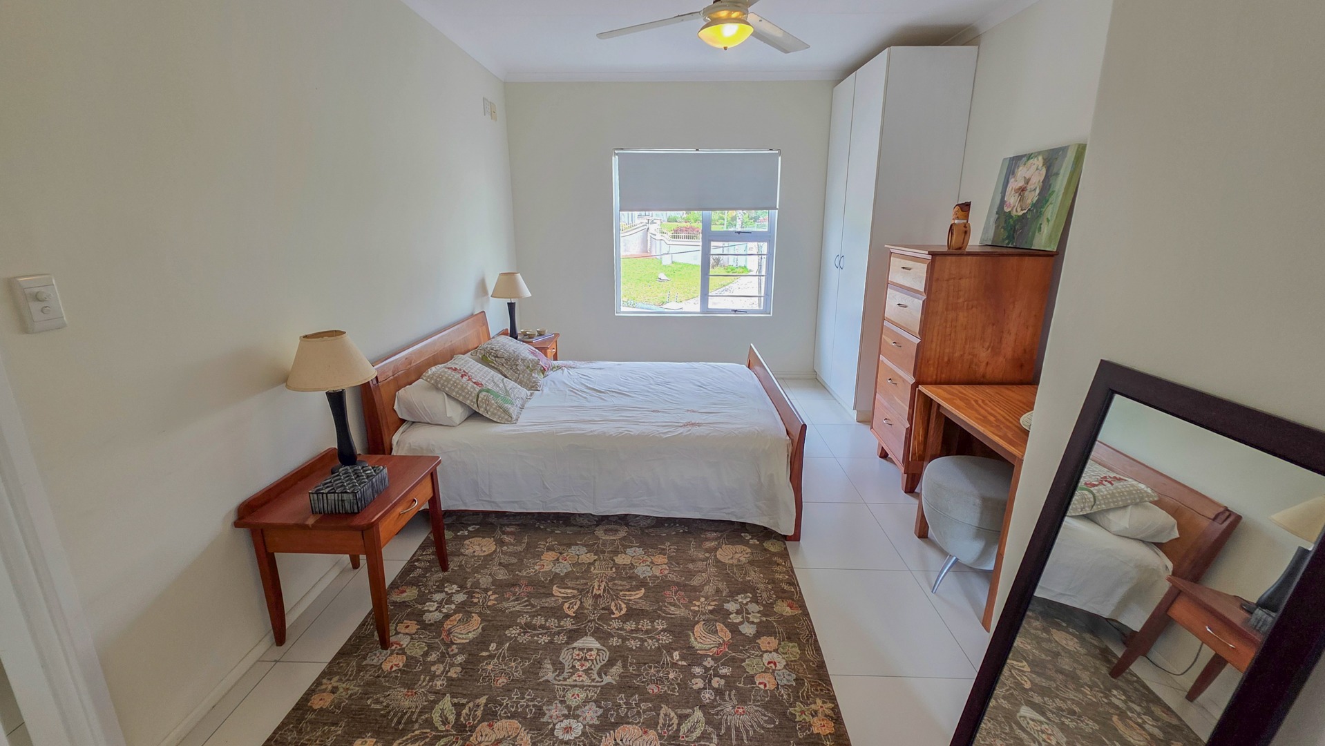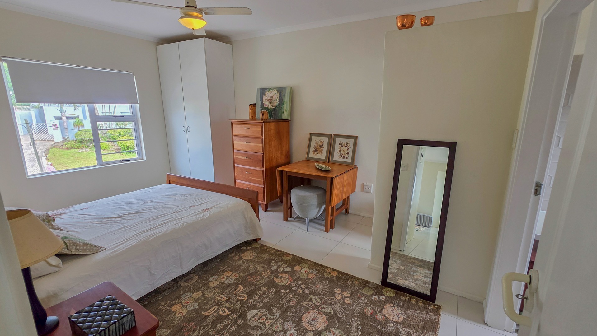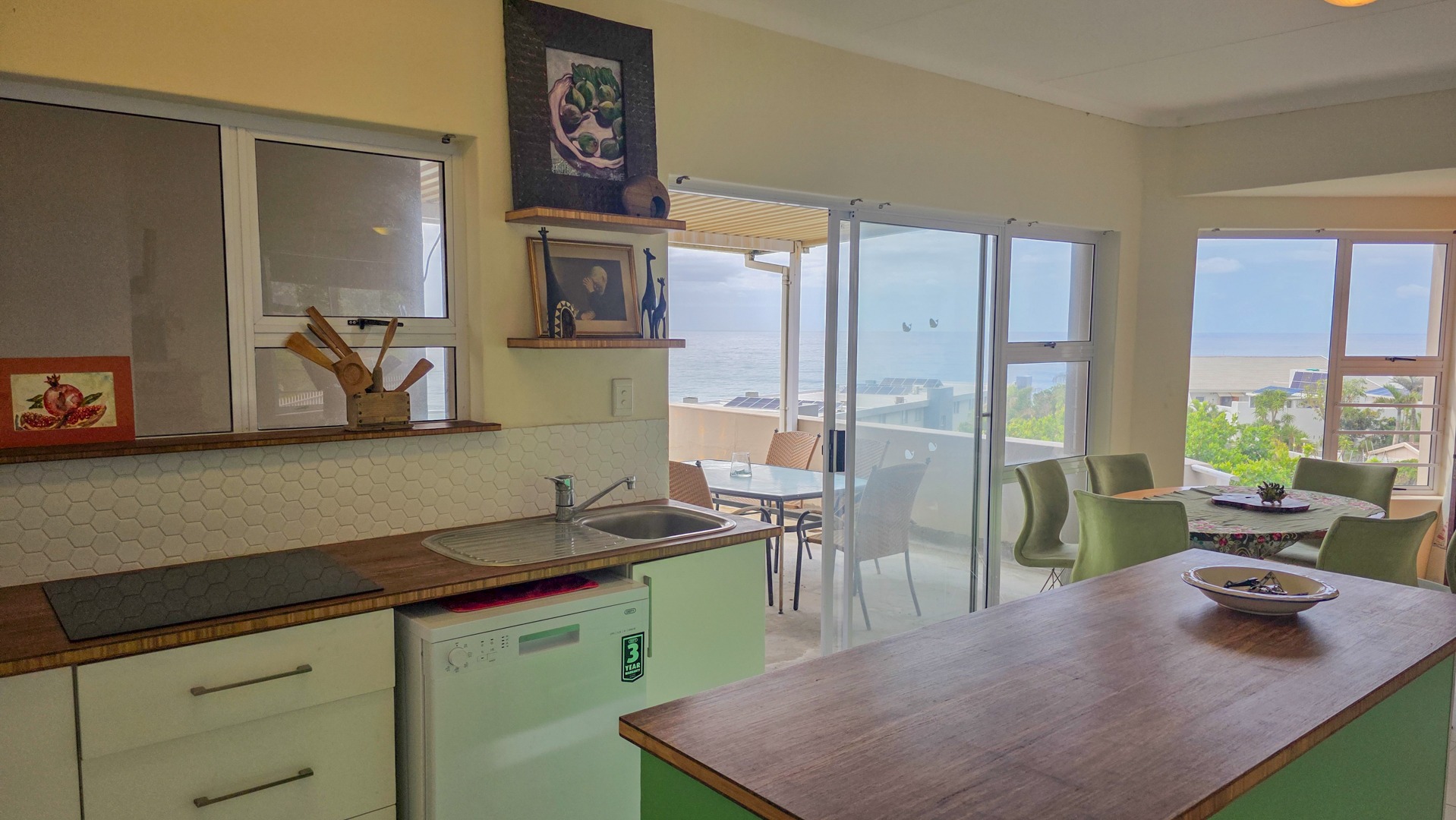This third floor apartment delivers a calm coastal style with a clean, modern layout. Fully tiled floors keep the space sleek from room to room. The undercover patio opens to wide sea views that shape quiet mornings and slow afternoons. The courtyard adds another outdoor corner suited for plants or a small seating setup. The main bedroom offers generous space with built in cupboards and an open plan bathroom designed for comfort. It includes a full sized bath for slow evenings, a separate shower for daily use, a toilet and a basin. The layout keeps the room open, bright and easy to move through.