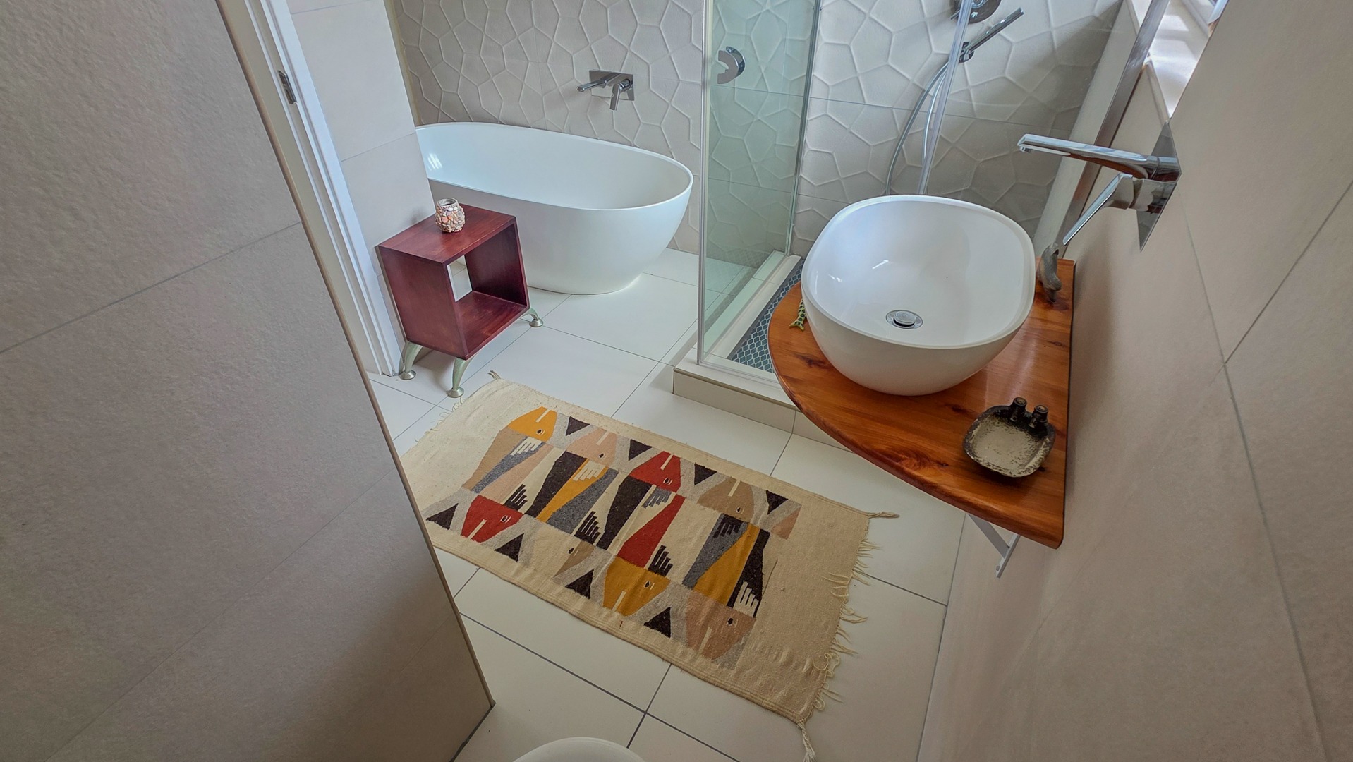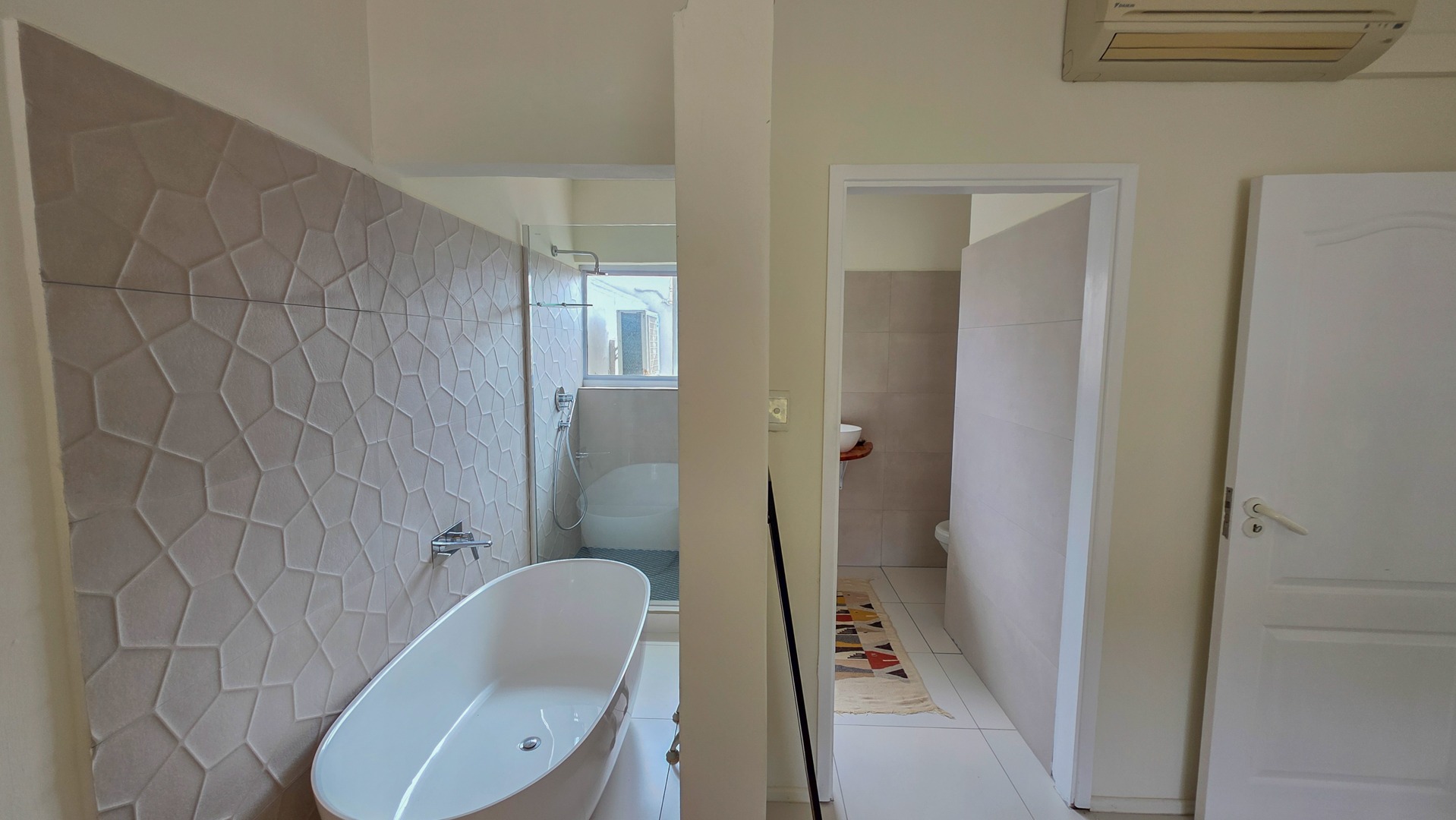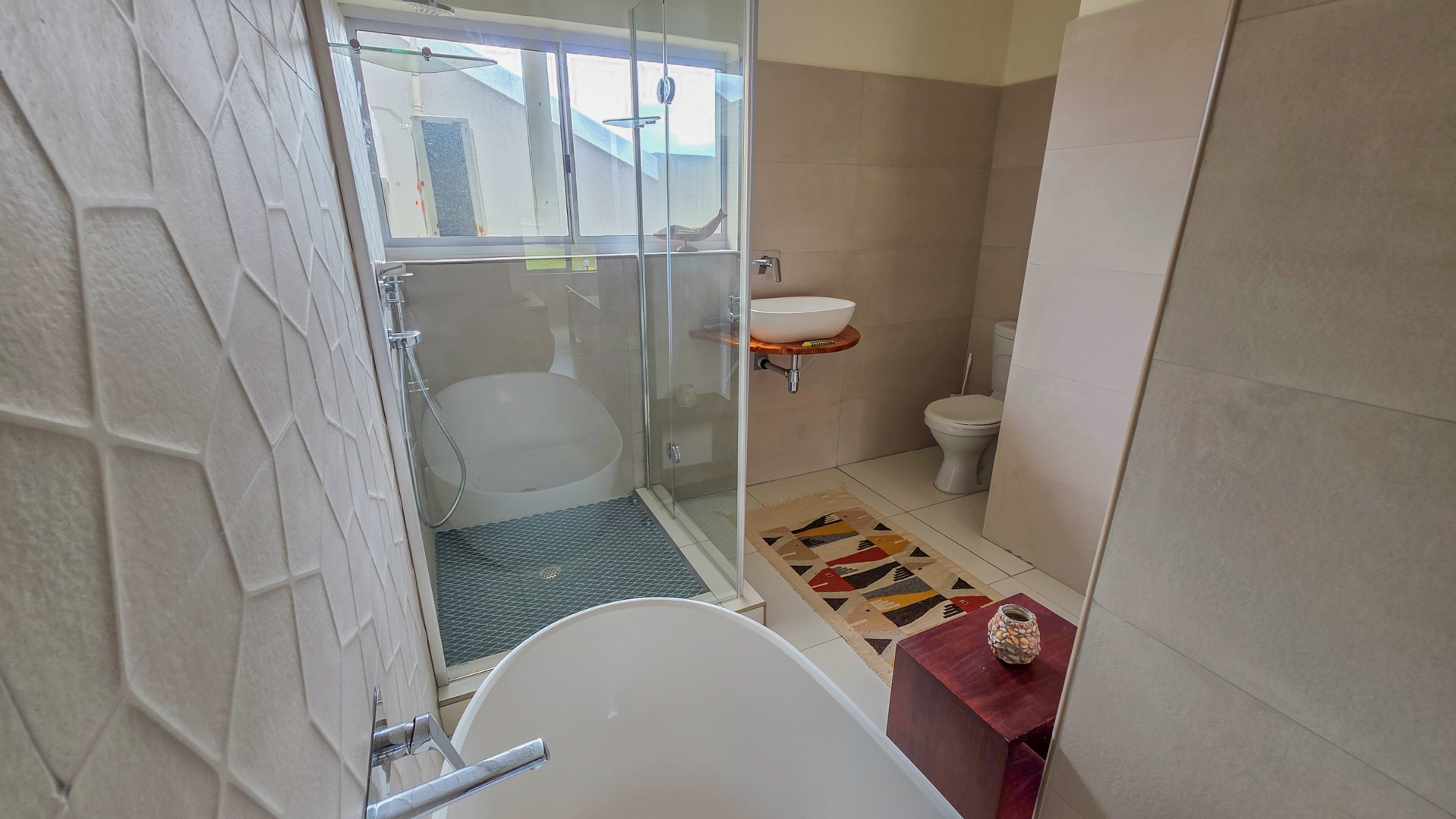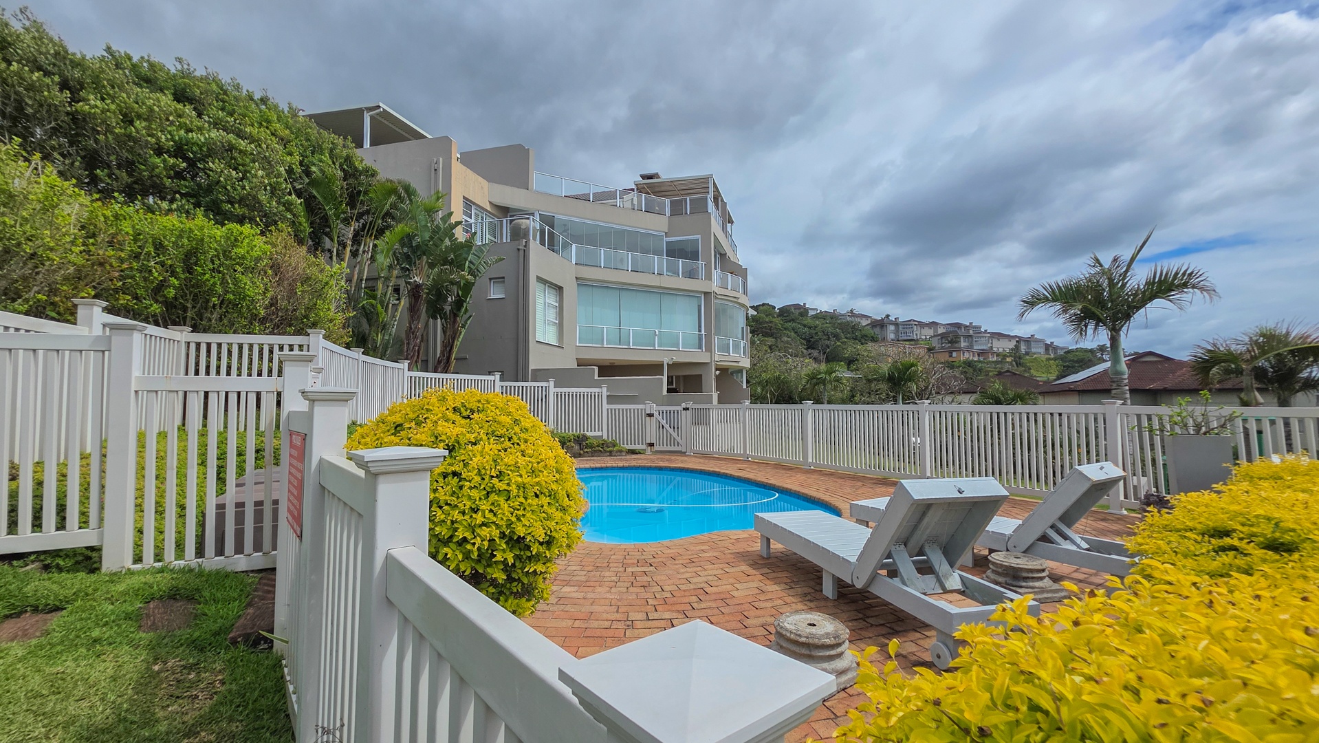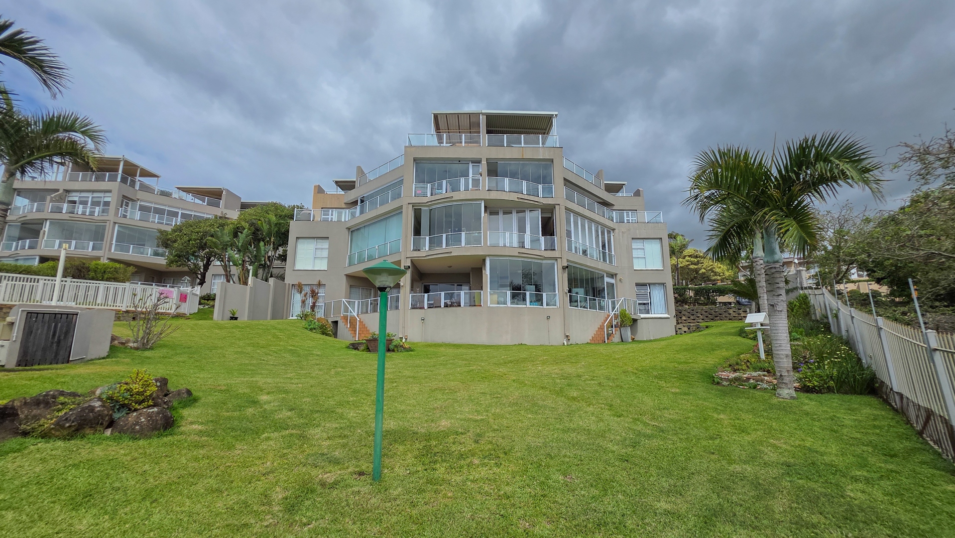 This third floor apartment delivers a calm coastal style with a clean, modern layout. Fully tiled floors keep the space sleek from room to room. The undercover patio opens to wide sea views that shape quiet mornings and slow afternoons. The courtyard adds another outdoor corner suited for plants or a small seating setup. The main bedroom offers generous space with built in cupboards and an open plan bathroom designed for comfort. It includes a full sized bath for slow evenings, a separate shower for daily use, a toilet and a basin. The layout keeps the room open, bright and easy to move through.