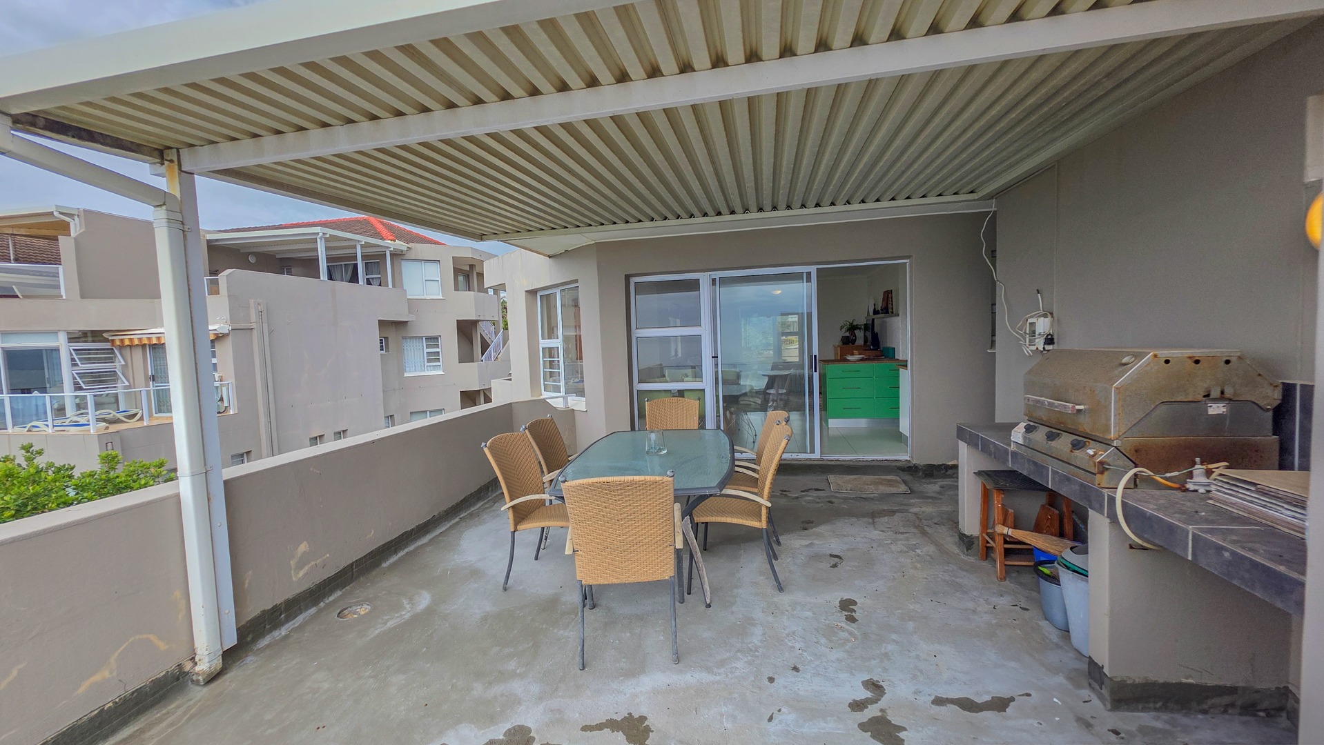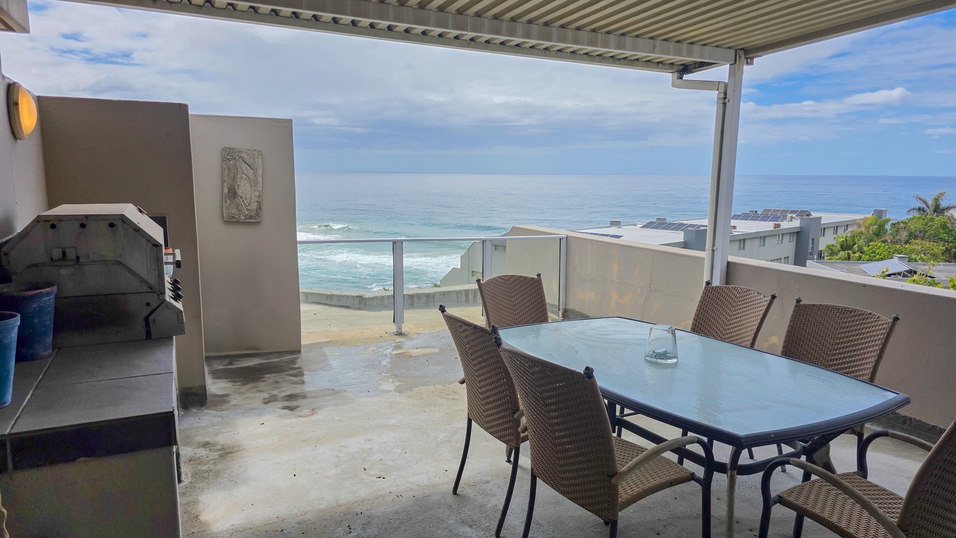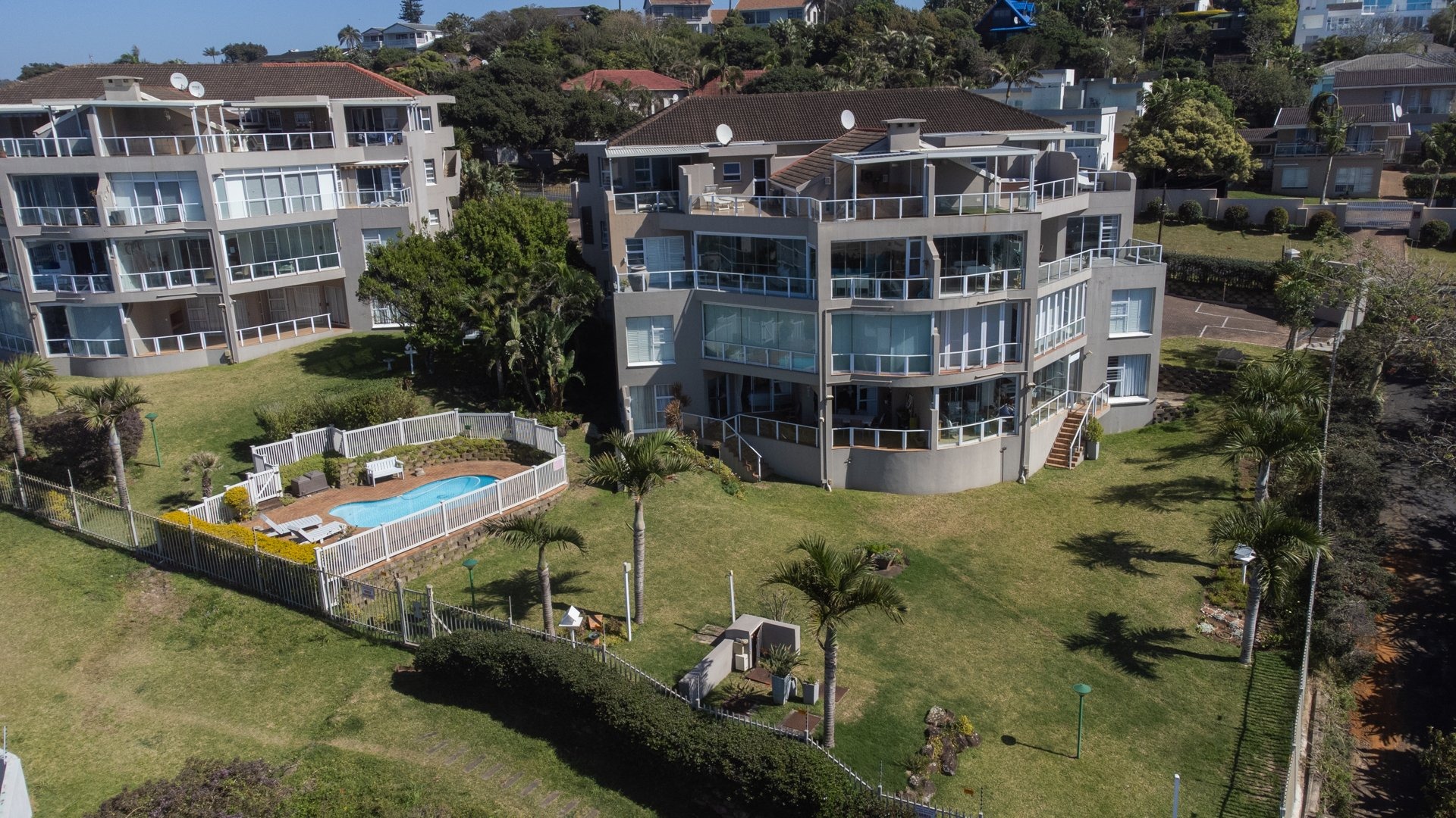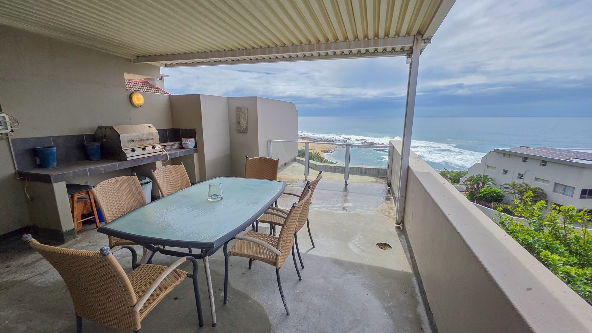 The complex includes borehole backup water, a communal swimming pool and a braai area with clear sea views. A lock up garage and a parking bay round off this coastal apartment.
