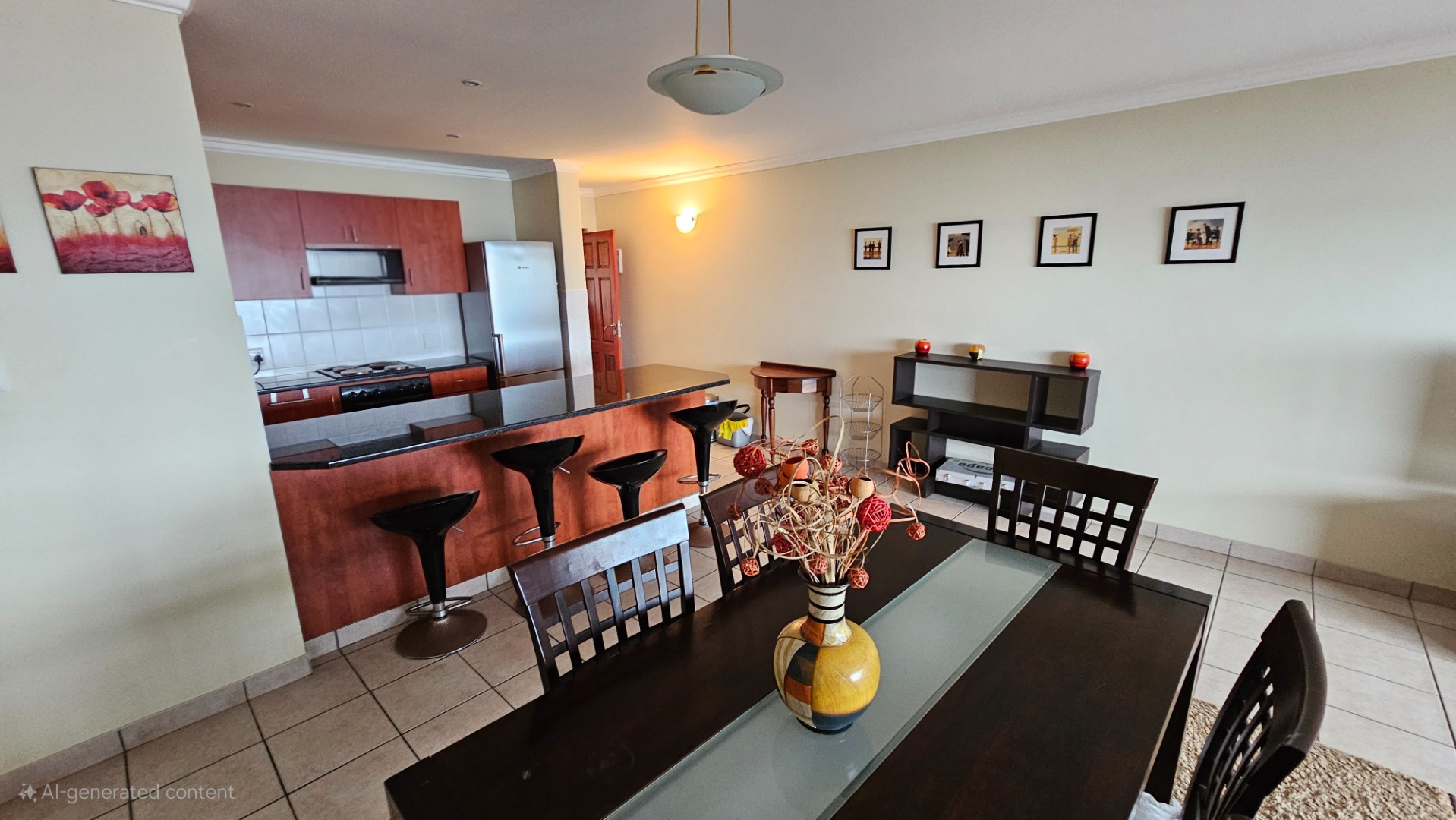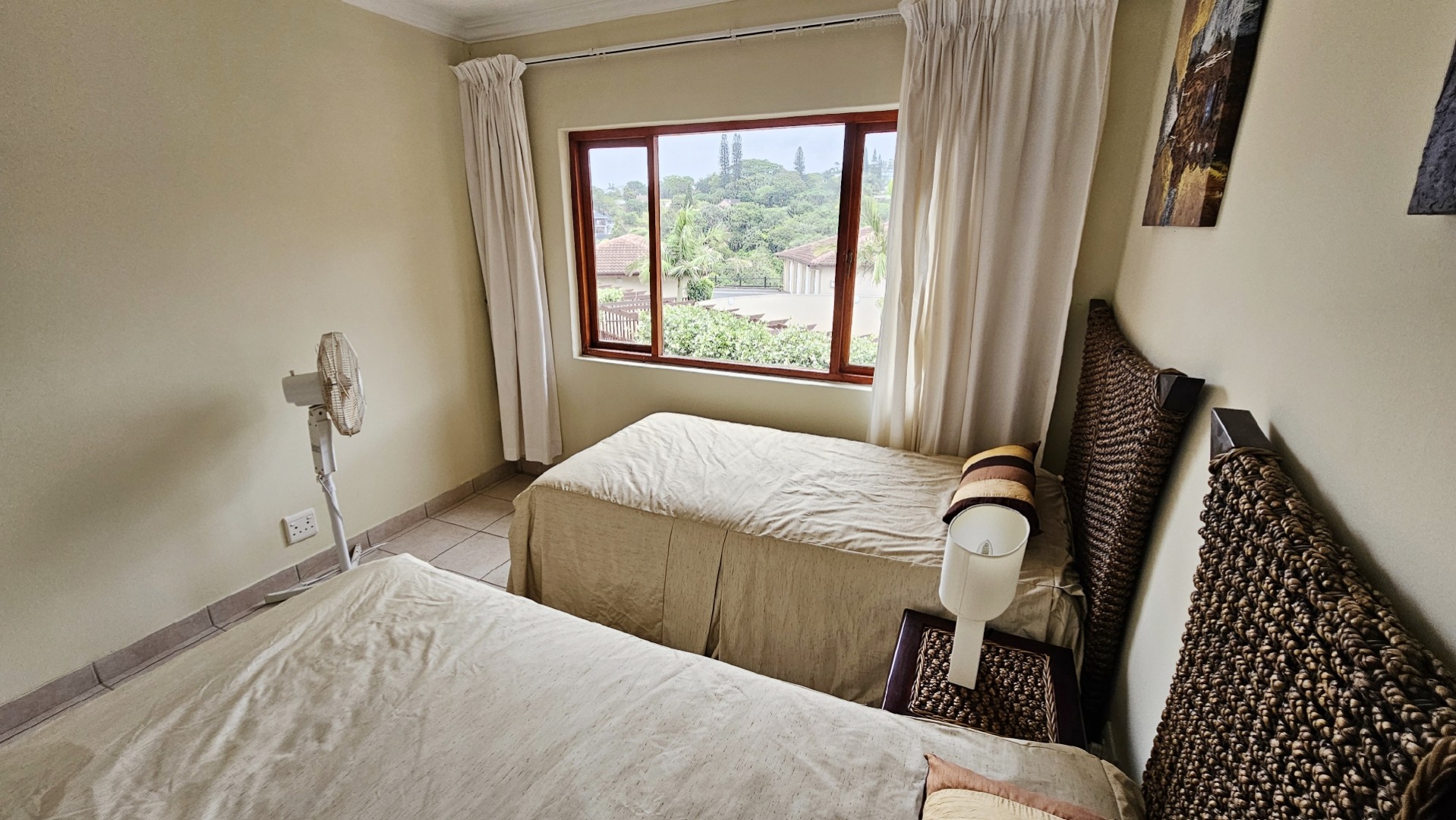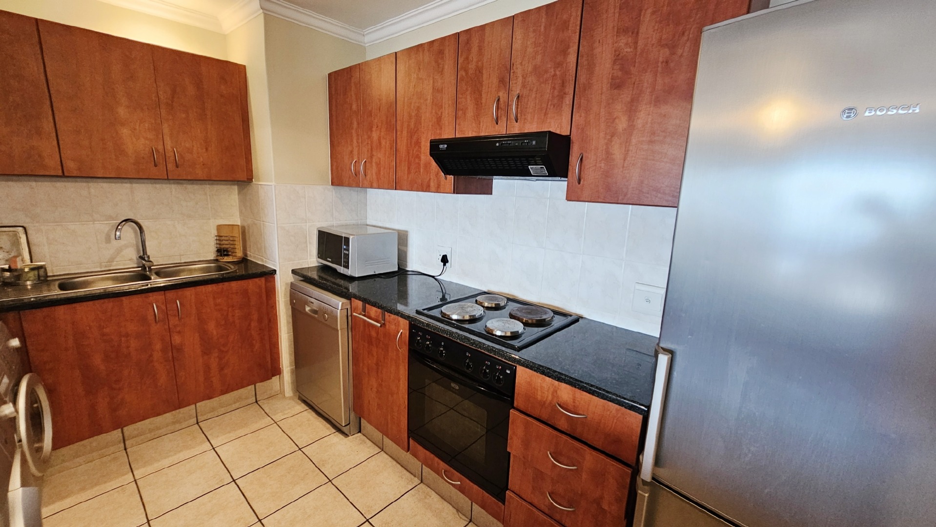 This inviting 3-bedroom, 2-bathroom apartment is nestled within a well-maintained complex in Ramsgate, offering an ideal coastal lifestyle. The property immediately impresses with its attractive entrance, featuring lush flowering vines and immaculately maintained gardens, leading to the communal swimming pool area. This is a top floor unit, with approximately 10 stairs. On entering the unit you are greeted by an open plan design, while the functional kitchen boasts dark granite countertops, stylish mahogany cabinetry and tiled floors, equipped with a double sink, stove with extractor fan, dishwasher, washing machine, and tumble dryer. Its open-plan design seamlessly connects to the dining room and lounge, fostering comfortable living and entertaining all while taking in endless sea views, throughout the home.