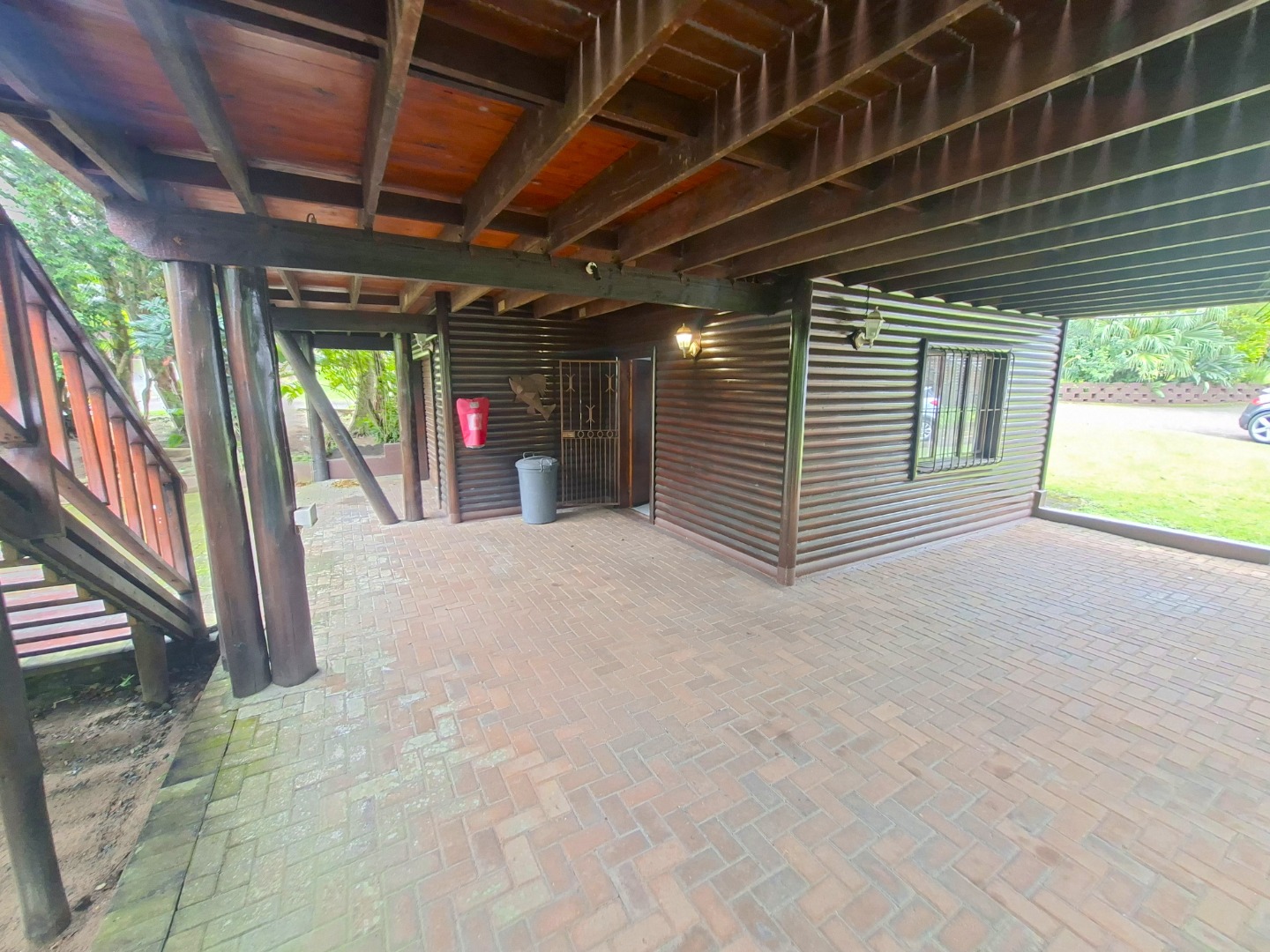 The main dwelling features two well-proportioned bedrooms and one bathroom, ensuring convenience for residents and guests. A dedicated lounge area and a spacious functional kitchen cater to everyday needs. Step outside to enjoy the private balcony, and a well-maintained garden, ideal for relaxation or entertaining. Parking is well-addressed with a single garage and two additional parking spaces.