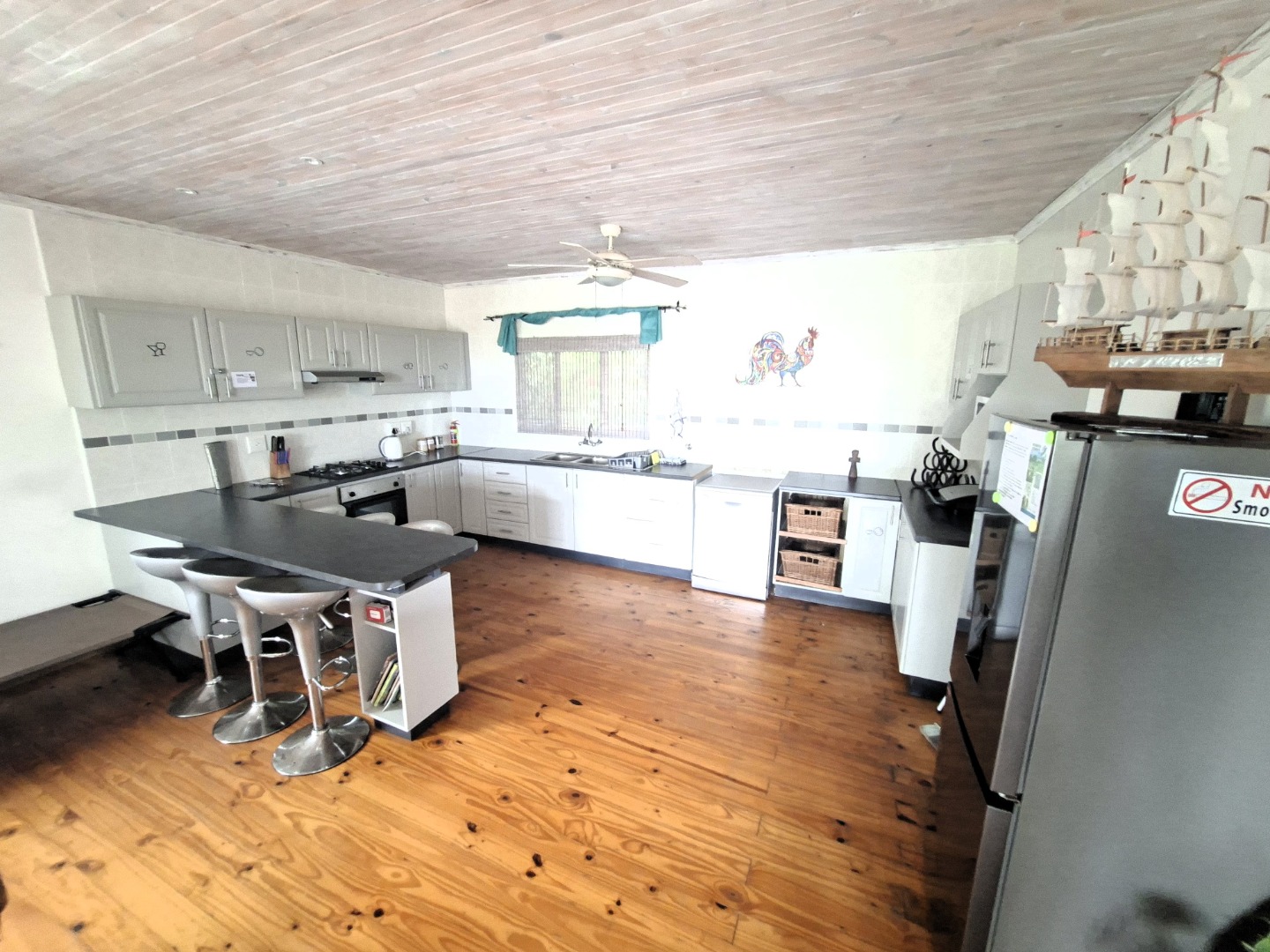 A standout feature of this property is the inclusion of an one bedroom one bathroom flatlet, providing an excellent opportunity for rental income or accommodating extended family. Security is paramount, with features such as an access gate, electric fencing, burglar bars, and a totally walled perimeter, offering peace of mind in this complex setting. Enjoy the benefits of coastal living, with the beach just a stone's throw away, making it an ideal holiday home.
