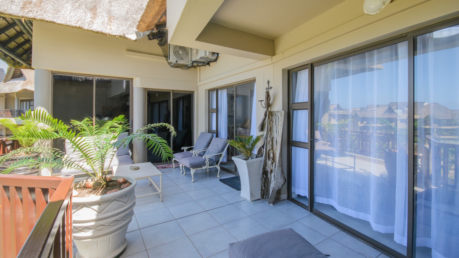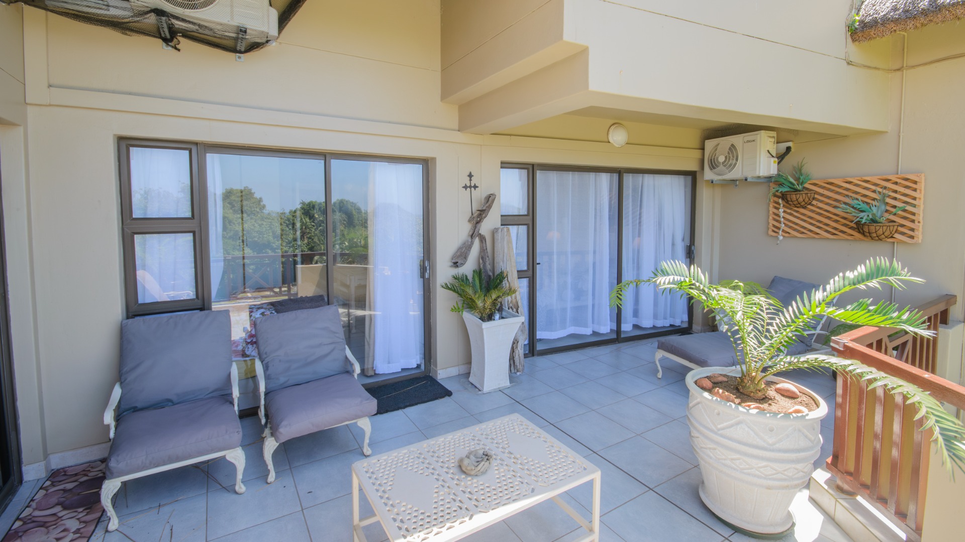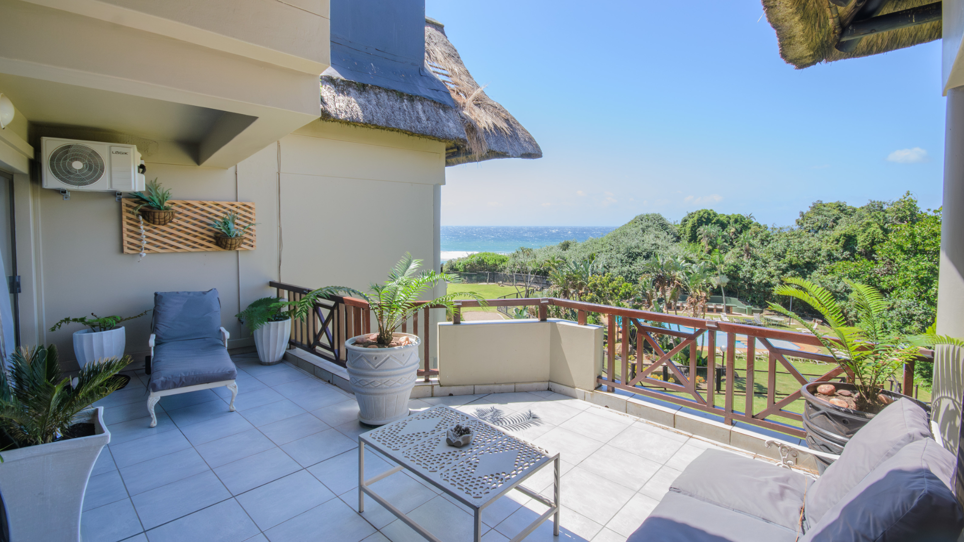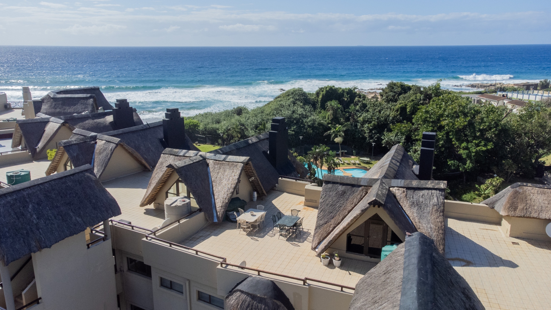 The well-appointed open plan modern kitchen, caters to culinary enthusiasts, ensuring every meal is a delight. Certainly a Chef's dream kitchen. This magnificent unit features three generously proportioned bedrooms and two luxurious bathrooms, including one en-suite, providing ample comfort and privacy for residents and guests alike. Two bedrooms opens onto the large patio. Each space is crafted to offer a tranquil retreat after a day spent enjoying the coastal lifestyle. An expansive patio offers breathtaking sea views, providing the perfect backdrop for al fresco dining or simply savouring the ocean breeze. Up another flight of stairs, you will find the large rooftop - exclusive for you !! Another bedroom/study can be found here. There is also a lock up garage and exclusive allocated parking area allocated to this unit. The communal areas are a resort-style haven, featuring a large, sparkling swimming pool set amidst tropical landscaping, ideal for leisurely dips and sun-drenched afternoons. With a dedicated garage and additional parking, convenience is paramount within this secure, country living environment. Back up water tanks in complex with sustainable borehole, as well as own water tank on roof patio of unit.