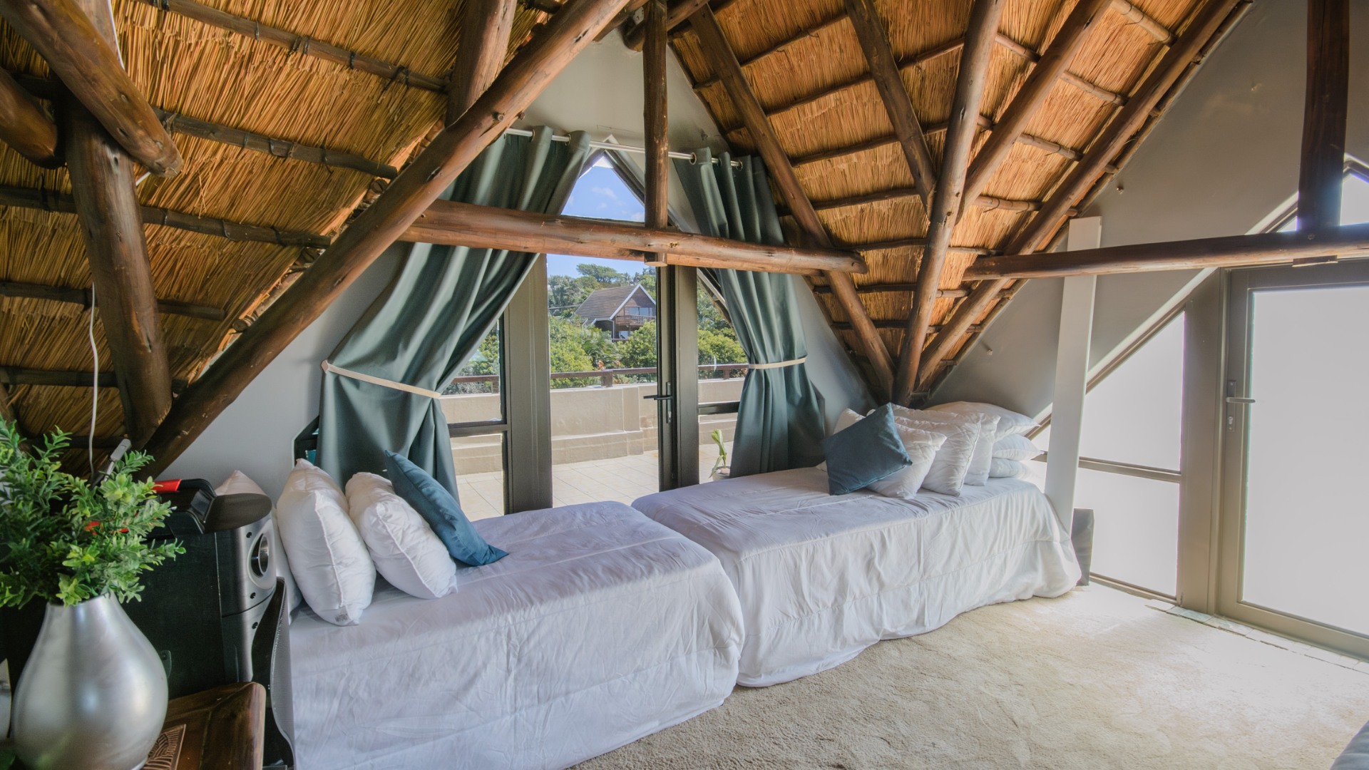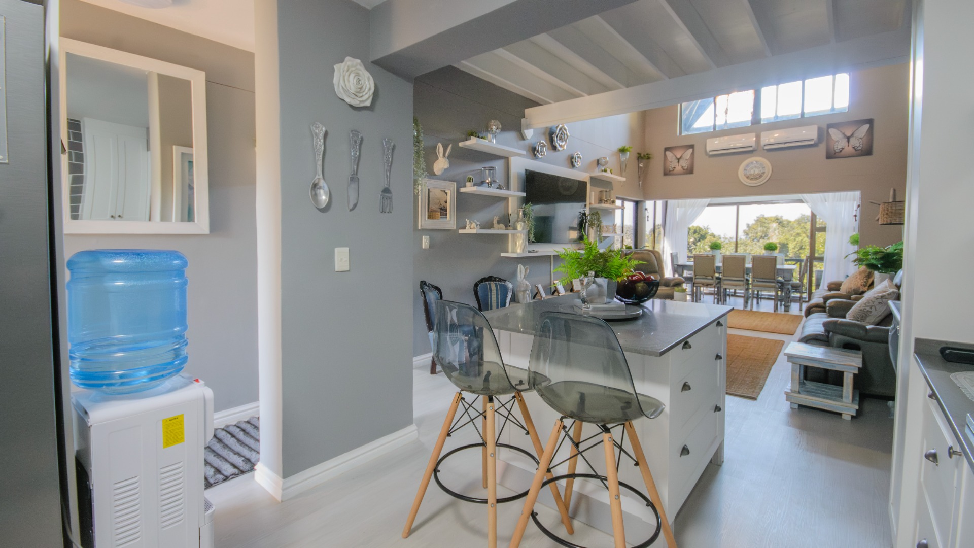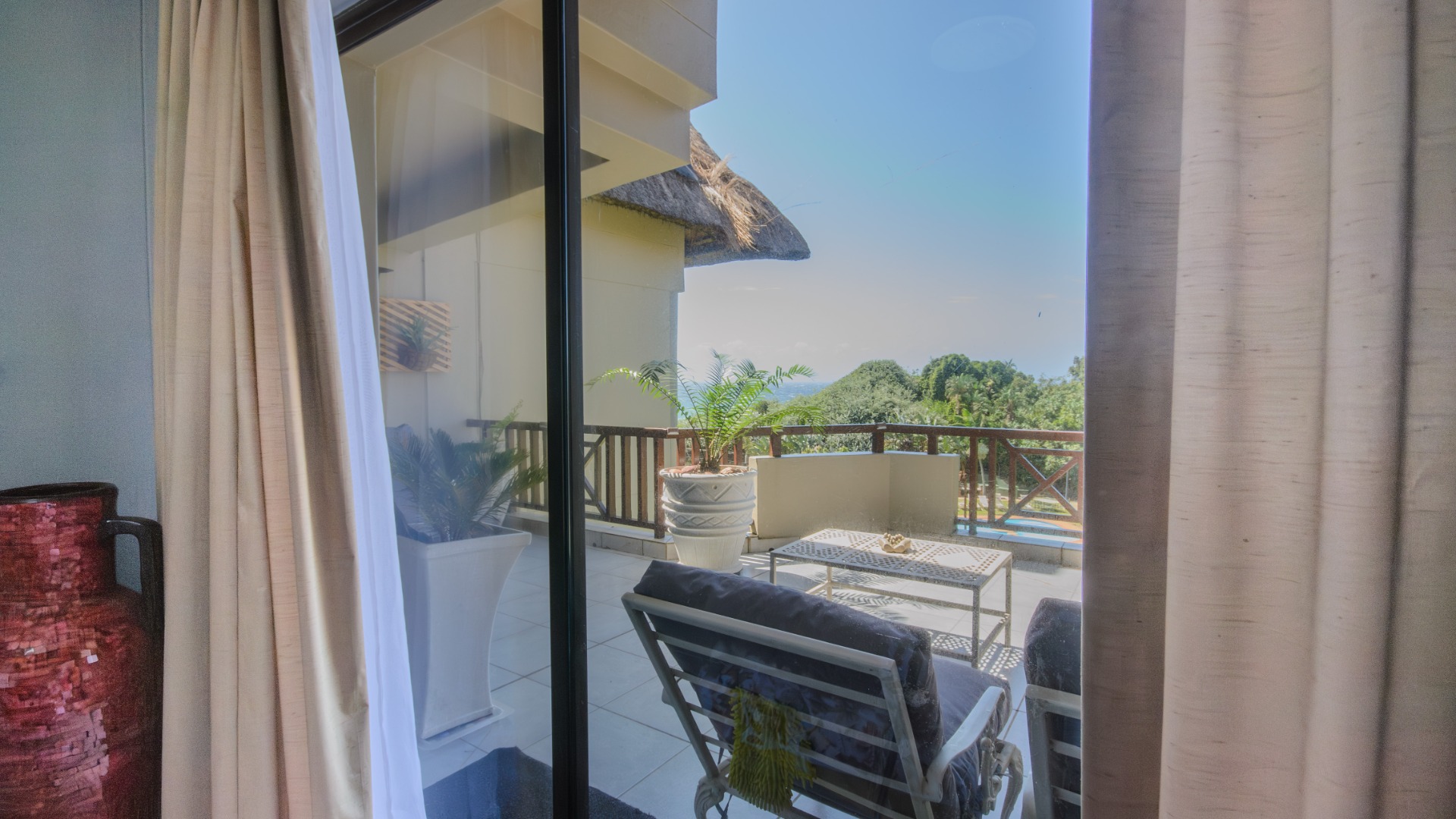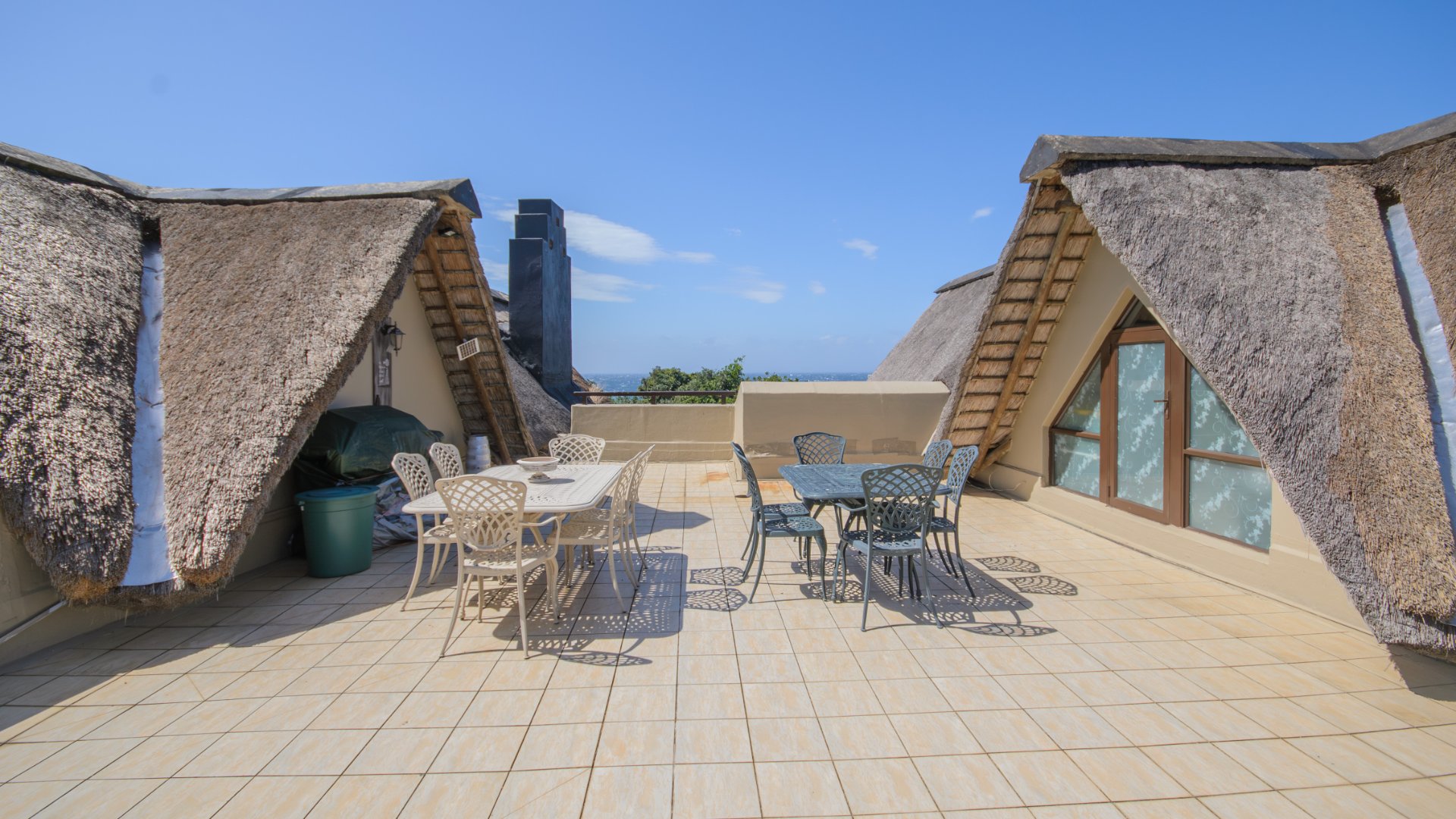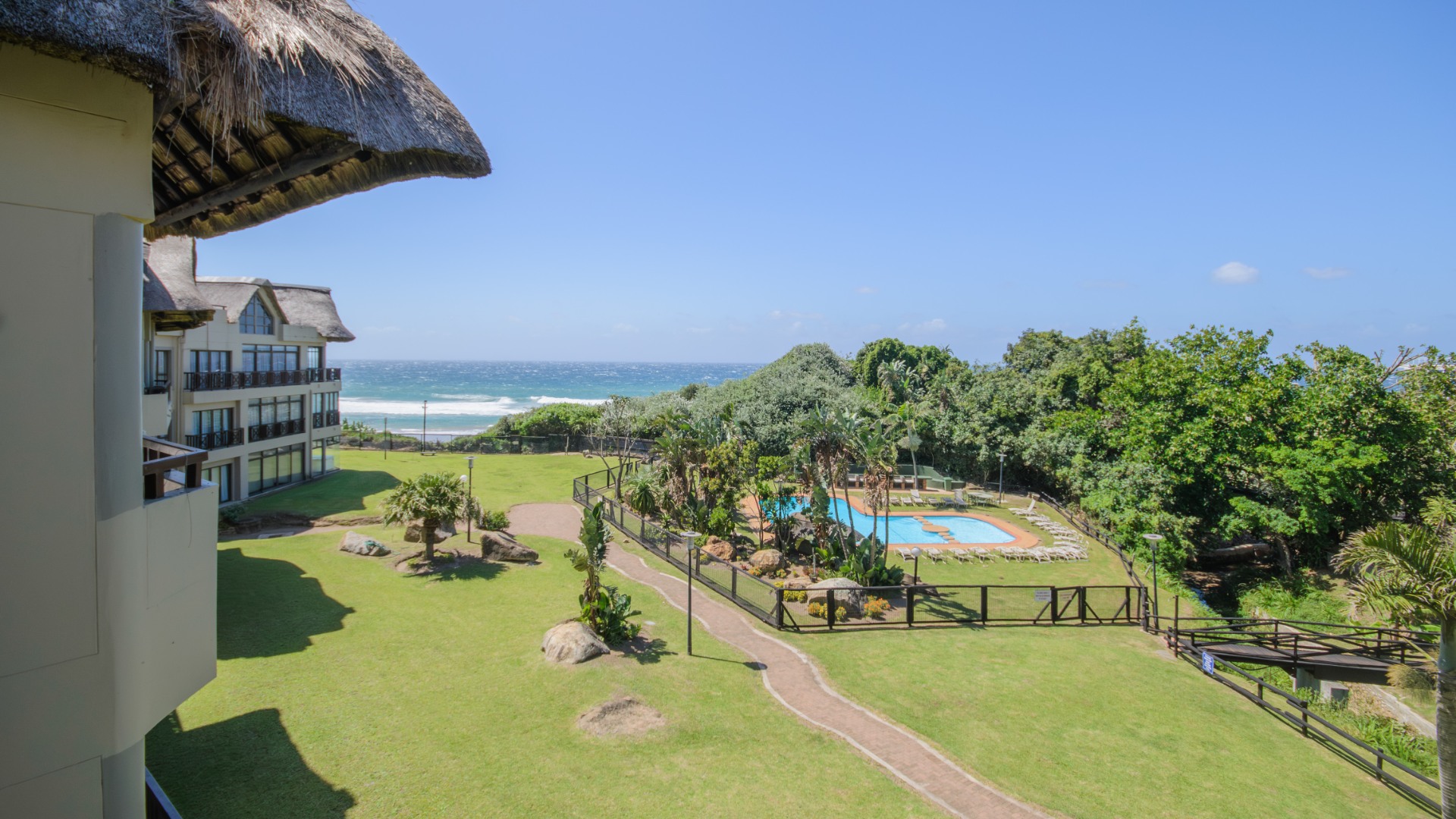 The well-appointed open plan modern kitchen, caters to culinary enthusiasts, ensuring every meal is a delight. Certainly a Chef's dream kitchen. This magnificent unit features three generously proportioned bedrooms and two luxurious bathrooms, including one en-suite, providing ample comfort and privacy for residents and guests alike. Two bedrooms opens onto the large patio. Each space is crafted to offer a tranquil retreat after a day spent enjoying the coastal lifestyle. An expansive patio offers breathtaking sea views, providing the perfect backdrop for al fresco dining or simply savouring the ocean breeze. Up another flight of stairs, you will find the large rooftop - exclusive for you !! Another bedroom/study can be found here. There is also a lock up garage and exclusive allocated parking area allocated to this unit. The communal areas are a resort-style haven, featuring a large, sparkling swimming pool set amidst tropical landscaping, ideal for leisurely dips and sun-drenched afternoons. With a dedicated garage and additional parking, convenience is paramount within this secure, country living environment. Back up water tanks in complex with sustainable borehole, as well as own water tank on roof patio of unit.