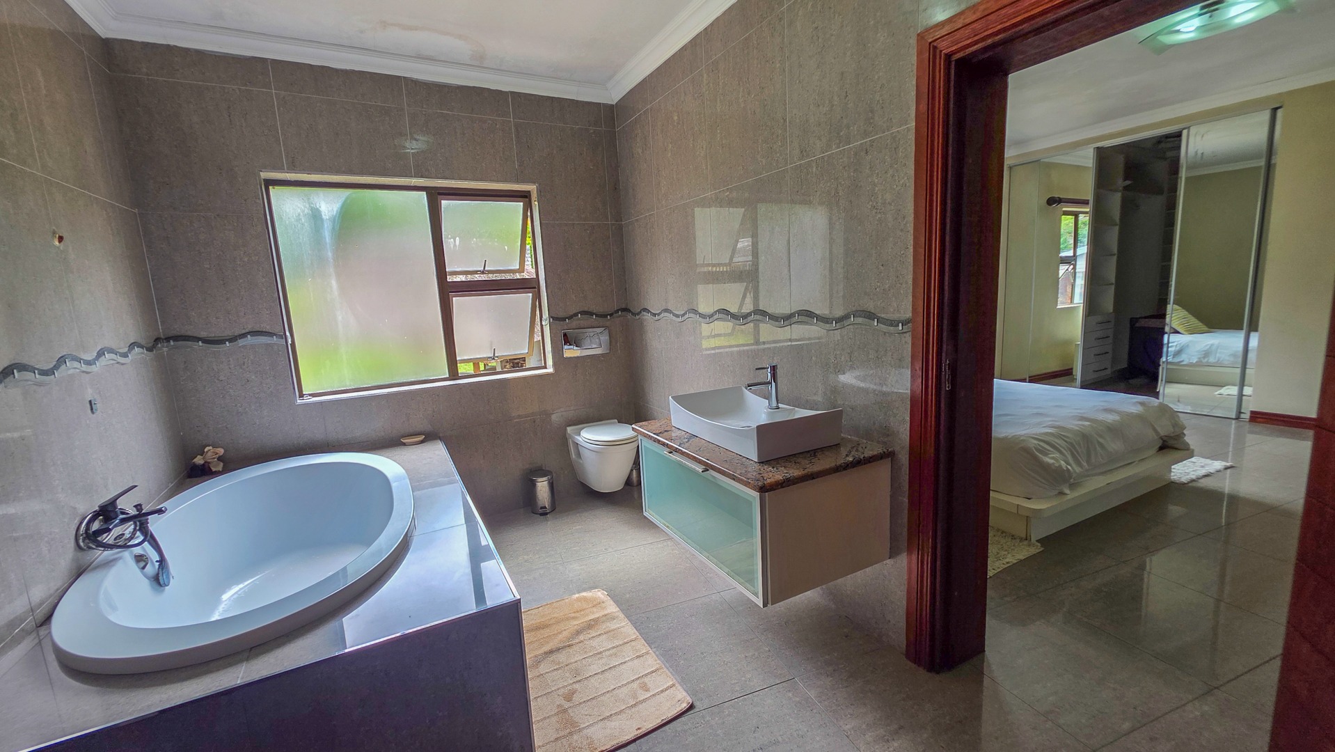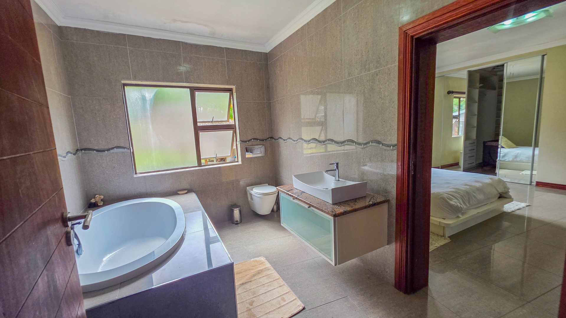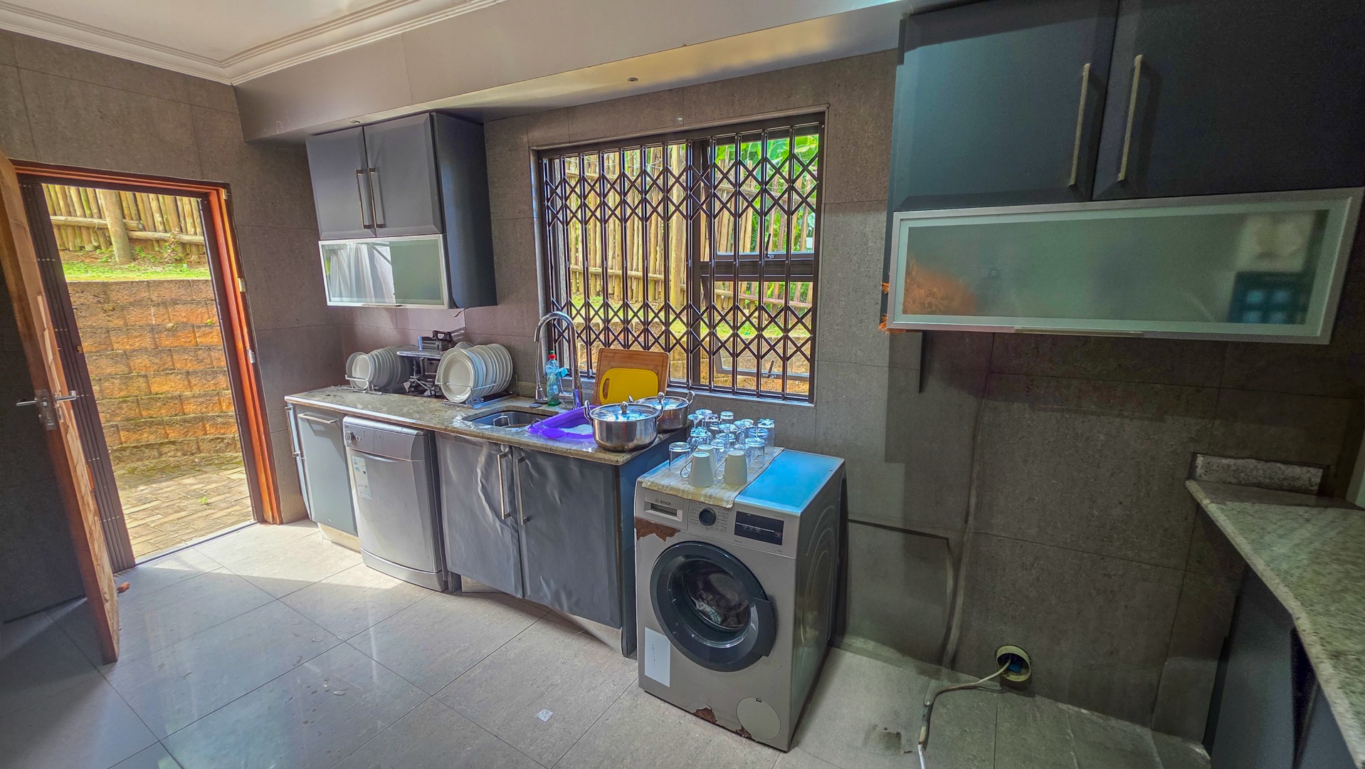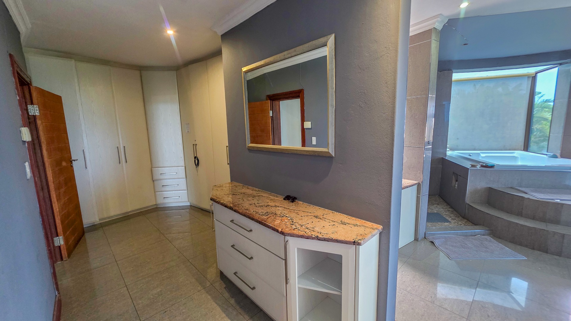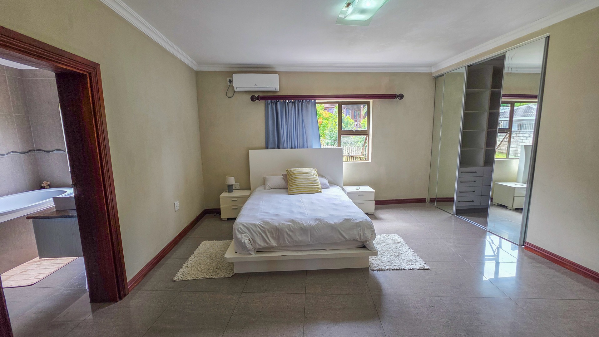 The kitchen includes two eye-level ovens, a laundry area, and a scullery, making it both functional and well-equipped for everyday living. Each bedroom has an air conditioner, keeping the home cool through warm coastal days. The main bedroom offers a full ensuite bathroom with a jacuzzi, providing a private retreat.