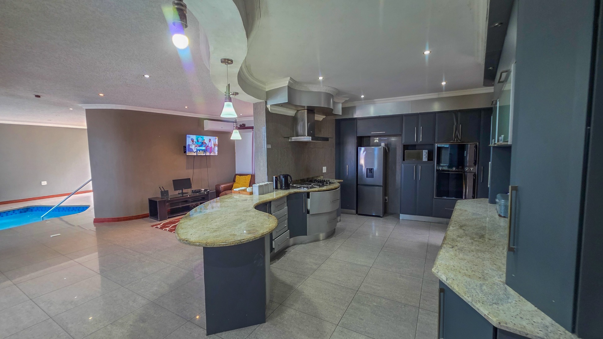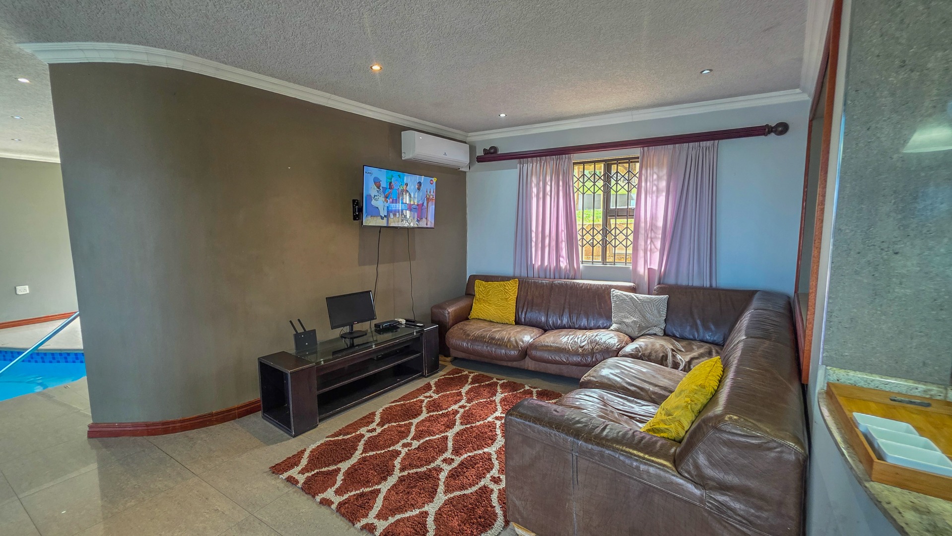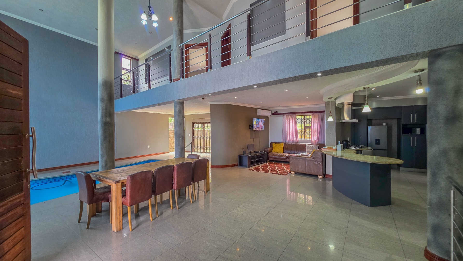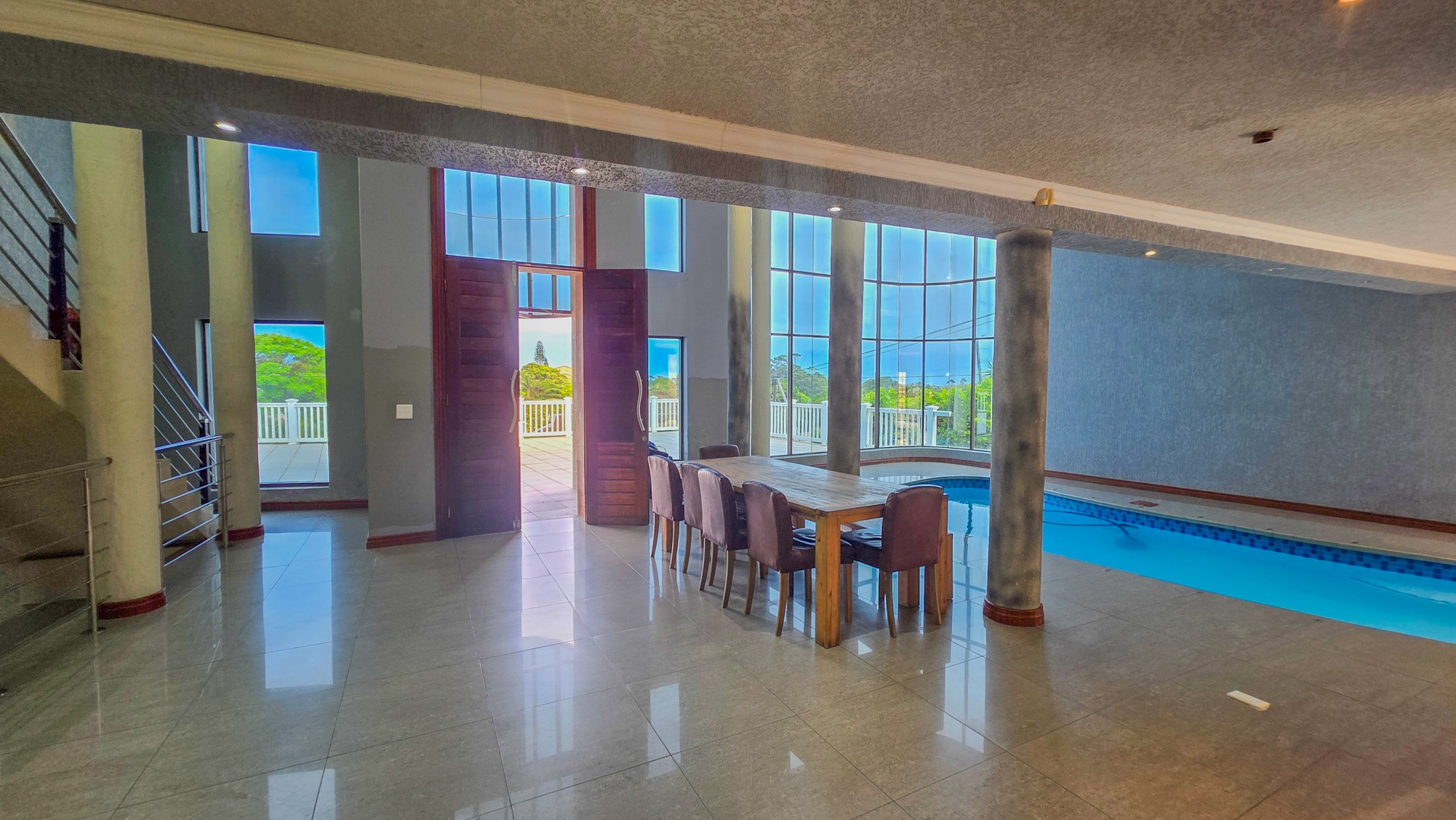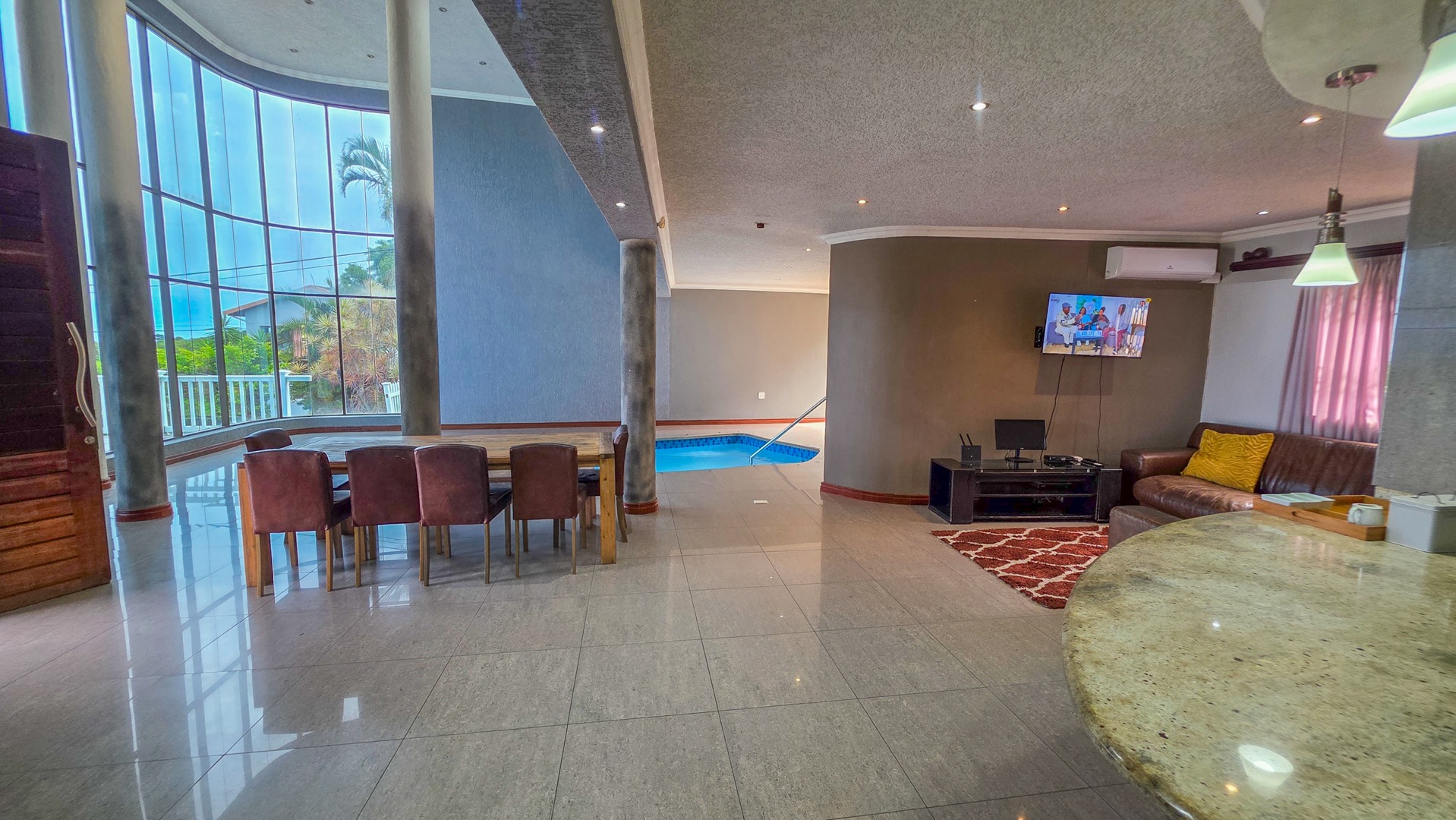 This inviting 4-bedroom, 3-bathroom home in Ramsgate offers space, comfort, and coastal charm. Set on a generous 1,446 m² stand, it features an open-plan layout where the lounge, dining area, and indoor swimming pool flow together, creating a relaxed and welcoming atmosphere.