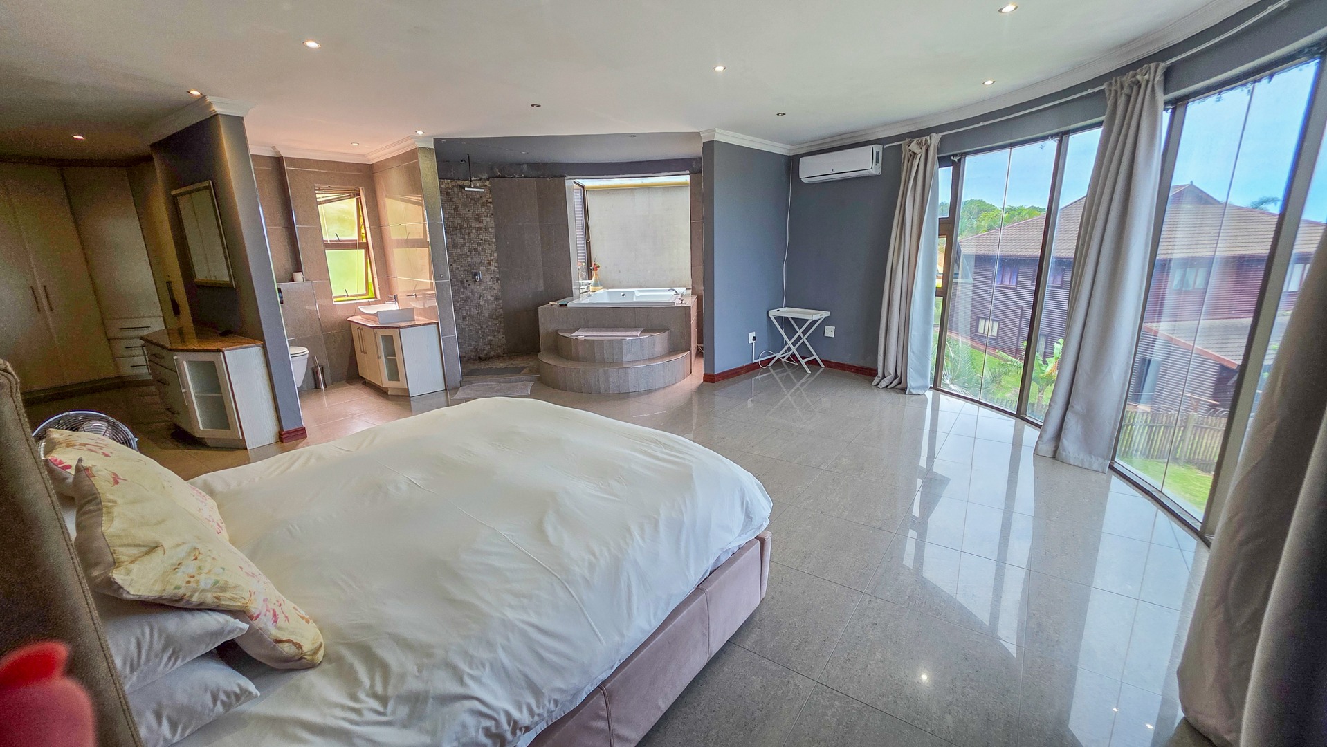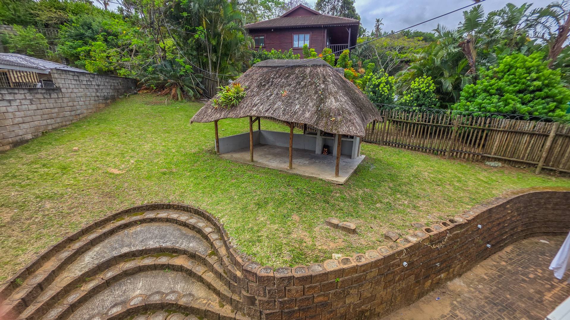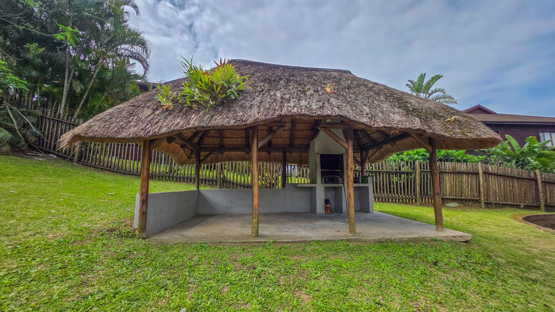 Large tinted windows throughout the home allow natural light in while maintaining privacy and comfort. The front patio captures beautiful sea views, while the thatched lapa at the back is ideal for family gatherings or quiet evenings outdoors.