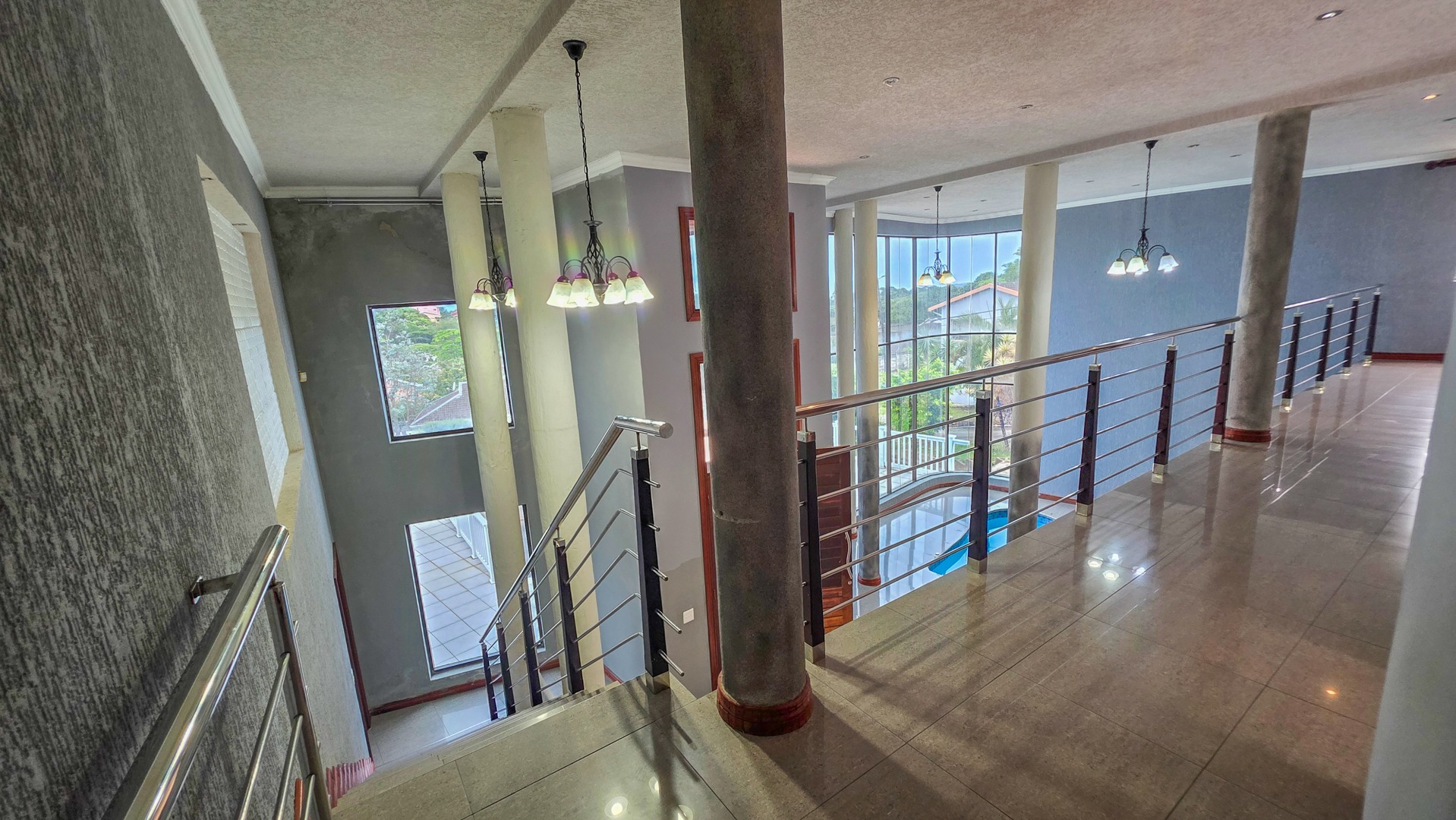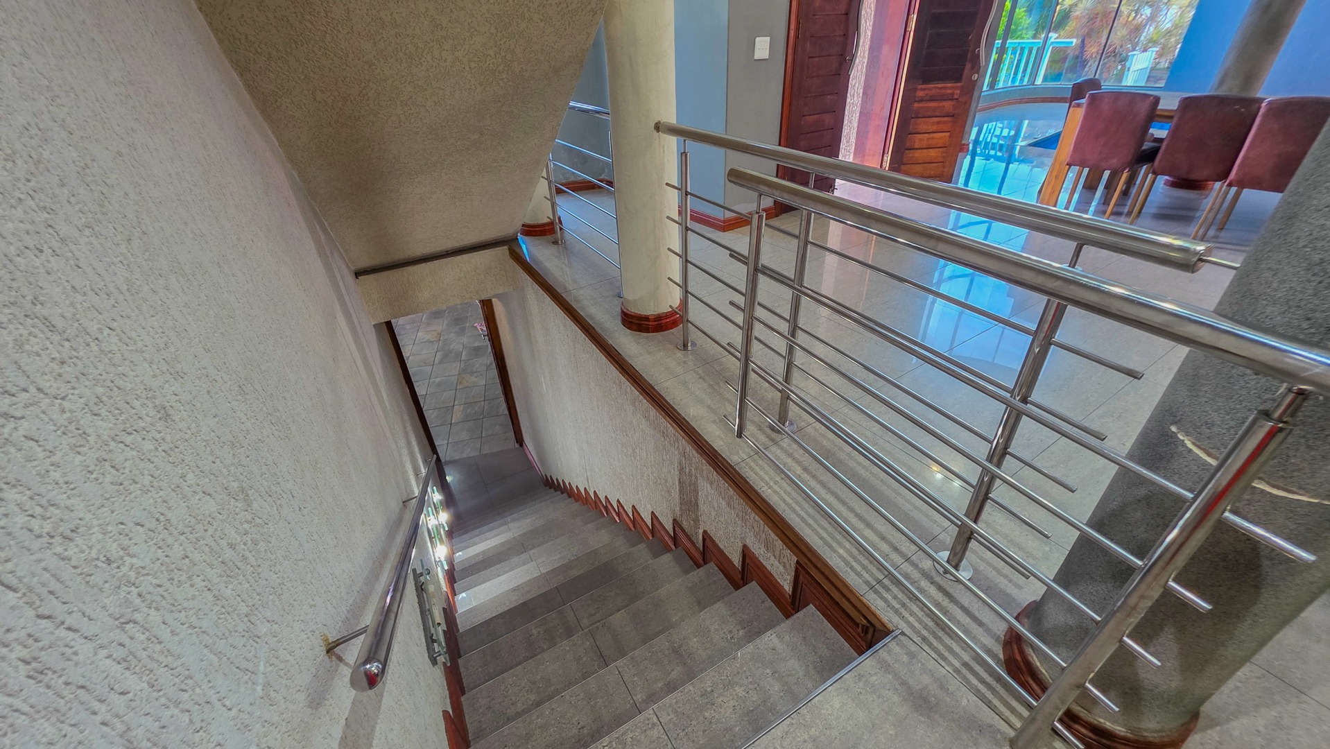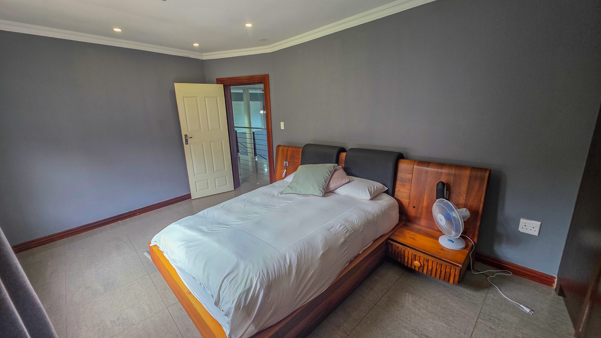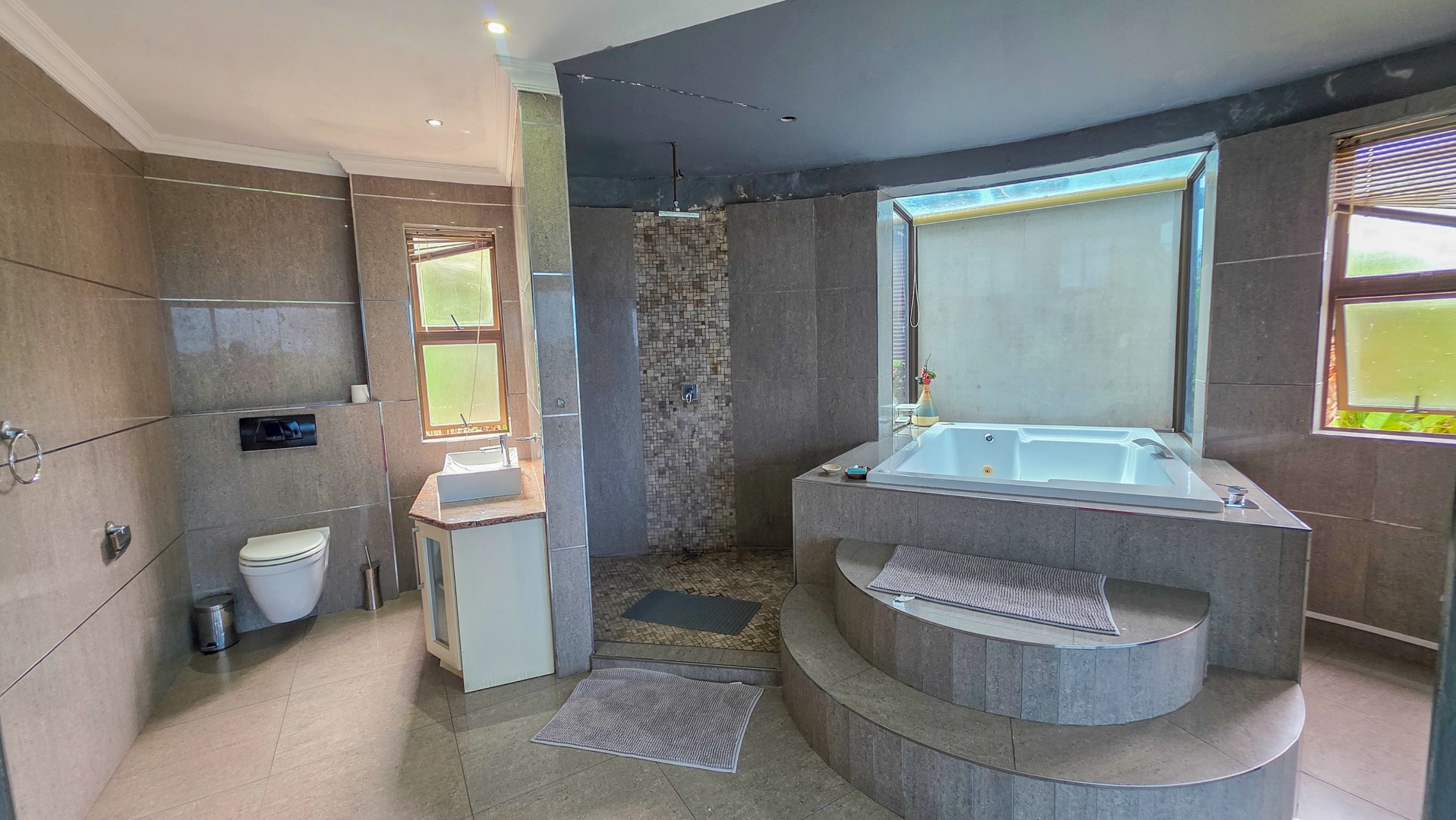 Large tinted windows throughout the home allow natural light in while maintaining privacy and comfort. The front patio captures beautiful sea views, while the thatched lapa at the back is ideal for family gatherings or quiet evenings outdoors.
