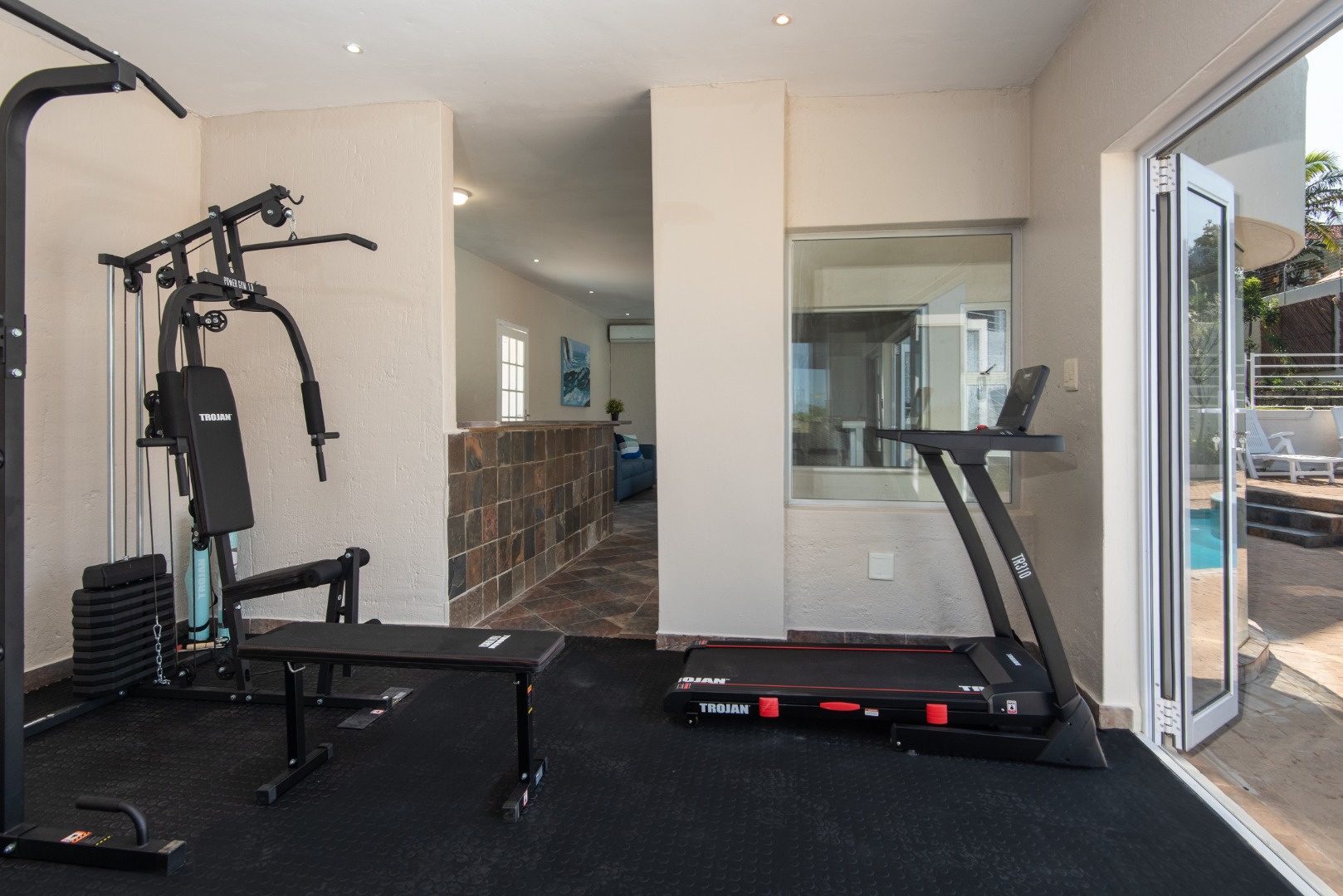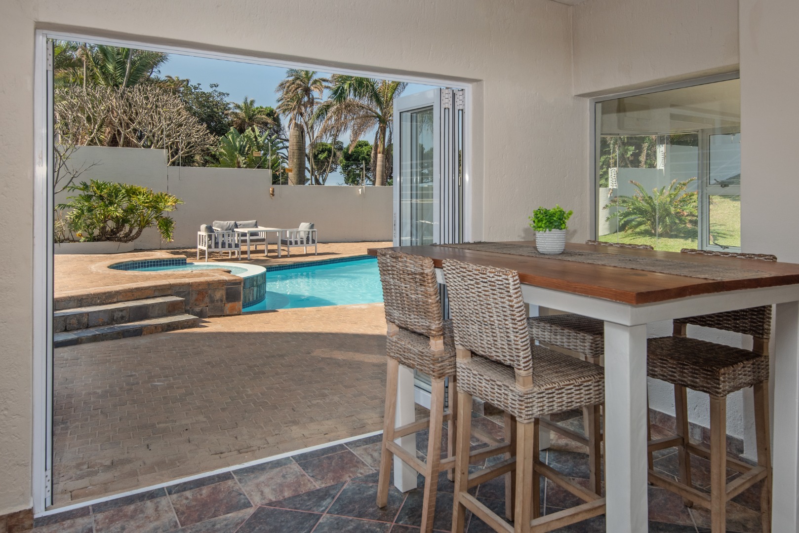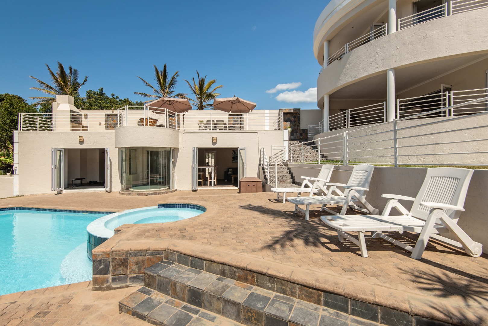 The allure extends outdoors to a magnificent private oasis. Multiple spacious balconies and a generous patio invite alfresco entertaining, complemented by a magnificent entertainment area. The sparkling swimming pool, featuring an integrated conversation pool, providing a refreshing escape against the backdrop of the ocean. A dedicated indoor gym and spa caters to wellness, while the lush garden and six open parking bays enhance convenience and luxury. Beyond its aesthetic appeal, this residence is equipped with modern conveniences and robust security. An alarm system, intercom, and access gate, coupled with a totally secured perimeter, provide peace of mind. Sustainability is paramount, with solar panels, a battery inverter, borehole, and reserve water storage tanks ensuring energy efficiency and water resilience.
