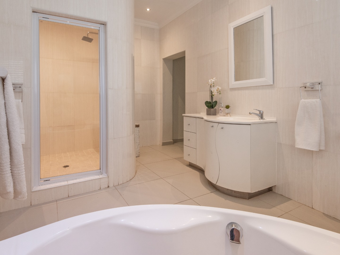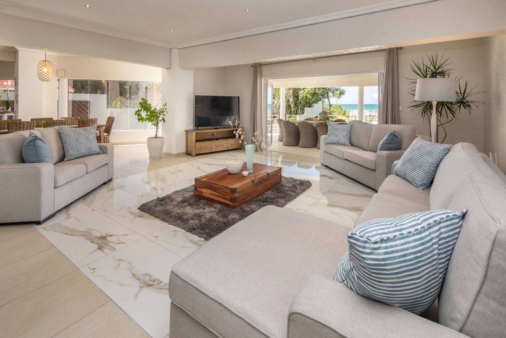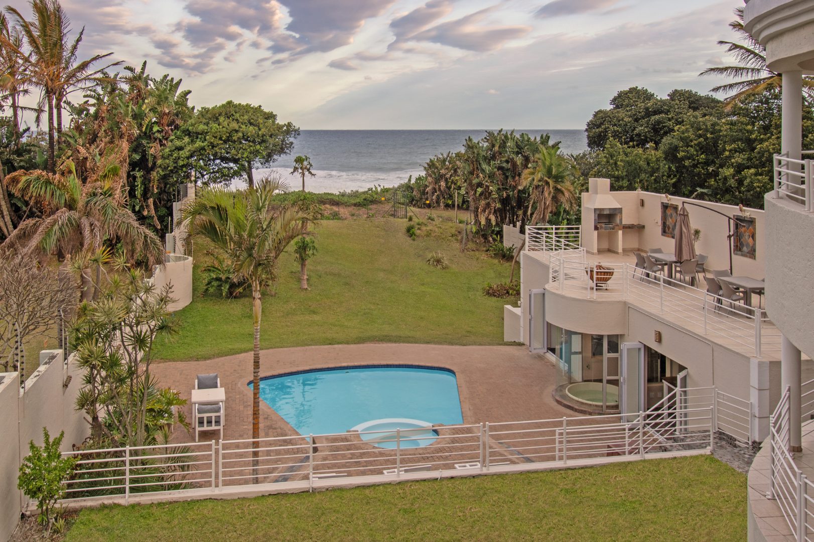 The allure extends outdoors to a magnificent private oasis. Multiple spacious balconies and a generous patio invite alfresco entertaining, complemented by a magnificent entertainment area. The sparkling swimming pool, featuring an integrated conversation pool, providing a refreshing escape against the backdrop of the ocean. A dedicated indoor gym and spa caters to wellness, while the lush garden and six open parking bays enhance convenience and luxury. Beyond its aesthetic appeal, this residence is equipped with modern conveniences and robust security. An alarm system, intercom, and access gate, coupled with a totally secured perimeter, provide peace of mind. Sustainability is paramount, with solar panels, a battery inverter, borehole, and reserve water storage tanks ensuring energy efficiency and water resilience.