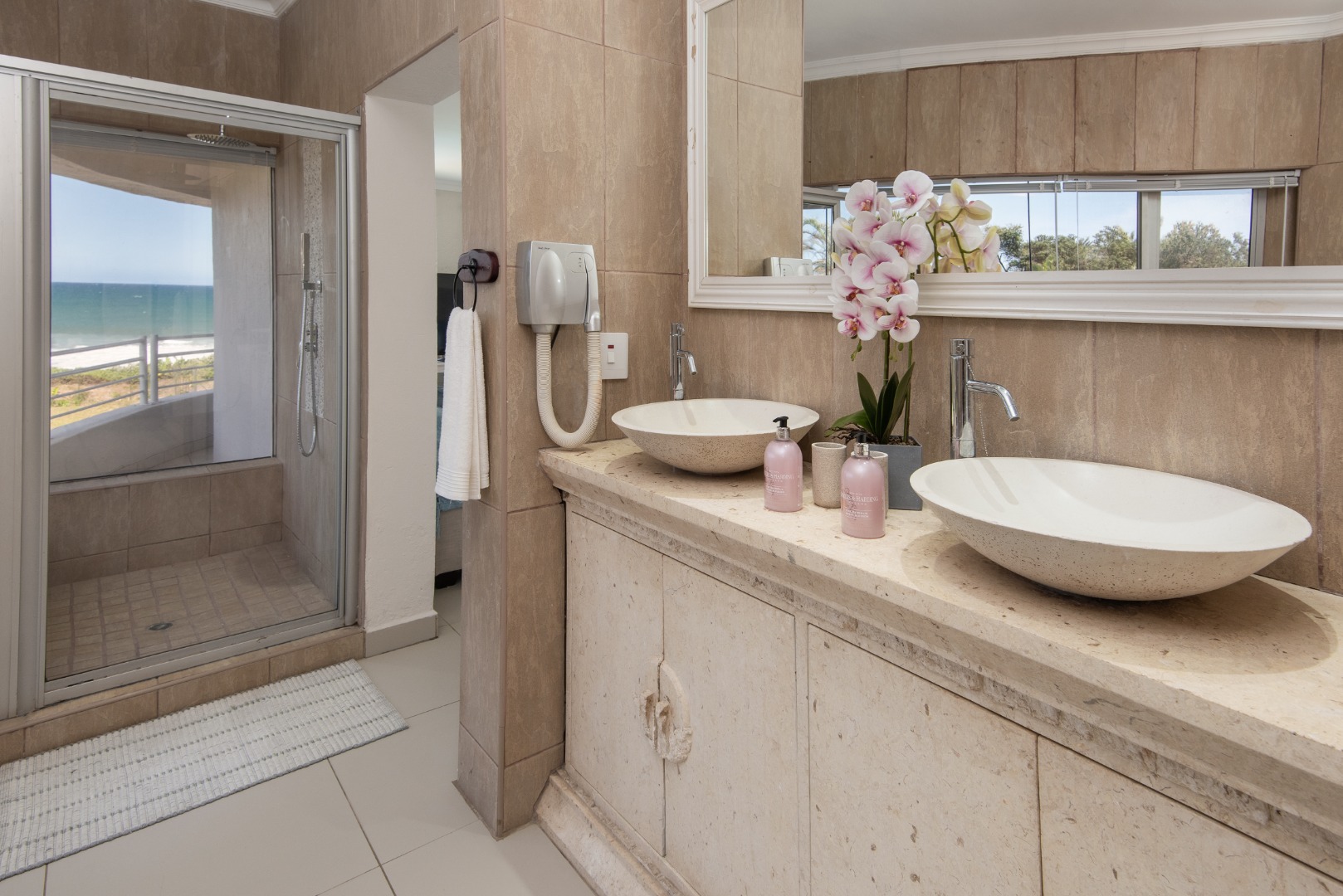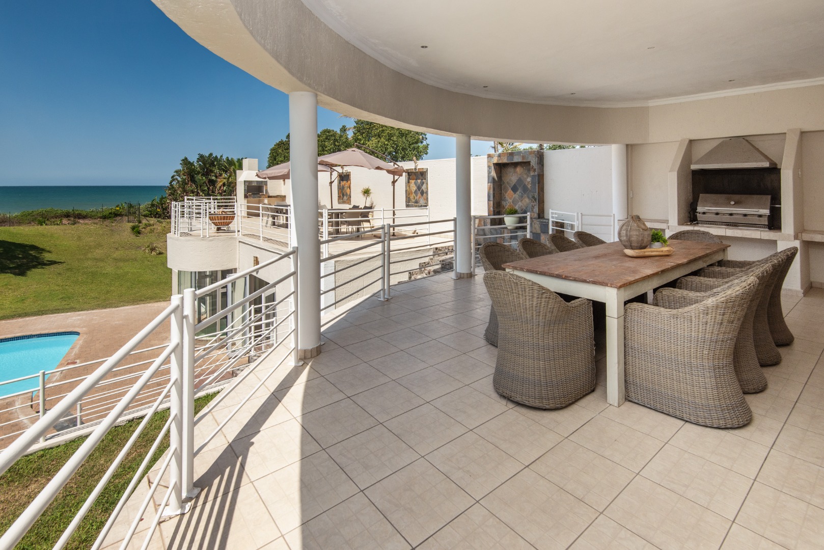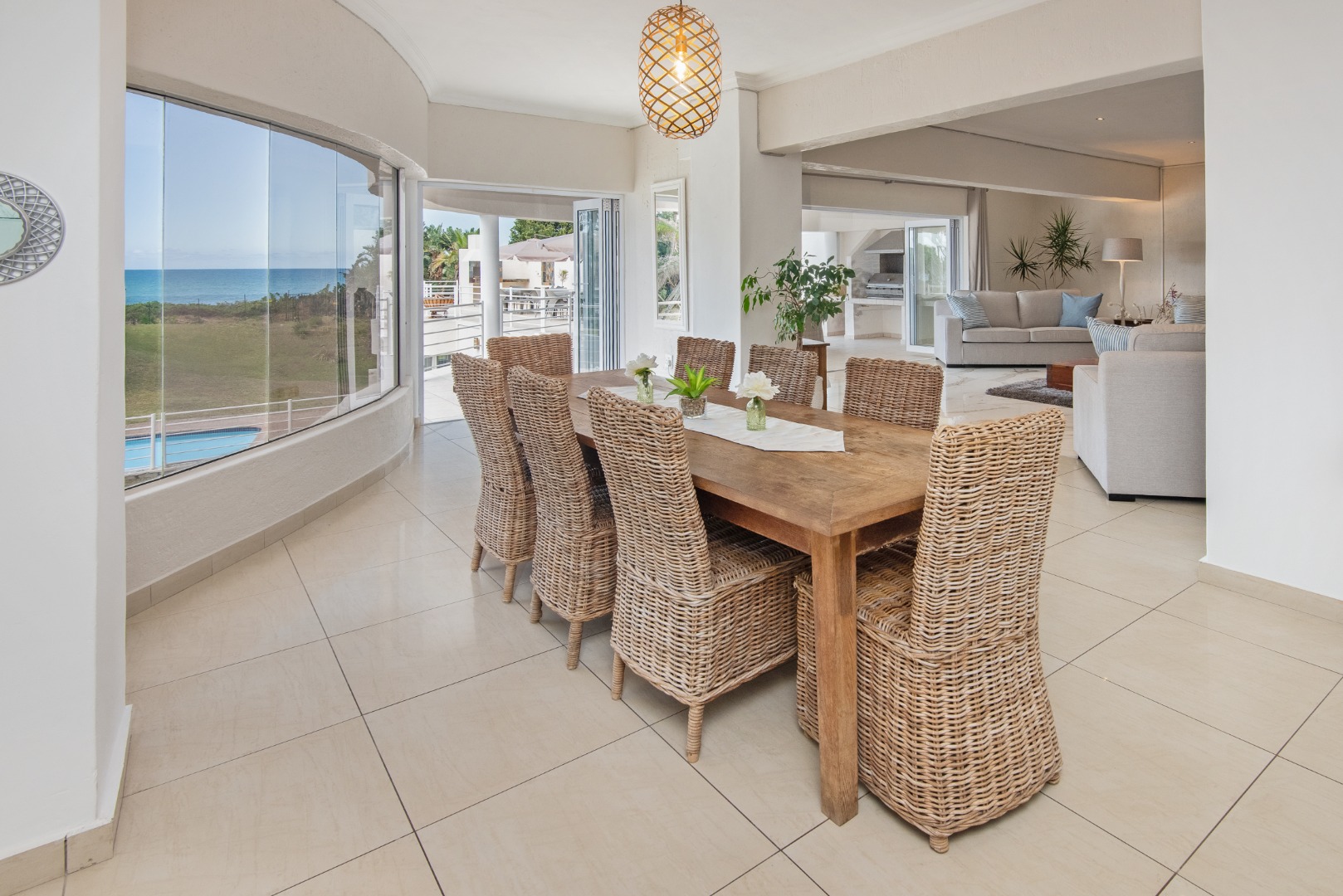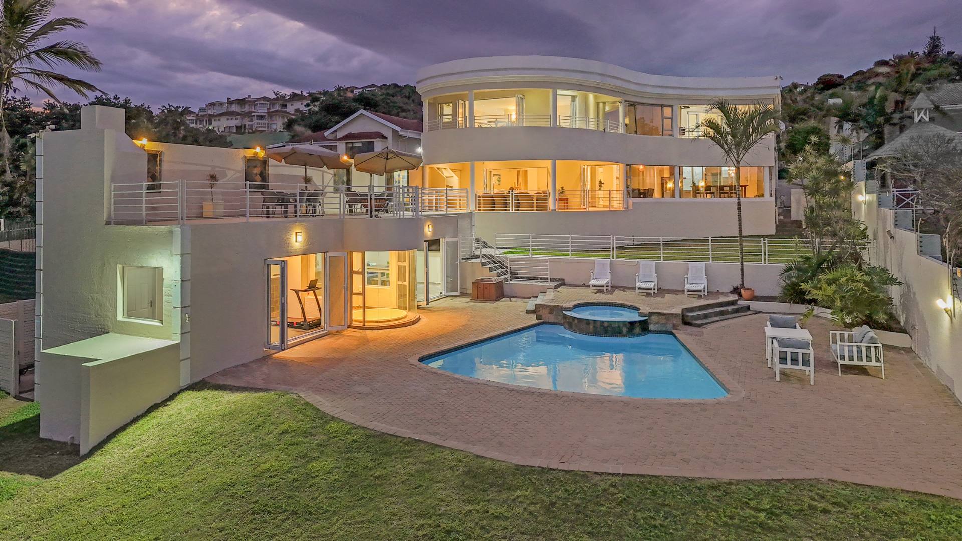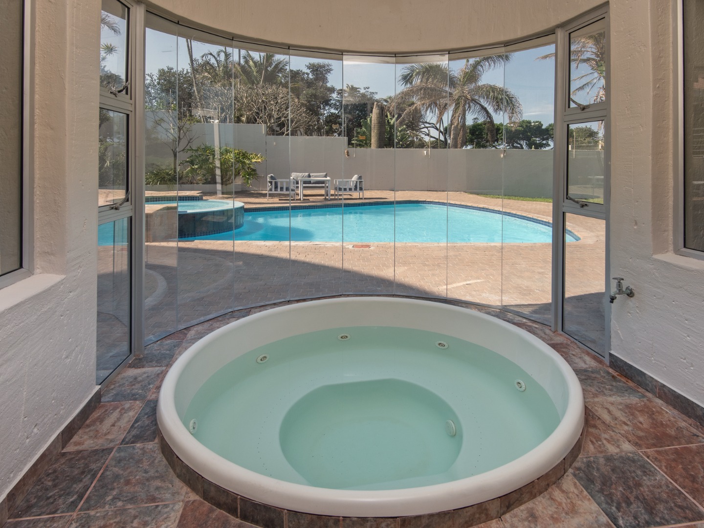 The allure extends outdoors to a magnificent private oasis. Multiple spacious balconies and a generous patio invite alfresco entertaining, complemented by a magnificent entertainment area. The sparkling swimming pool, featuring an integrated conversation pool, providing a refreshing escape against the backdrop of the ocean. A dedicated indoor gym and spa caters to wellness, while the lush garden and six open parking bays enhance convenience and luxury. Beyond its aesthetic appeal, this residence is equipped with modern conveniences and robust security. An alarm system, intercom, and access gate, coupled with a totally secured perimeter, provide peace of mind. Sustainability is paramount, with solar panels, a battery inverter, borehole, and reserve water storage tanks ensuring energy efficiency and water resilience.