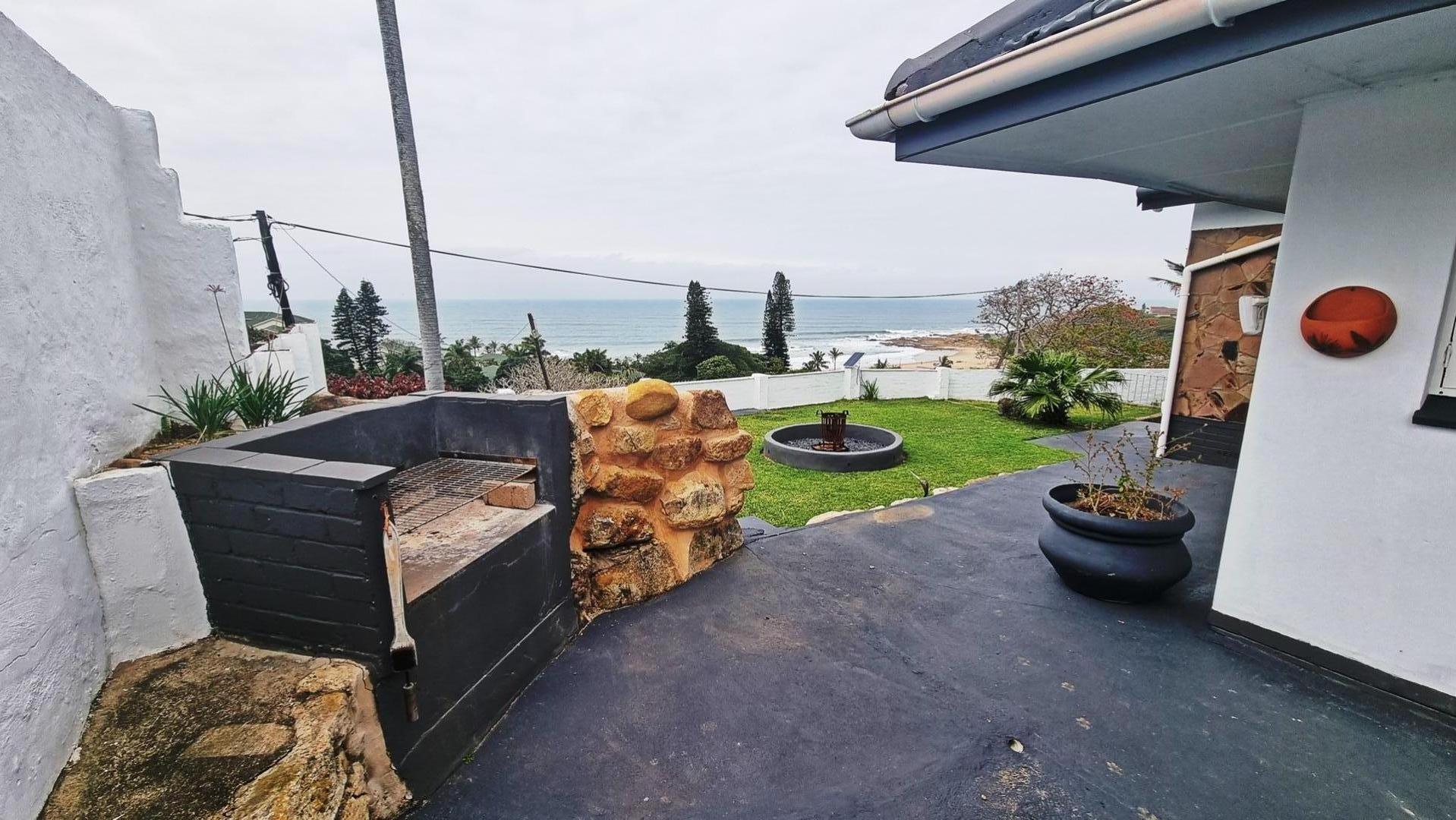 The property offers exceptional flexibility with two fully renovated one bedroom flats, ideal for guests or additional income, as well as a large entertainment area with further potential. Outdoors, a pool house overlooks a sparkling swimming pool with sea views, while a built in braai, stone seating, and fire pit create the perfect setting for relaxed coastal gatherings.