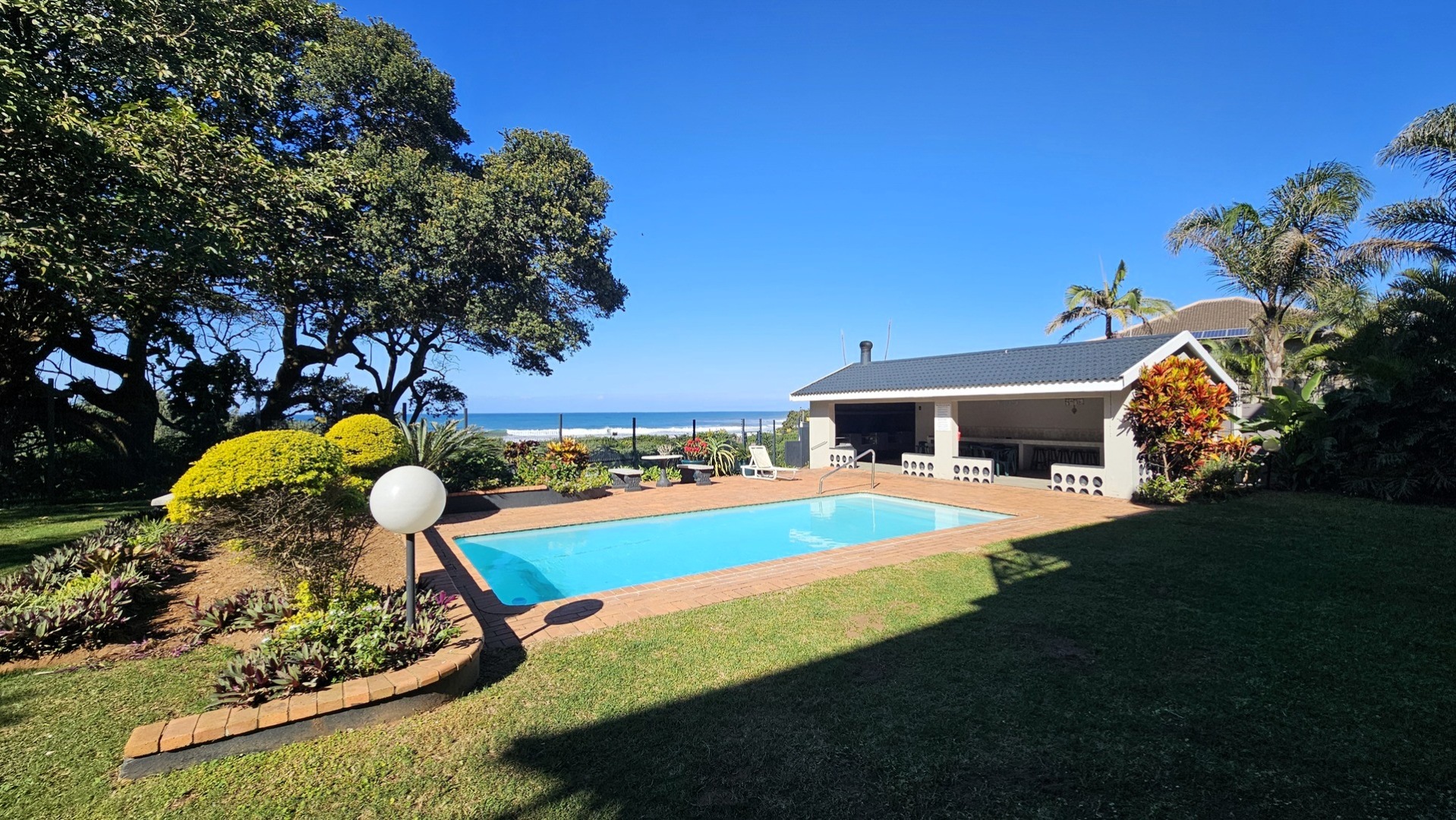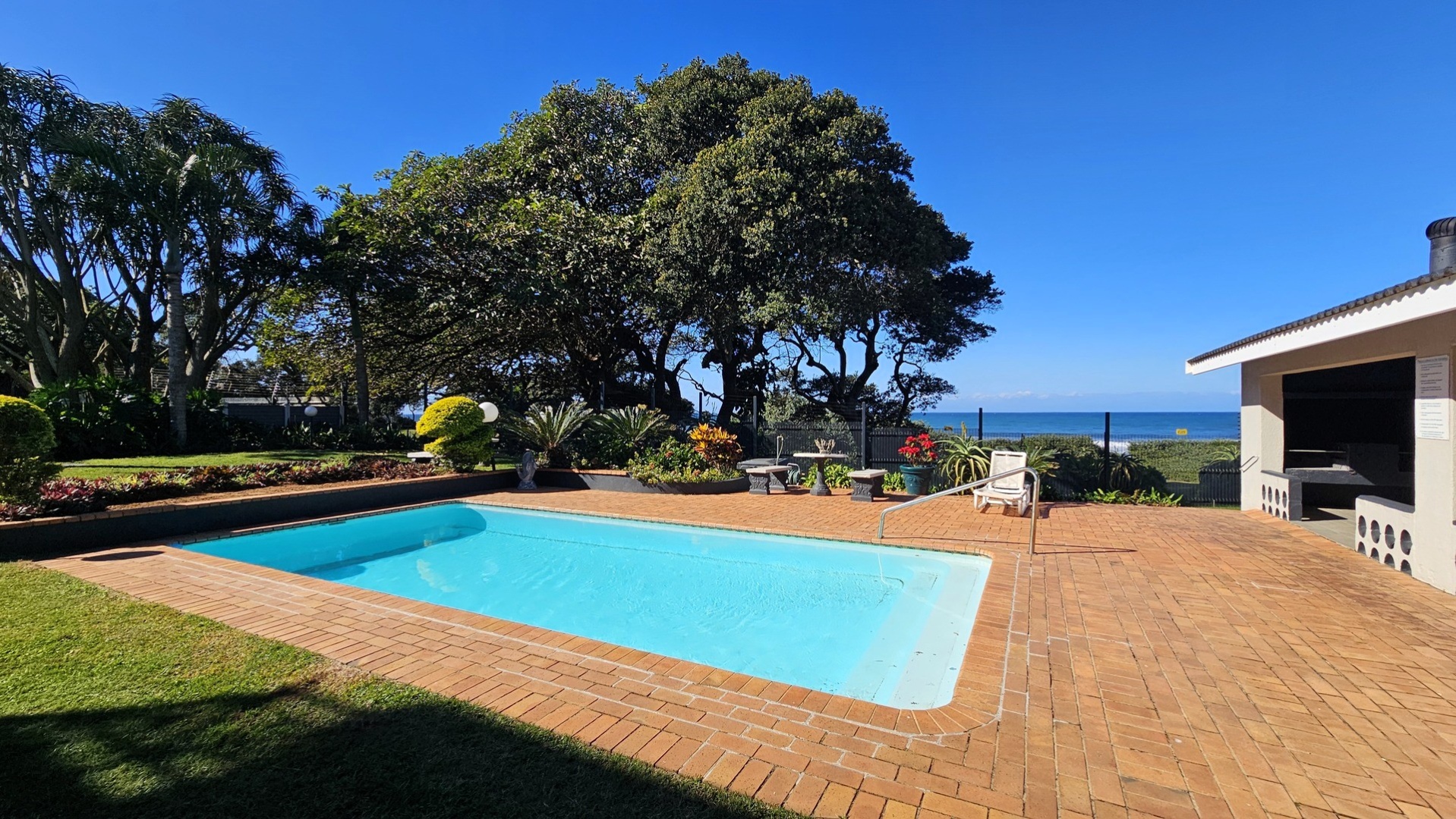 Step into coastal living with this lovely beachfront two-bedroom apartment, offering uninterrupted sea views from the moment you enter. The open-plan kitchen, dining, and lounge area flows effortlessly onto a patio, perfect for relaxing or entertaining while overlooking the communal braai area, sparkling swimming pool, and the ocean just steps away.