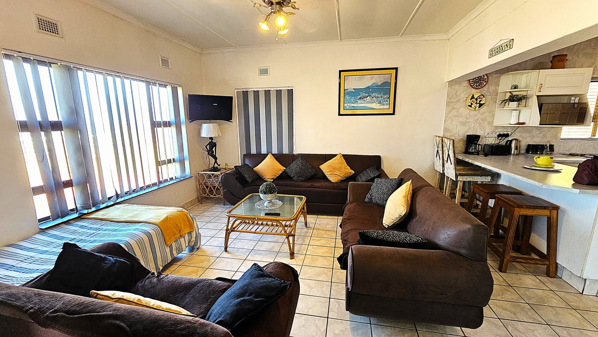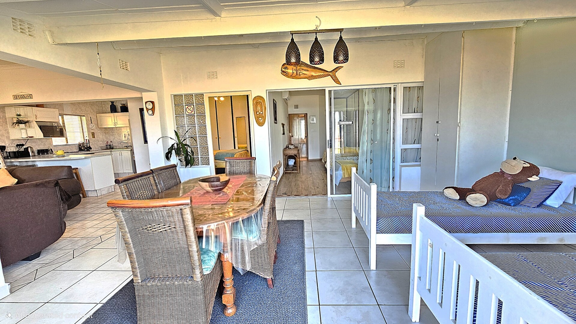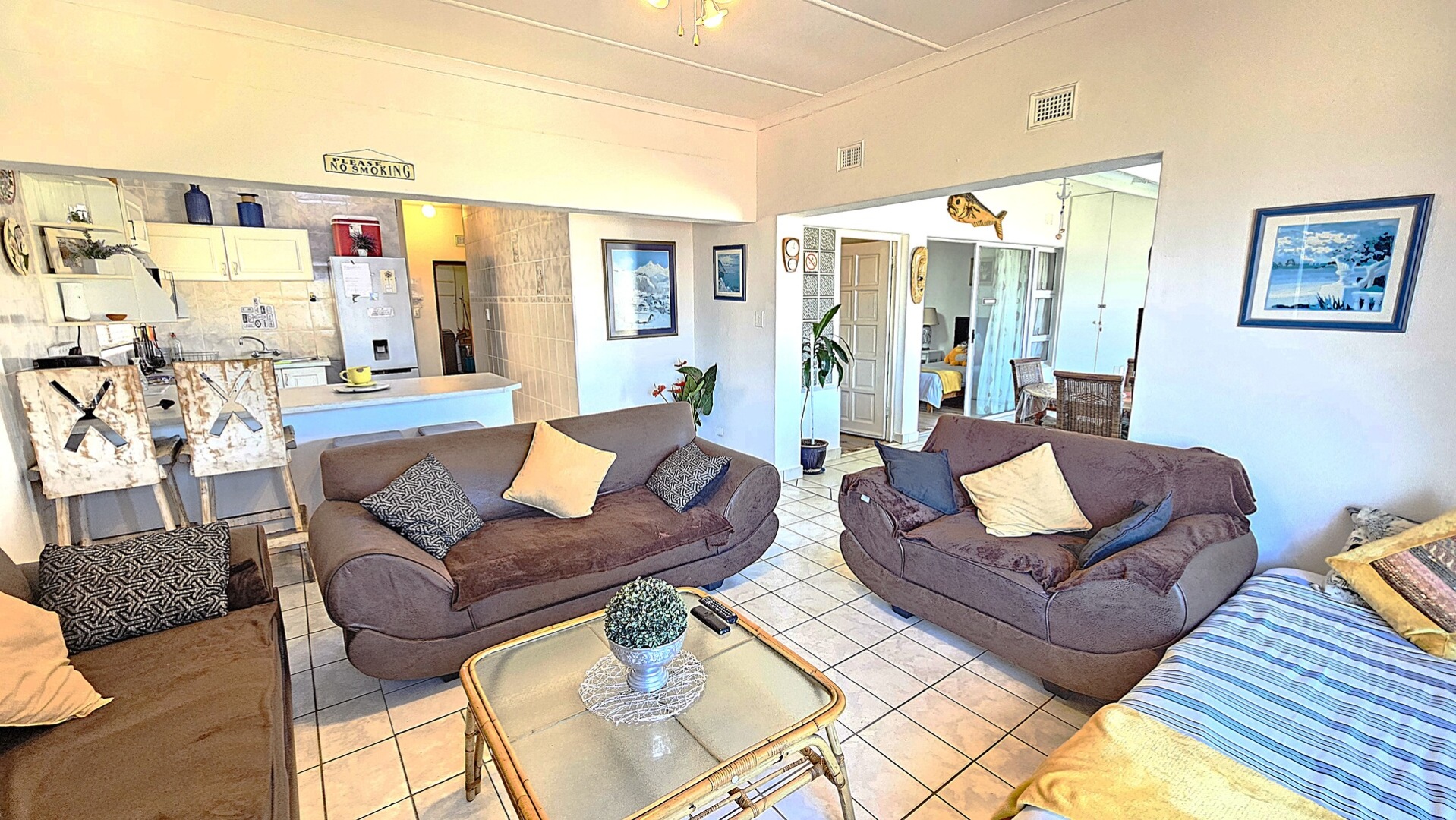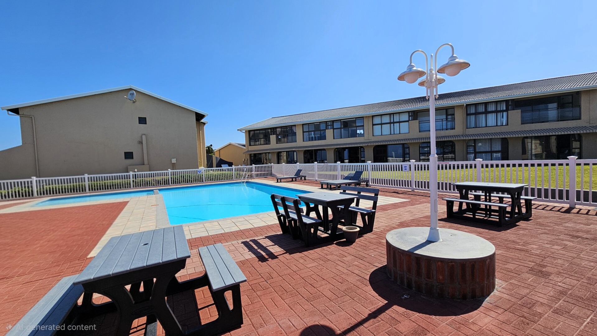Accommodation comprises two comfortable bedrooms, with the main bedroom featuring an en-suite bathroom for added privacy. A second well-appointed bathroom serves the additional bedroom and guests. The property's 117 sqm floor size offers ample living space within the expansive 21790 sqm erf of the complex. Step outside to embrace the coastal lifestyle. The complex boasts a communal swimming pool, perfect for leisurely dips, and a communal braai area for entertaining. Enjoy the beautifully maintained garden spaces and the breathtaking panoramic sea views from various vantage points. With one dedicated parking bays and wheelchair-friendly access, convenience is paramount. The complex is totally walled and secured with an access gate, ensuring peace of mind. A boat launch facility across the street and parking space inside the complex further enhances the appeal for water enthusiasts.