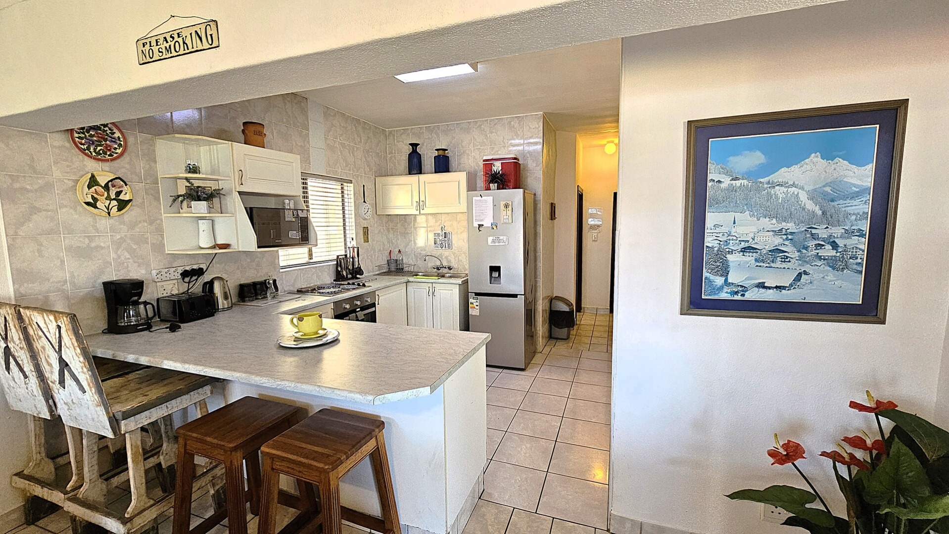 Discover this inviting 2-bedroom, 2-bathroom unit, perfectly situated in a sought-after complex in Shelly Beach, Margate. Nestled along the picturesque South African coastline, this property offers an ideal holiday home or permanent residence, benefiting from its prime coastal beach location and stunning sea views. The interior features a well-designed open-plan layout, seamlessly connecting the lounge, dining area, and kitchen. This functional space is enhanced by large sliding doors that allow abundant natural light to flood the rooms, creating a bright and airy ambiance. The unit comes fully furnished, providing immediate comfort and convenience, and includes practical amenities such as air conditioning and a dedicated laundry area.
