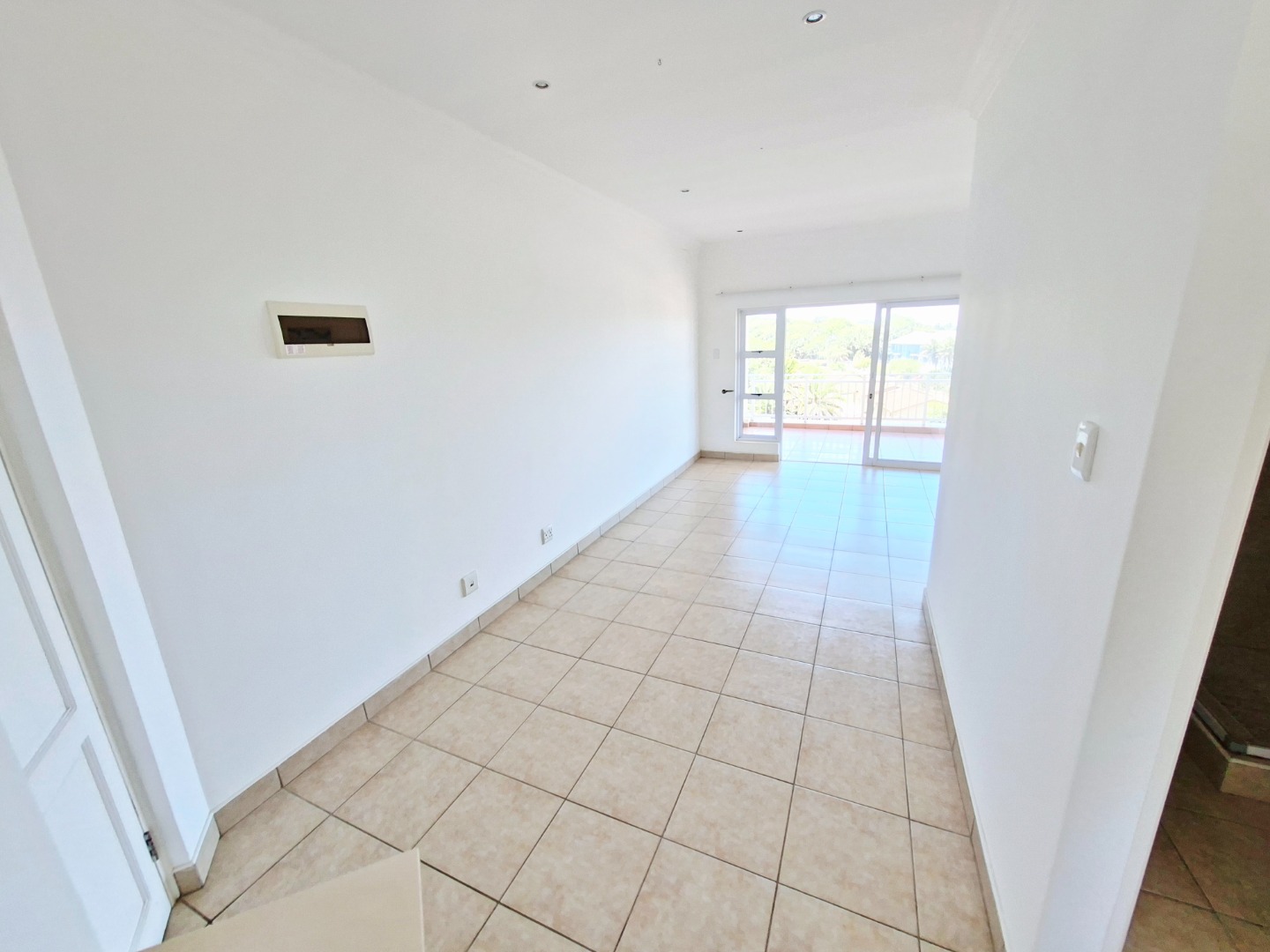 The interior features a well-appointed lounge area that flows seamlessly, enhanced by abundant natural light from large glass sliding doors. The modern kitchen boasts sleek white cabinetry, granite countertops, a double sink, and an integrated electric hob with an extractor fan, providing a functional space for culinary pursuits. Tiled flooring throughout the living areas ensures easy maintenance and a clean aesthetic.