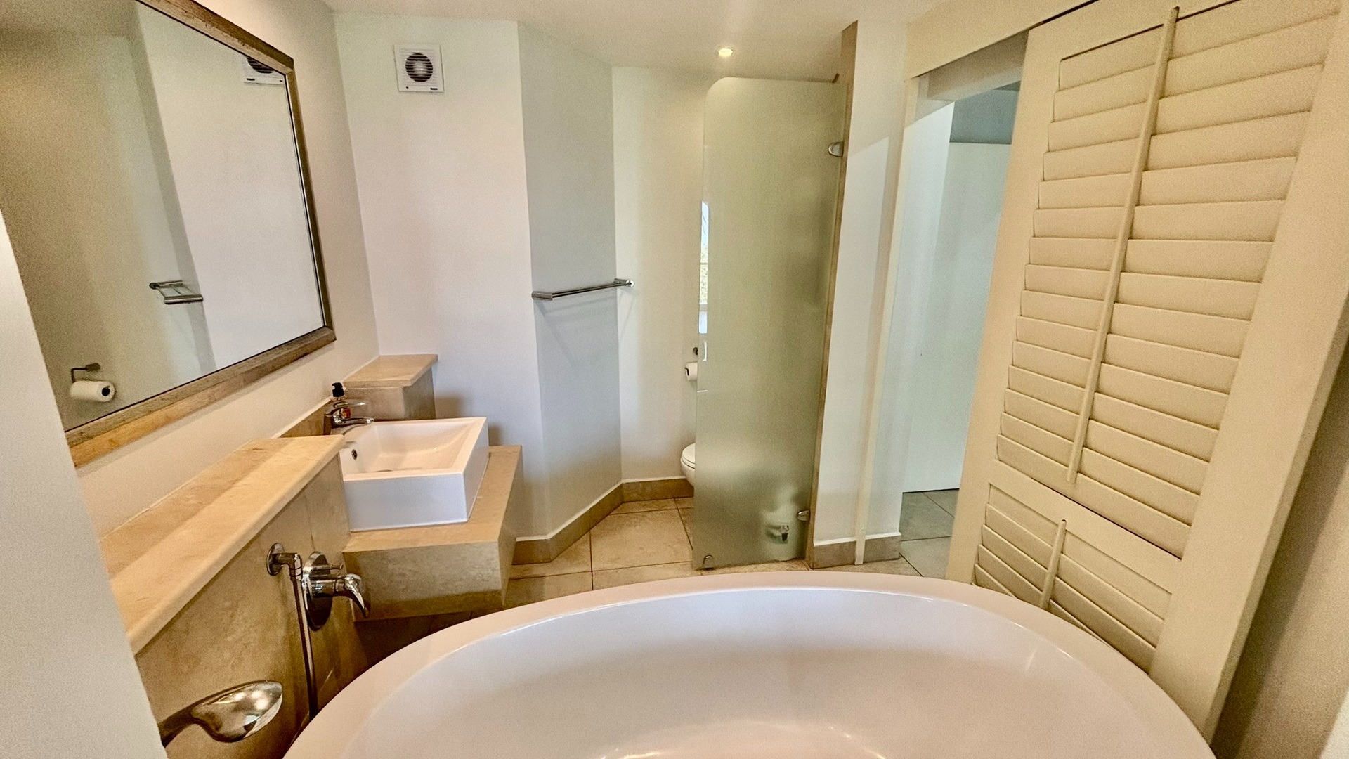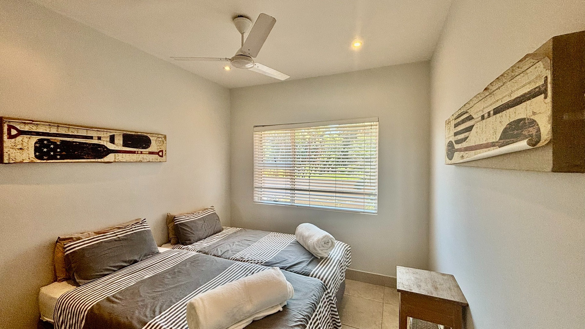 Each of the three comfy bedrooms offers a peaceful retreat. The main bedroom even has its own private balcony, where you can enjoy lush green views and a refreshing breeze – a perfect spot to unwind after a long day. With two bathrooms, there's enough space for everyone to get ready without a fuss.