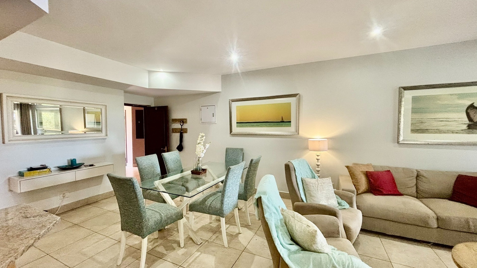 Get ready to embrace a relaxed coastal lifestyle with this lovely 3-bedroom, 2-bathroom home nestled in a secure complex in Shelly Beach, Margate. This charming property is perfect for anyone looking for a permanent residence or a fantastic holiday home by the sea. You'll love the open-plan living, dining, and kitchen area, which feels super spacious and bright thanks to those big sliding doors. The kitchen is neat and functional, boasting granite countertops, integrated appliances like an oven, hob, and microwave, plus a double sink and plenty of cabinet space for all your cooking essentials.