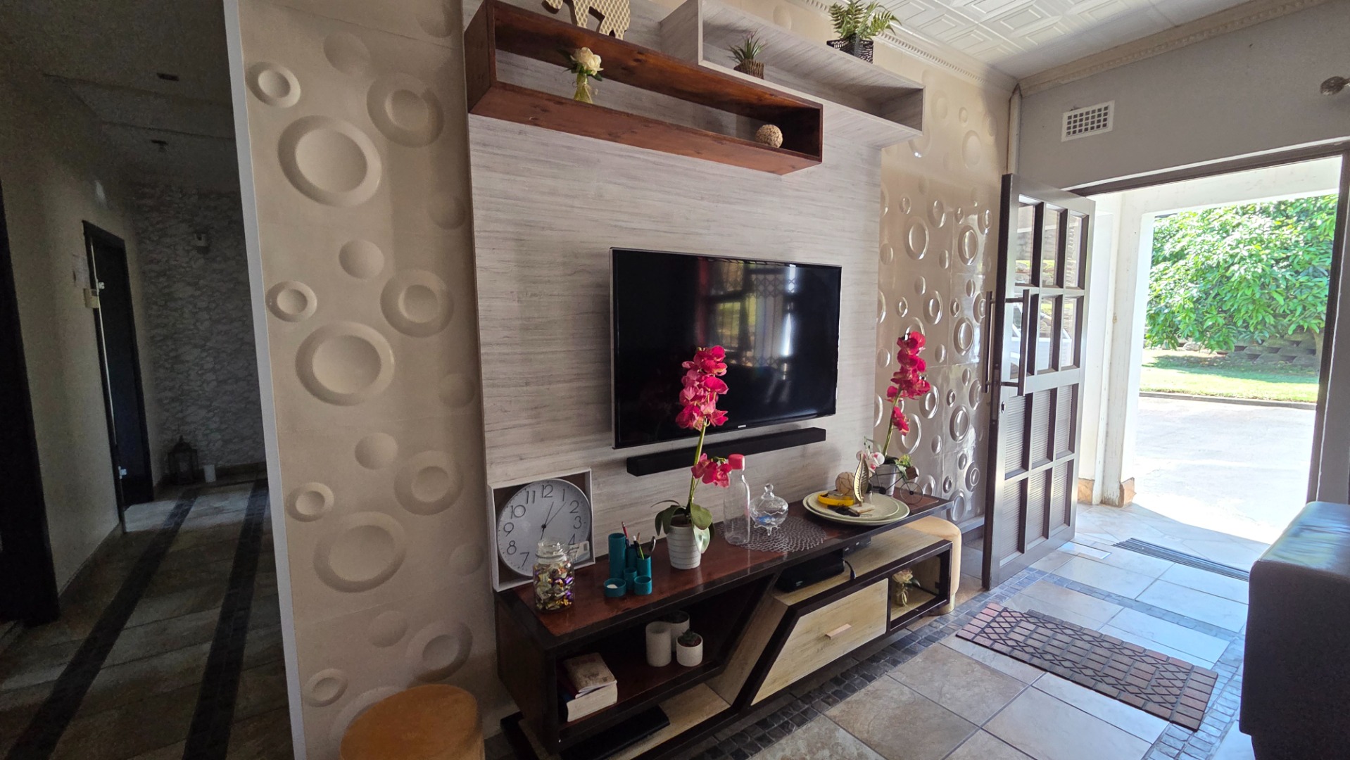 Discover this inviting residential property located in the sought-after coastal area of Shelly Beach, Margate. The home presents a welcoming kerb appeal with its white stucco exterior, modern dark-tinted windows, and a covered entrance porch featuring decorative columns. A paved forecourt provides convenient off-street parking, complemented by a secure roll-up garage, and an ADT security sign offers peace of mind. Step inside to an open-plan layout that seamlessly connects the lounge and dining areas, creating an adaptable living space. The interior benefits from pressed ceilings, adding a touch of character. The living area features a modern entertainment unit with a wall-mounted TV and stylish 3D textured accent walls, receiving ample natural light. The functional kitchen is equipped with wooden cabinets, granite-look countertops, and a large window overlooking lush greenery, providing a bright and practical space for daily living. This residence offers three comfortable bedrooms, supported by one well-appointed bathroom and an additional ensuite bathroom, ensuring convenience for residents. The property also includes a flatlet, providing versatile options for extended family, guests, or potential rental income. Outdoor living is a highlight, with a generous 1371 sqm erf featuring a large, sloping garden adorned with mature trees, offering natural shade and a serene environment. A private balcony provides an ideal spot for relaxation and enjoying the views. With one garage and four additional parking spaces, there is ample room for vehicles. Pets are allowed, making this a perfect home for animal lovers. Situated in Shelly Beach, Margate, this property offers a desirable coastal lifestyle, with easy access to local amenities and the beautiful beaches of the South African coastline. Key Features: * 3 Bedrooms, 1 Bathroom, 1 Ensuite * Open-plan Lounge and Dining Room * Functional Kitchen with Natural Light * Large 1371 sqm Erf with Garden and Mature Trees * Private Balcony * 1 Garage and 4 Parking Spaces * Includes a Flatlet * Pet-Friendly Property * Coastal Beach Location