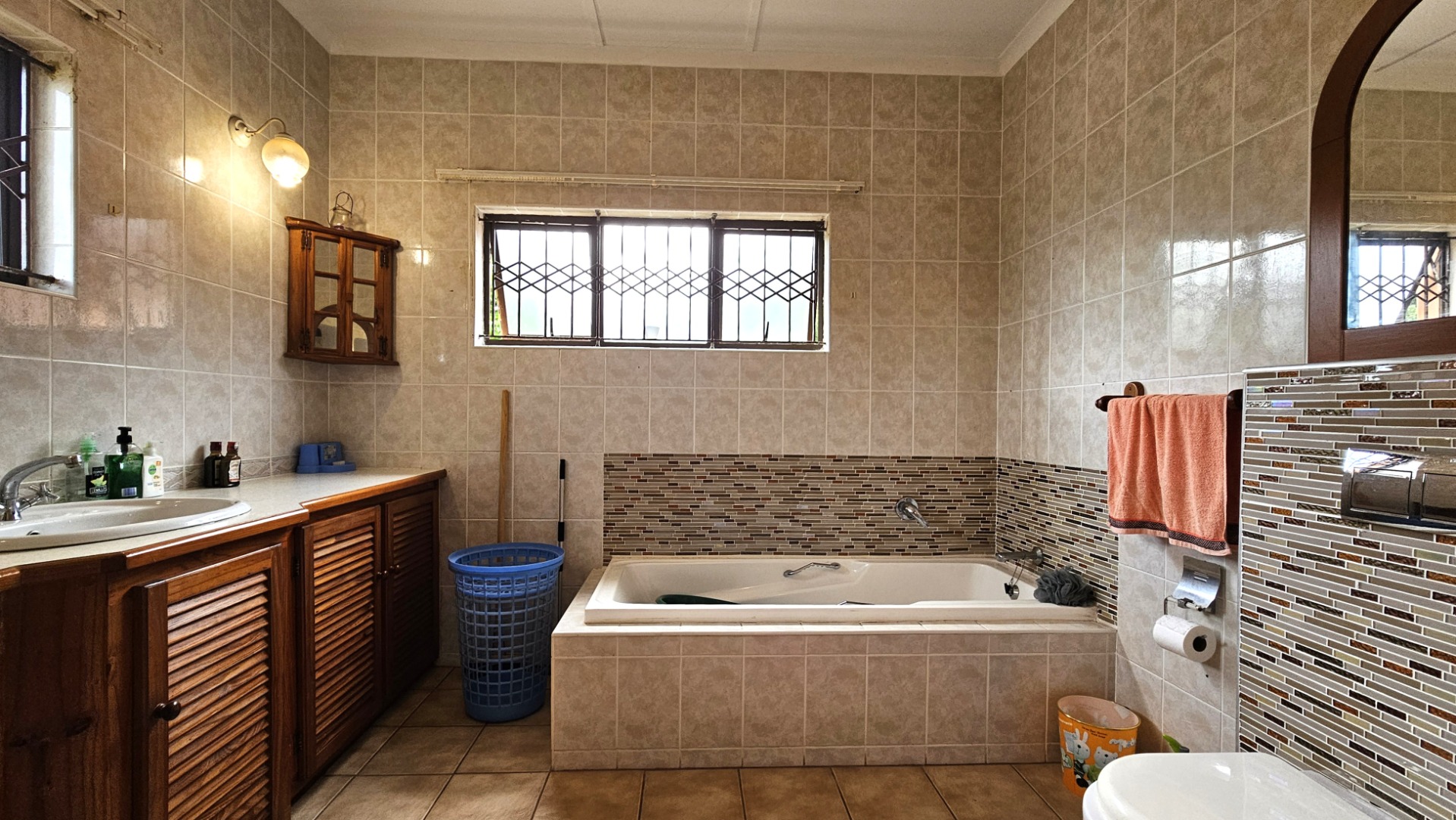 Imagine pulling up to your lovely new home in Shelly Beach, where the vibrant peach-colored exterior and striking red tiled roof immediately catch your eye. This charming property sits on a generous 1572 sqm erf, offering plenty of space to breathe and enjoy the coastal lifestyle. You'll love the large, paved driveway that leads to two double garages, providing ample parking for all your vehicles and even extra storage. The lush green garden and tropical landscaping create a welcoming atmosphere, making you feel right at home from the moment you arrive. Step inside and discover a comfortable and inviting living space. The open-plan layout seamlessly connects the spacious lounge and dining area, perfect for family gatherings or just chilling out. You'll appreciate the natural light streaming in through the large windows and sliding doors, making the whole area feel bright and airy. Tiled flooring throughout means easy cleaning, and a ceiling fan keeps things cool on warmer days. The U-shaped kitchen is a real treat, offering loads of counter space and storage in its light-toned cabinets. It comes with integrated appliances, a handy breakfast bar, and even a pantry for all your goodies. Plus, there's an air conditioning unit in the kitchen area for extra comfort. This home boasts three comfy bedrooms, giving everyone their own private sanctuary. With three bathrooms in total, including two convenient ensuites, there's no more waiting in line! The bathrooms are fully tiled, making them super easy to maintain, and feature built-in bathtubs and separate enclosed showers in some, along with modern fixtures. Natural light flows in through windows, and decorative mosaic accents add a touch of character. Beyond the main living areas, you'll find a dedicated family TV room, perfect for movie nights or just unwinding. There are also staff quarters, adding to the home's versatility. When it comes to peace of mind, this property has you covered. It features 24-hour security, CCTV, and an access gate, ensuring a safe environment. You'll also find burglar bars on windows and security gates on doors, providing an extra layer of protection. Plus, there's a satellite dish for all your entertainment needs and special lights to brighten up your evenings. Nestled in the popular coastal suburb of Shelly Beach, Margate, this home offers a fantastic suburban lifestyle. You're just a stone's throw away from beautiful beaches, perfect for enjoying the South African sunshine and aquatic activities. It’s a lovely spot to call home, combining convenience with a relaxed seaside vibe. Key Features: * 3 Bedrooms, 3 Bathrooms (2 Ensuites) * 2 Double Garages & Paved Driveway * Spacious Lounge, Dining Room & Family TV Room * U-shaped Kitchen with Pantry & Breakfast Bar * Generous 1572 sqm Erf Size * Lush Garden & Tropical Landscaping * 24-Hour Security, CCTV, Access Gate, Burglar Bars & Security Gates * Staff Quarters * Coastal Beach & Suburban Location