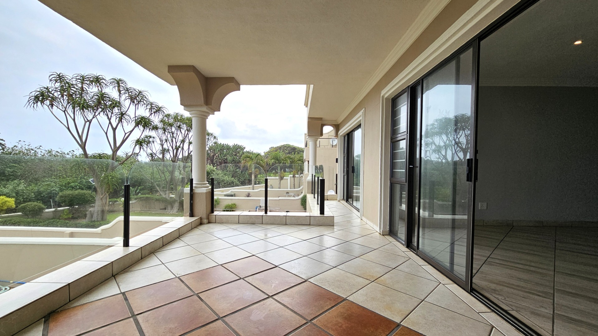Discover this charming 4-bedroom, 2-bathroom residence, spanning 187 sqm, nestled within a secure complex in the sought-after coastal suburb of Shelly Beach, Margate. Boasting a distinctive Mediterranean/Tuscan architectural style, the property presents a well-maintained exterior with a paved driveway leading to multiple individual garages. Step inside to a spacious open-plan living and dining area, designed for seamless flow and abundant natural light. The interior showcases modern tiled flooring, neutral walls, and elegant crown molding. An air conditioning unit ensures year-round comfort. The well-appointed kitchen is a highlight, offering light wood-look cabinetry, dark countertops, a convenient breakfast bar, and a pantry, equipped with a built-in oven and extractor fan. Four comfortable bedrooms and two bathrooms, including one ensuite, provide ample accommodation. The property truly shines with its exceptional outdoor spaces, providing direct, expansive ocean views. Large sliding glass doors connect the interior to a generous balcony and patio area, perfect for entertaining. This outdoor haven features sleek glass railings for unobstructed vistas and a built-in braai. A private terraced garden with a grassy lawn and a children's swing set adds to the family-friendly appeal, all set amidst lush coastal vegetation. Practical features include two garages, ensuring secure parking. This property offers peace of mind within its gated community setting. The area is renowned for its beautiful beaches and vibrant community, offering a desirable suburban lifestyle with easy access to aquatic activities. Key Features: * 4 Bedrooms, 2 Bathrooms (1 En-suite) * Expansive Ocean Views * Open-Plan Living & Dining * Modern Kitchen with Pantry * Spacious Balcony & Patio with Built-in Braai * Private Terraced Garden * Two Garages * Secure Complex Living * Air Conditioning
