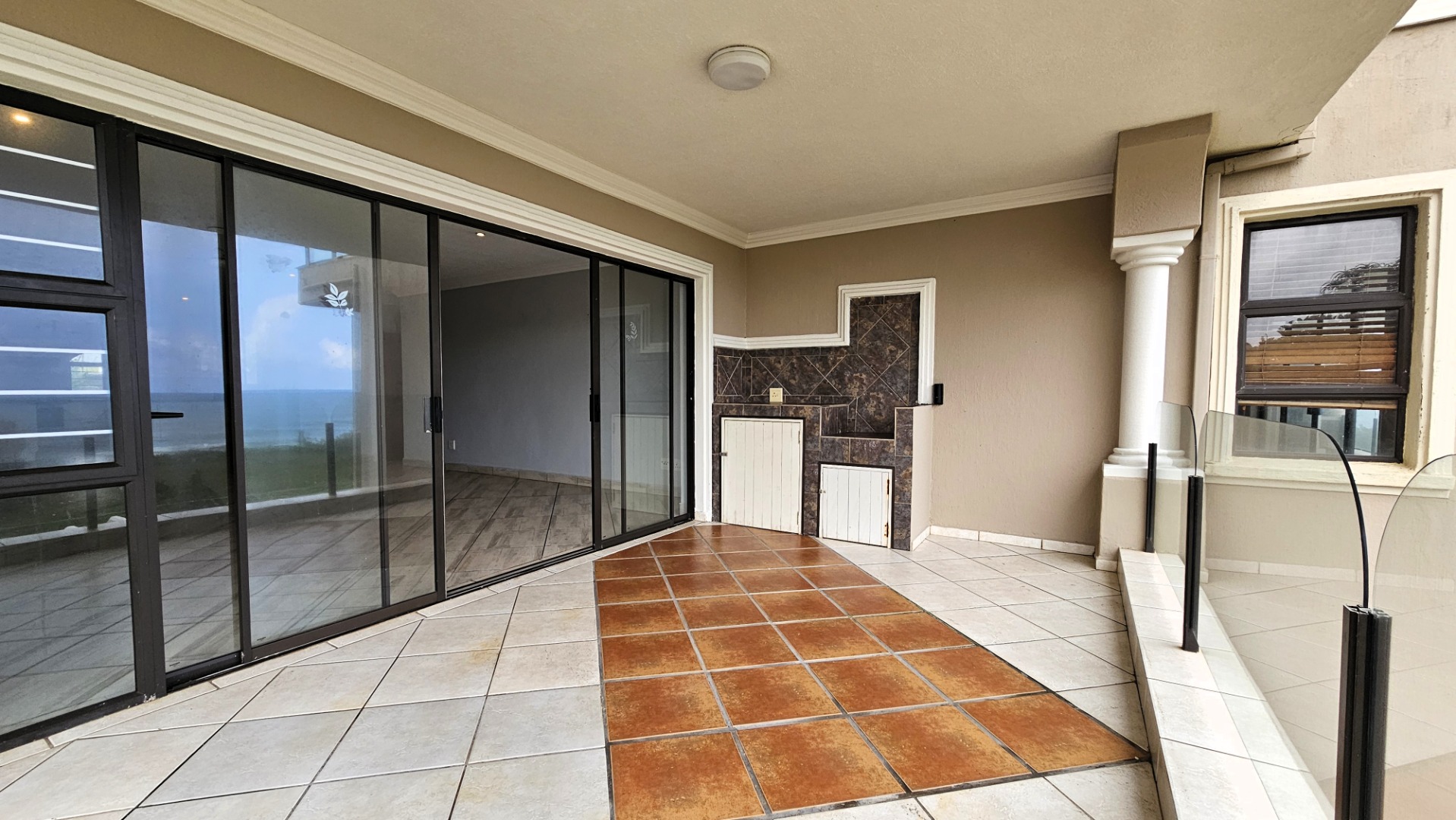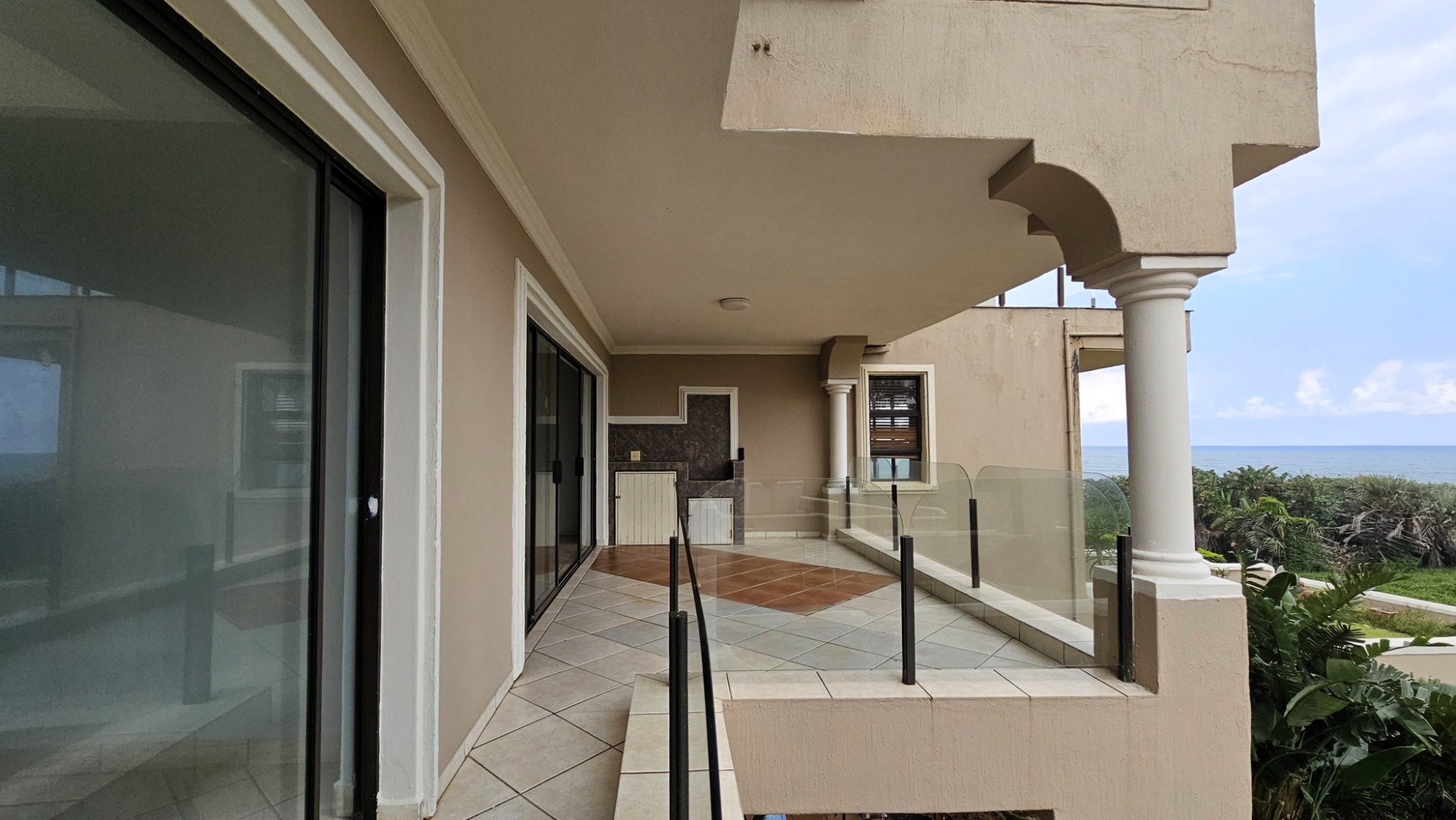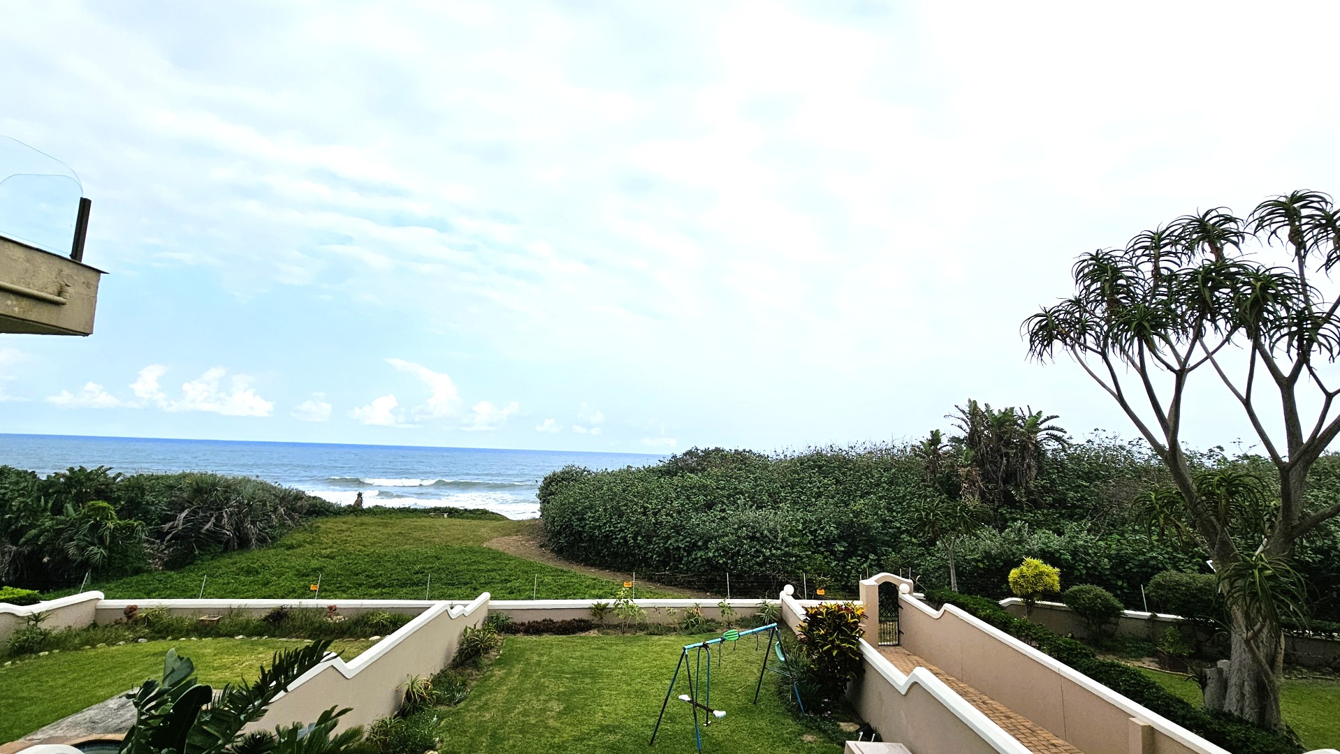 Discover this charming 4-bedroom, 2-bathroom residence, spanning 187 sqm, nestled within a secure complex in the sought-after coastal suburb of Shelly Beach, Margate. Boasting a distinctive Mediterranean/Tuscan architectural style, the property presents a well-maintained exterior with a paved driveway leading to multiple individual garages. Step inside to a spacious open-plan living and dining area, designed for seamless flow and abundant natural light. The interior showcases modern tiled flooring, neutral walls, and elegant crown molding. An air conditioning unit ensures year-round comfort. The well-appointed kitchen is a highlight, offering light wood-look cabinetry, dark countertops, a convenient breakfast bar, and a pantry, equipped with a built-in oven and extractor fan. Four comfortable bedrooms and two bathrooms, including one ensuite, provide ample accommodation. The property truly shines with its exceptional outdoor spaces, providing direct, expansive ocean views. Large sliding glass doors connect the interior to a generous balcony and patio area, perfect for entertaining. This outdoor haven features sleek glass railings for unobstructed vistas and a built-in braai. A private terraced garden with a grassy lawn and a children's swing set adds to the family-friendly appeal, all set amidst lush coastal vegetation. Practical features include two garages, ensuring secure parking. This property offers peace of mind within its gated community setting. The area is renowned for its beautiful beaches and vibrant community, offering a desirable suburban lifestyle with easy access to aquatic activities. Key Features: * 4 Bedrooms, 2 Bathrooms (1 En-suite) * Expansive Ocean Views * Open-Plan Living & Dining * Modern Kitchen with Pantry * Spacious Balcony & Patio with Built-in Braai * Private Terraced Garden * Two Garages * Secure Complex Living * Air Conditioning