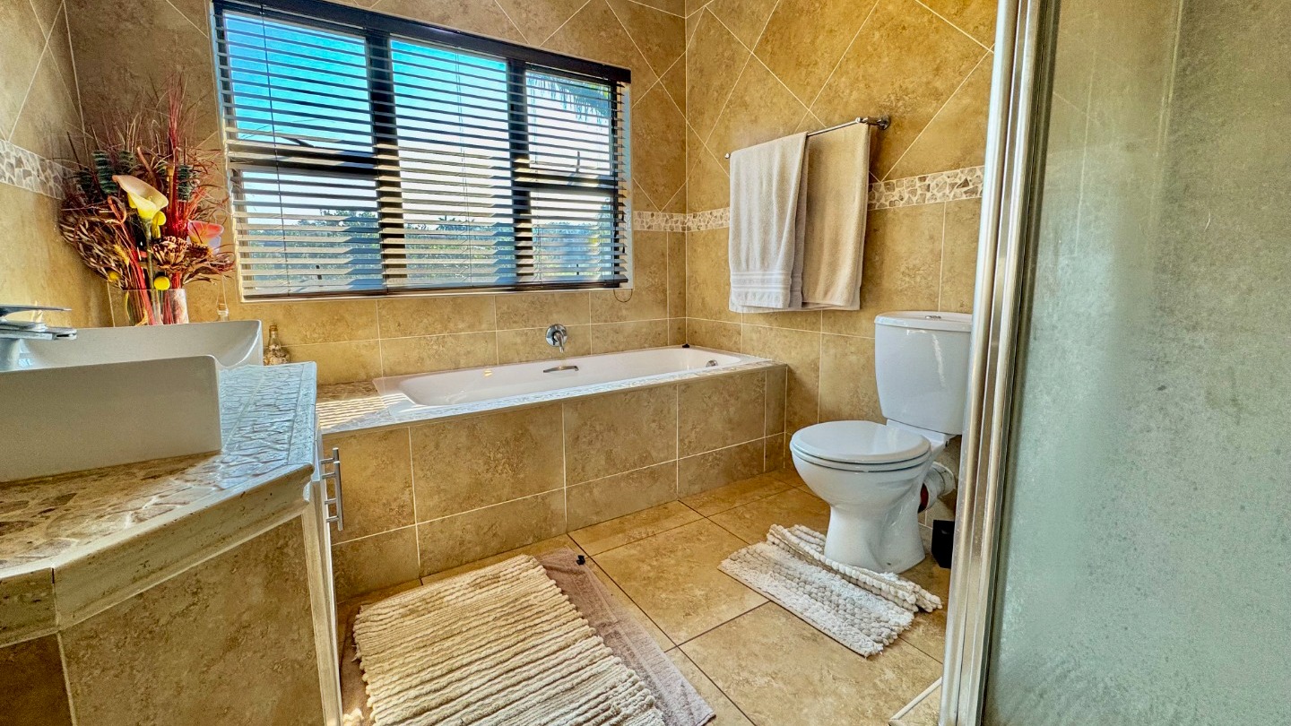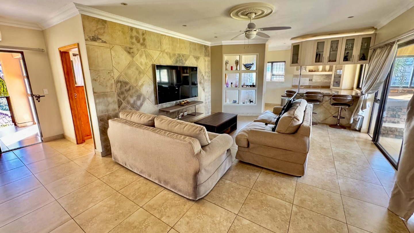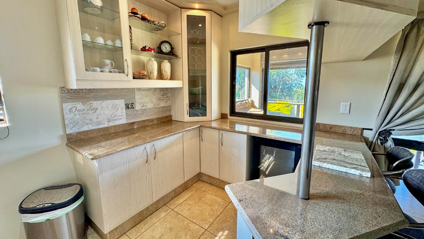 Upstairs, a second lounge and sleek bar area create a relaxed entertainment zone that opens onto a generous balcony with a built in braai and jacuzzi. Here, elevated sea views set the tone for slow mornings and relaxed evenings. The main bedroom forms a private retreat with a luxurious en suite and its own balcony, while two additional bedrooms and a spacious family bathroom complete the upper level.
