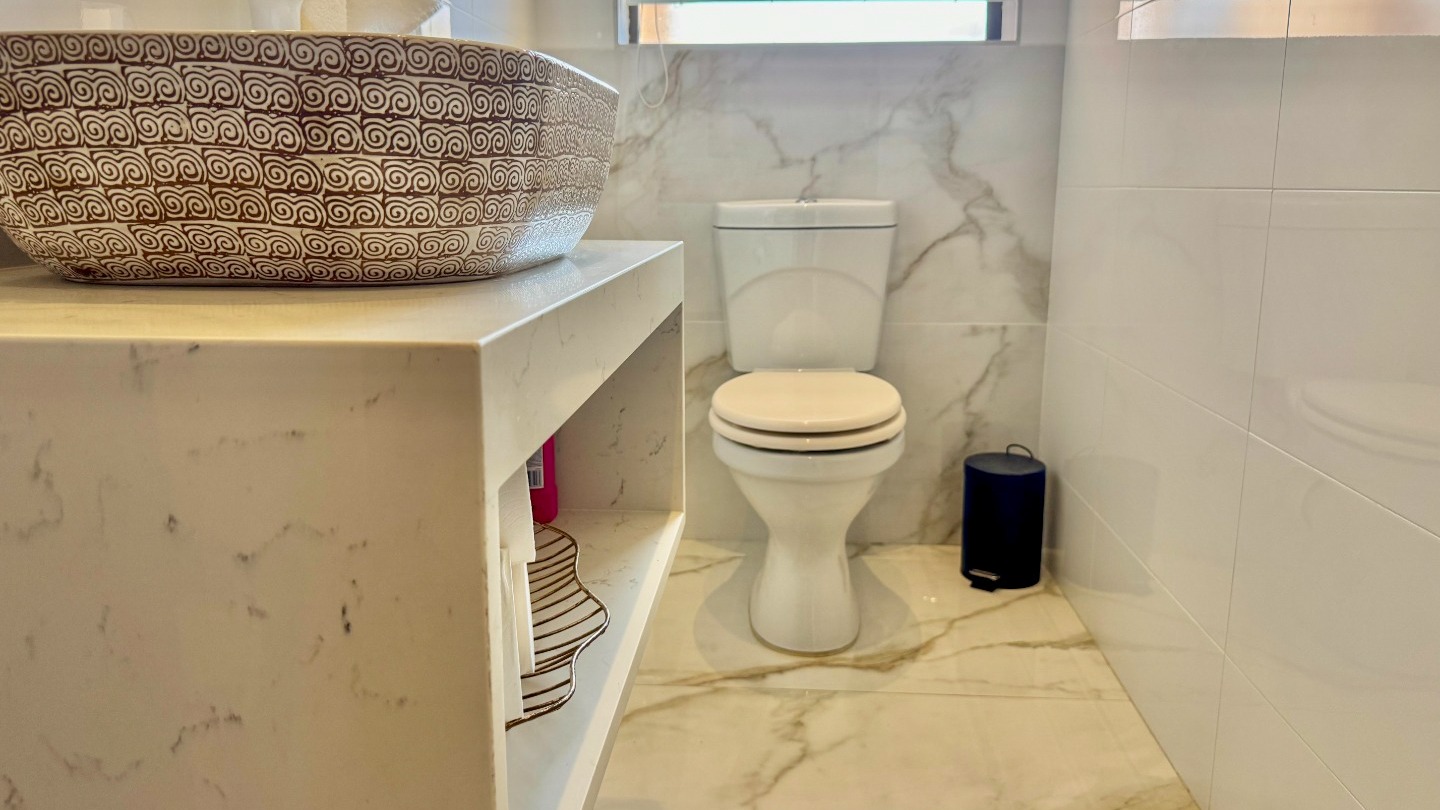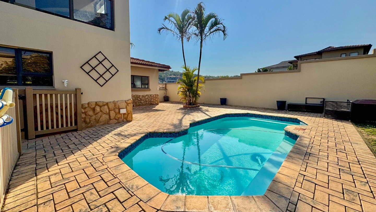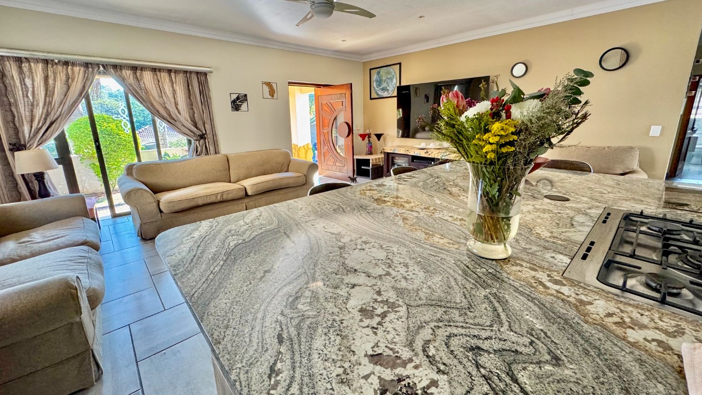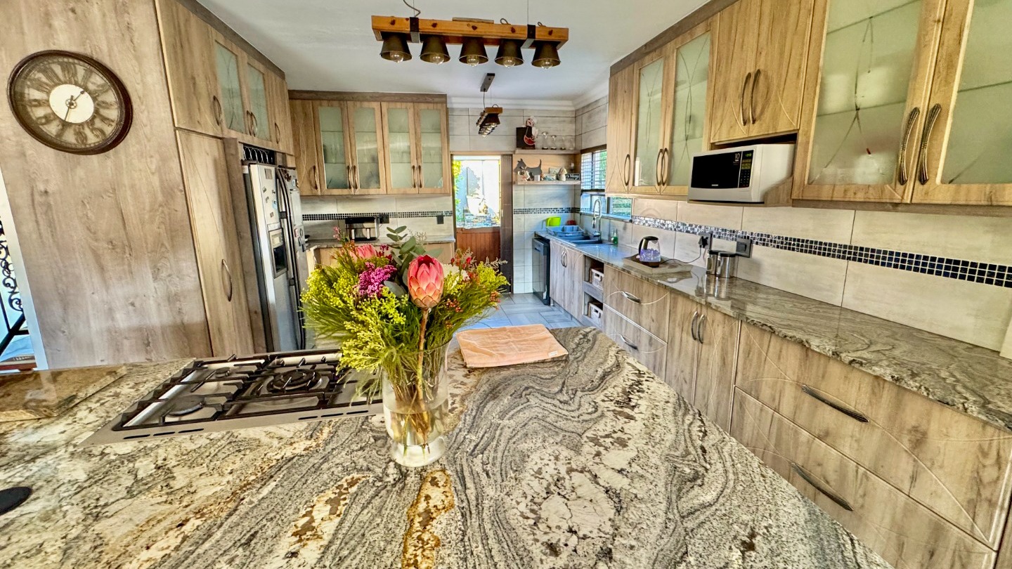 Upstairs, a second lounge and sleek bar area create a relaxed entertainment zone that opens onto a generous balcony with a built in braai and jacuzzi. Here, elevated sea views set the tone for slow mornings and relaxed evenings. The main bedroom forms a private retreat with a luxurious en suite and its own balcony, while two additional bedrooms and a spacious family bathroom complete the upper level.