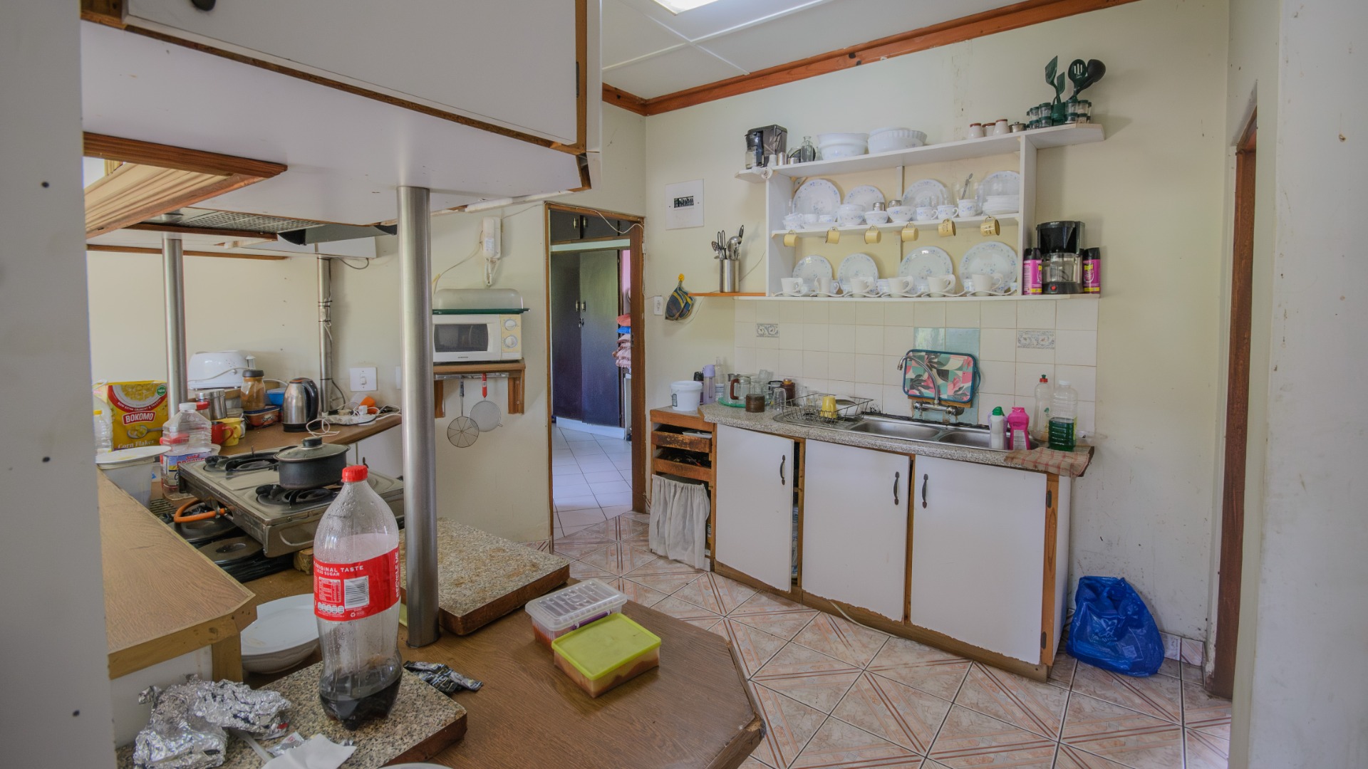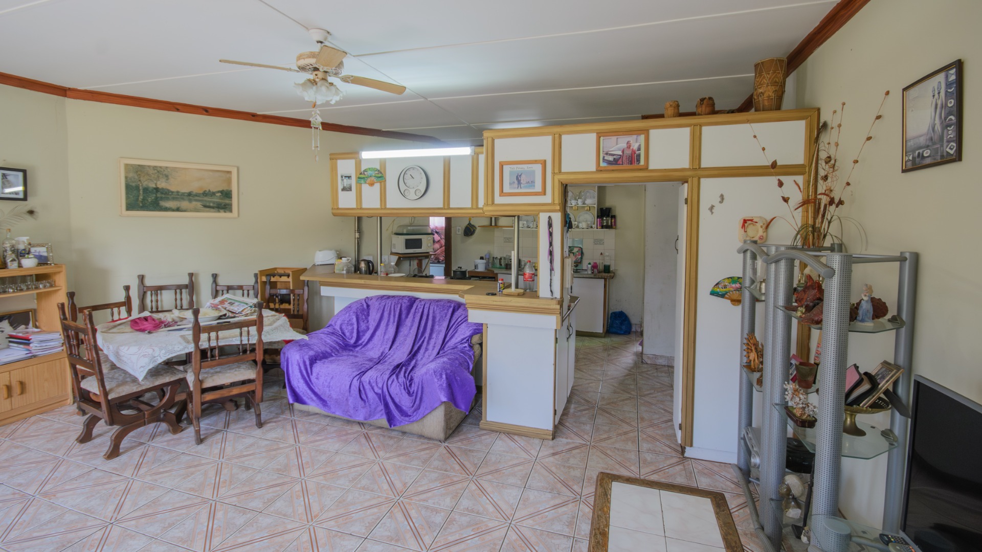 The main dwelling is currently divided into three separate living sections. These include two spacious two bedroom units and a one bedroom unit with its own kitchenette and living space. Each section operates independently, making the property suitable for extended family living or multiple rental opportunities. The internal layout allows a simple conversion back into one large family home if desired.