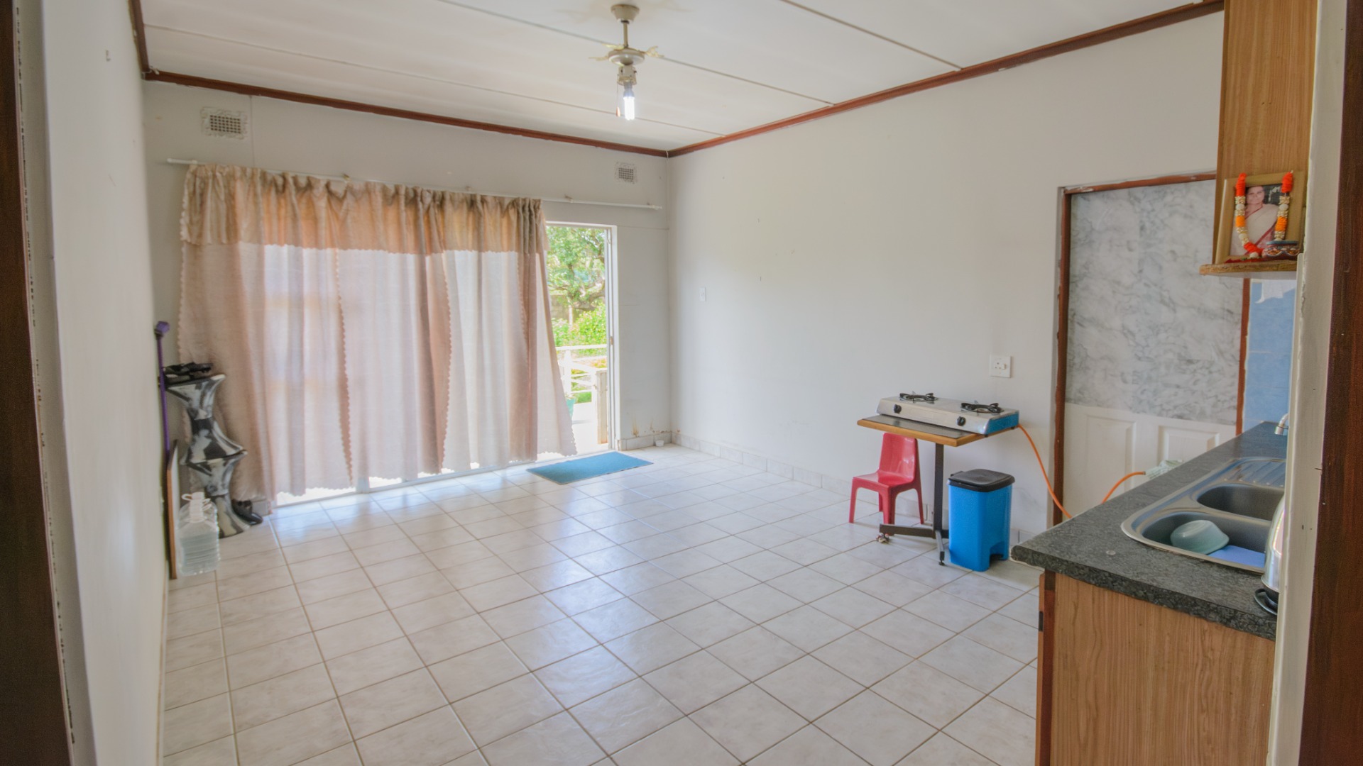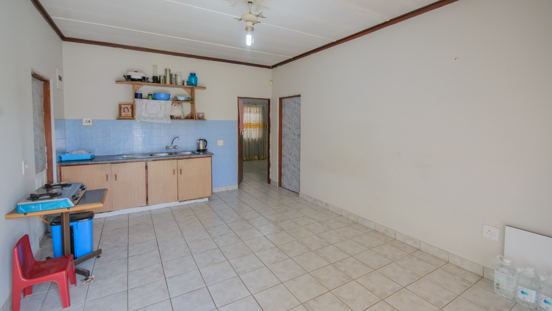 The main dwelling is currently divided into three separate living sections. These include two spacious two bedroom units and a one bedroom unit with its own kitchenette and living space. Each section operates independently, making the property suitable for extended family living or multiple rental opportunities. The internal layout allows a simple conversion back into one large family home if desired.