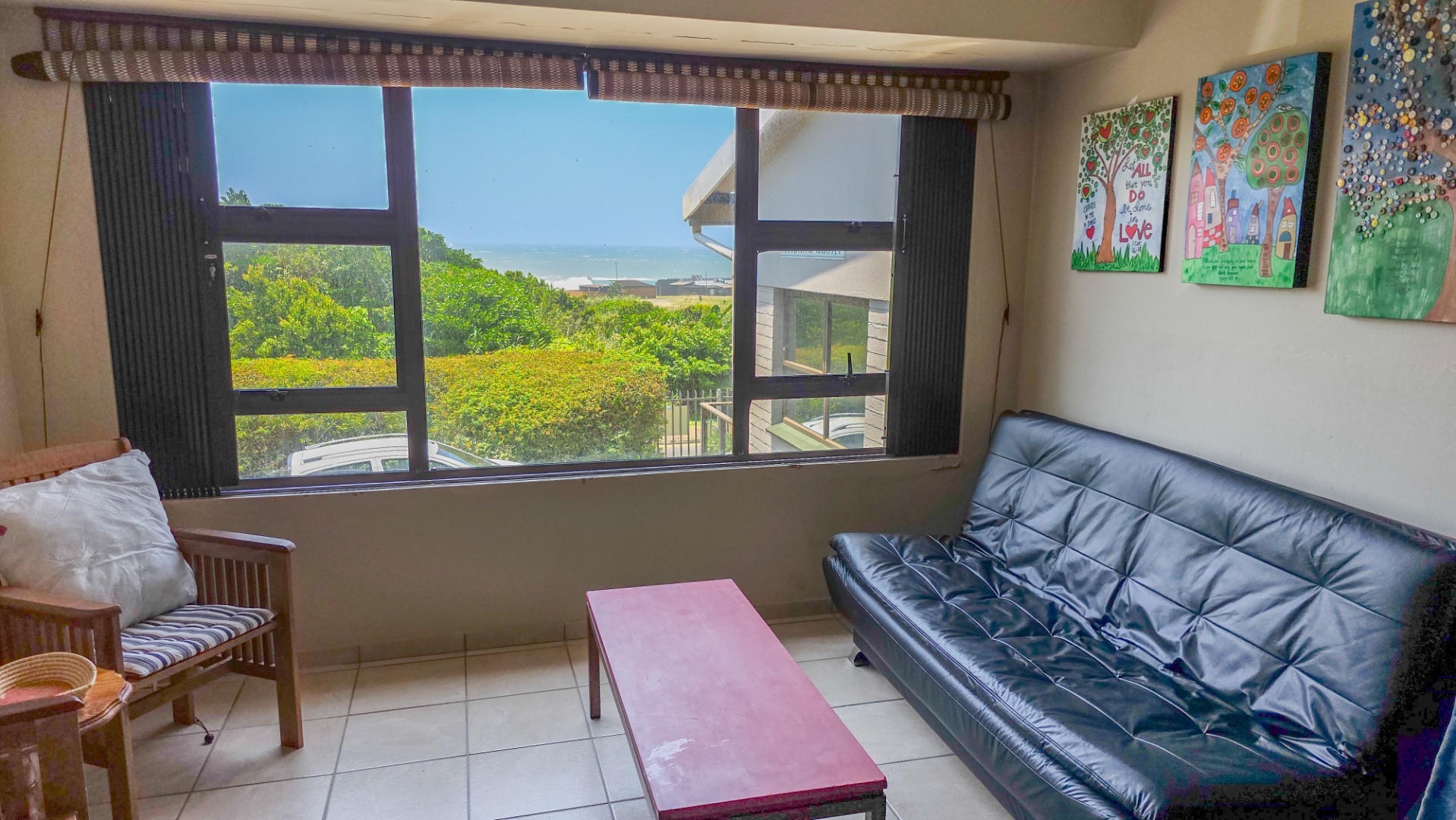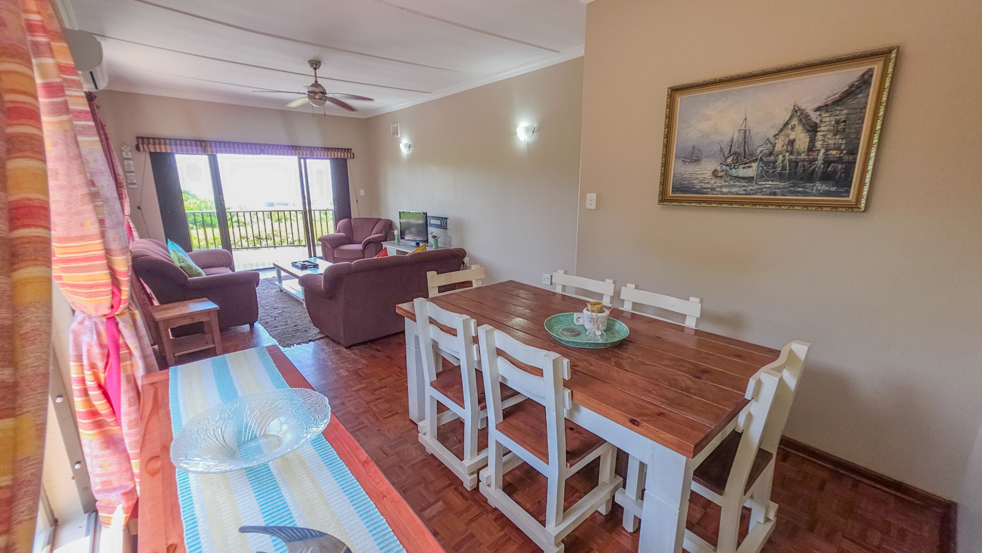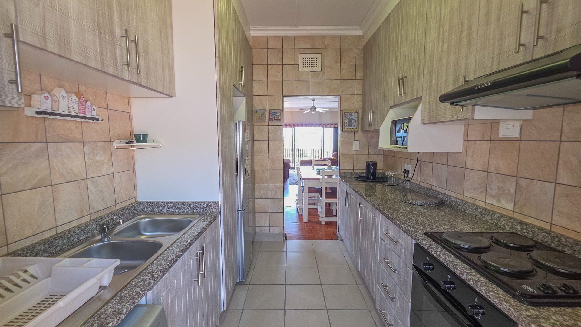 This well presented townhouse in St Michaels on Sea offers comfortable coastal living with a practical, easy to manage layout. The open plan living area is bright and functional, flowing naturally between the lounge, dining area, and kitchen. The lounge opens onto a balcony with open sea views, providing a peaceful spot for morning coffee or relaxing in the evenings. Air conditioning is fitted in the lounge and dining area, while multiple ceiling fans throughout the home keep every space comfortable year round.