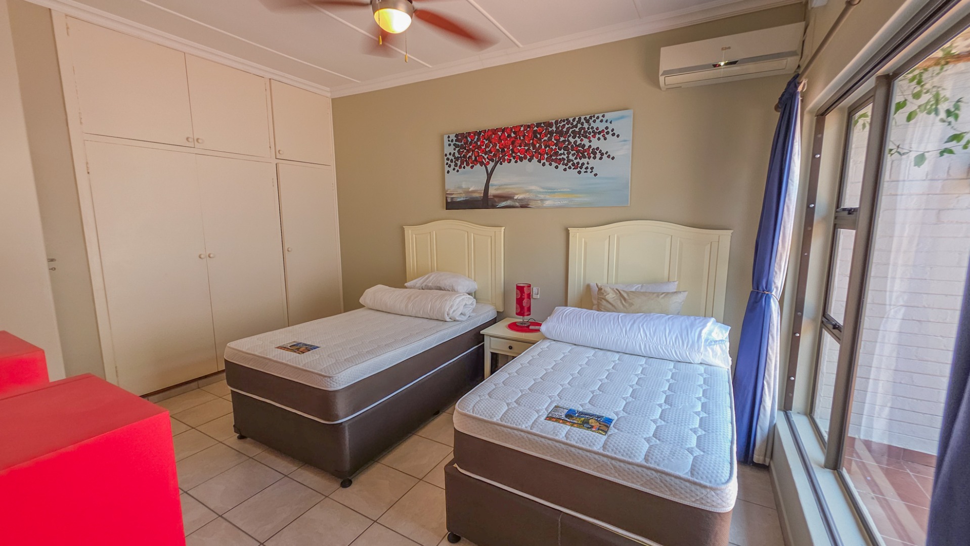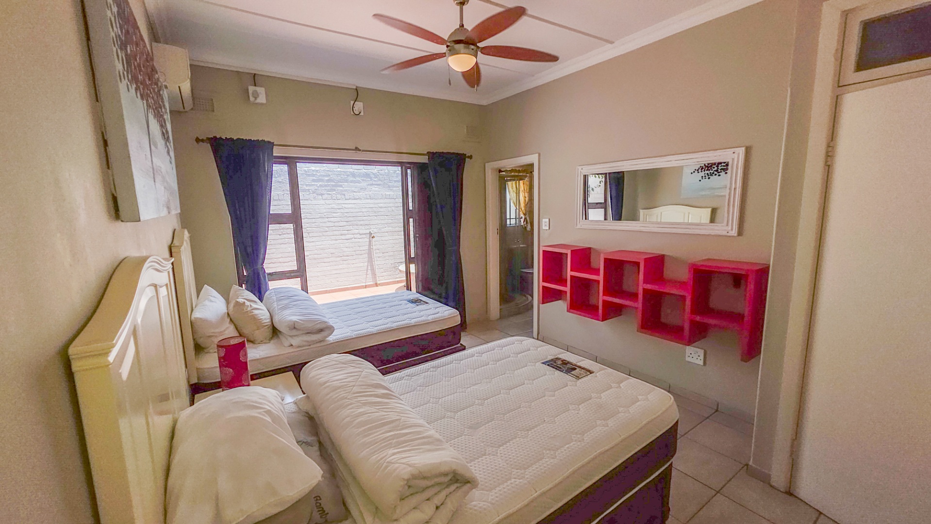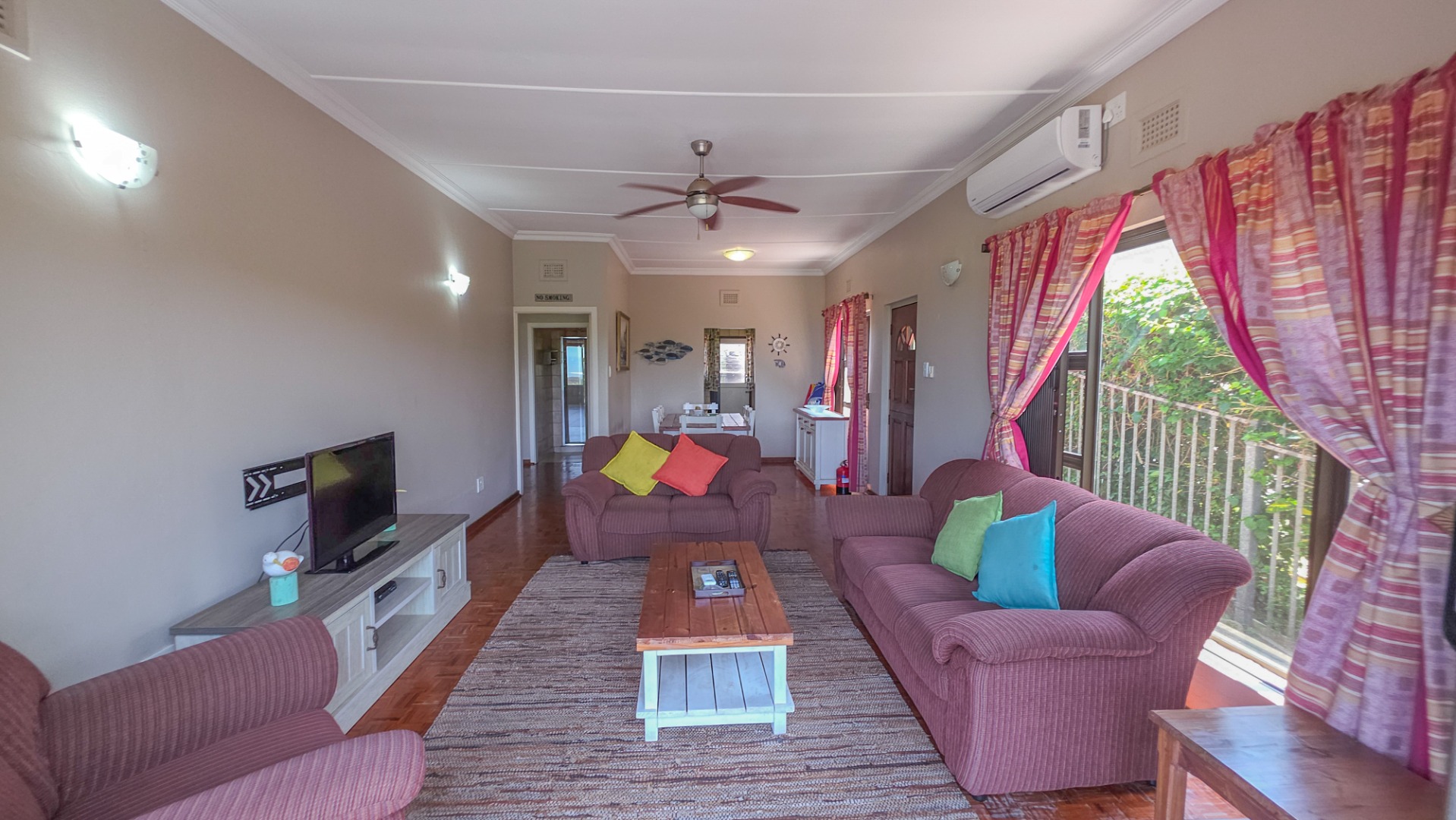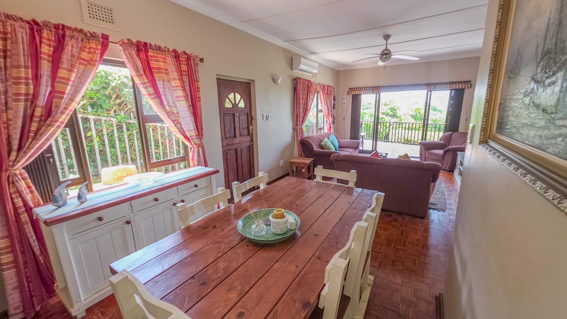 This well presented townhouse in St Michaels on Sea offers comfortable coastal living with a practical, easy to manage layout. The open plan living area is bright and functional, flowing naturally between the lounge, dining area, and kitchen. The lounge opens onto a balcony with open sea views, providing a peaceful spot for morning coffee or relaxing in the evenings. Air conditioning is fitted in the lounge and dining area, while multiple ceiling fans throughout the home keep every space comfortable year round.