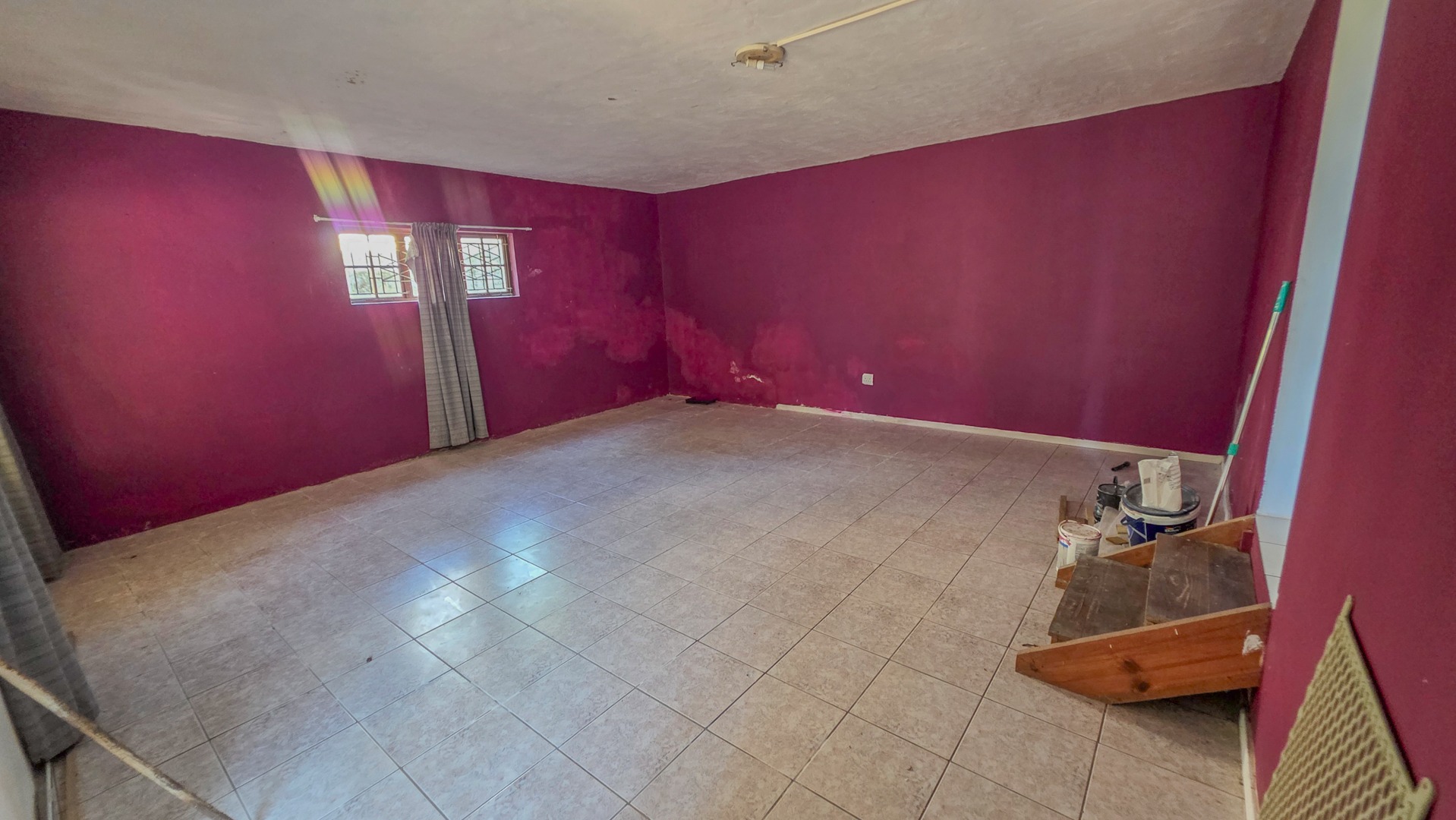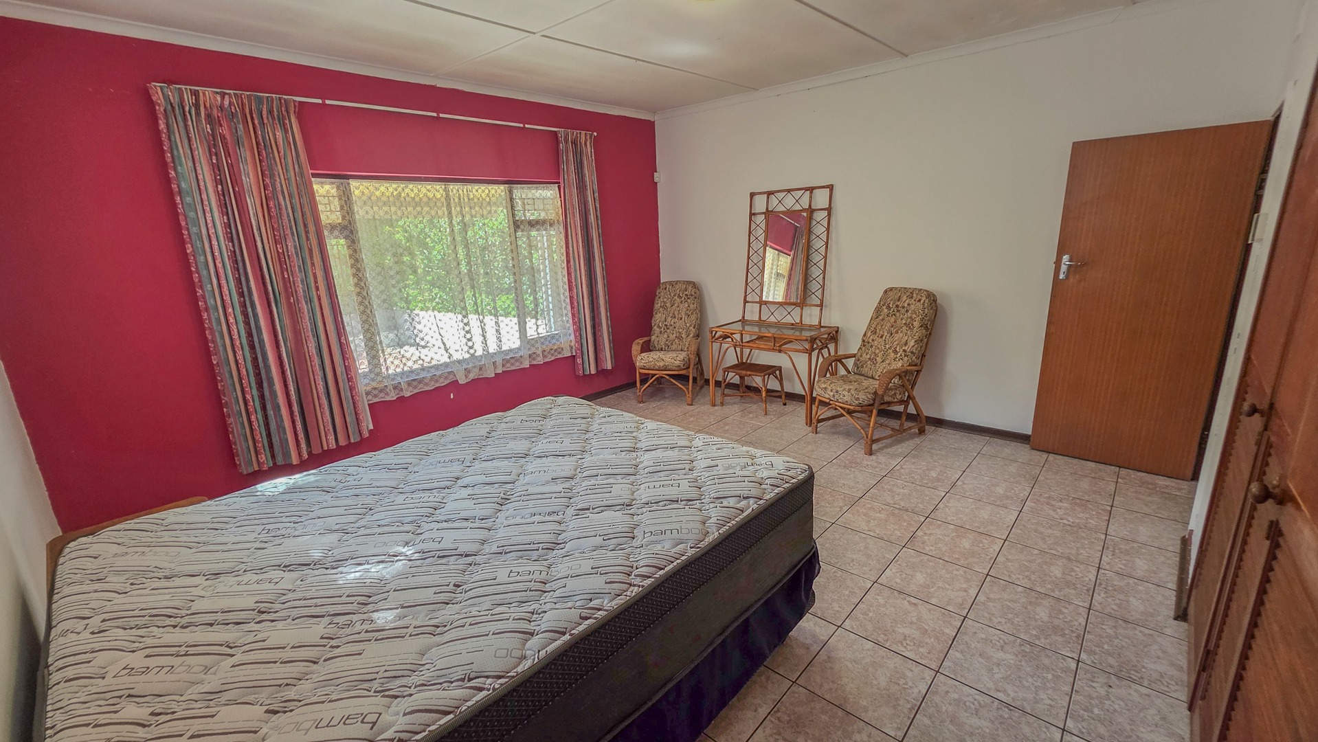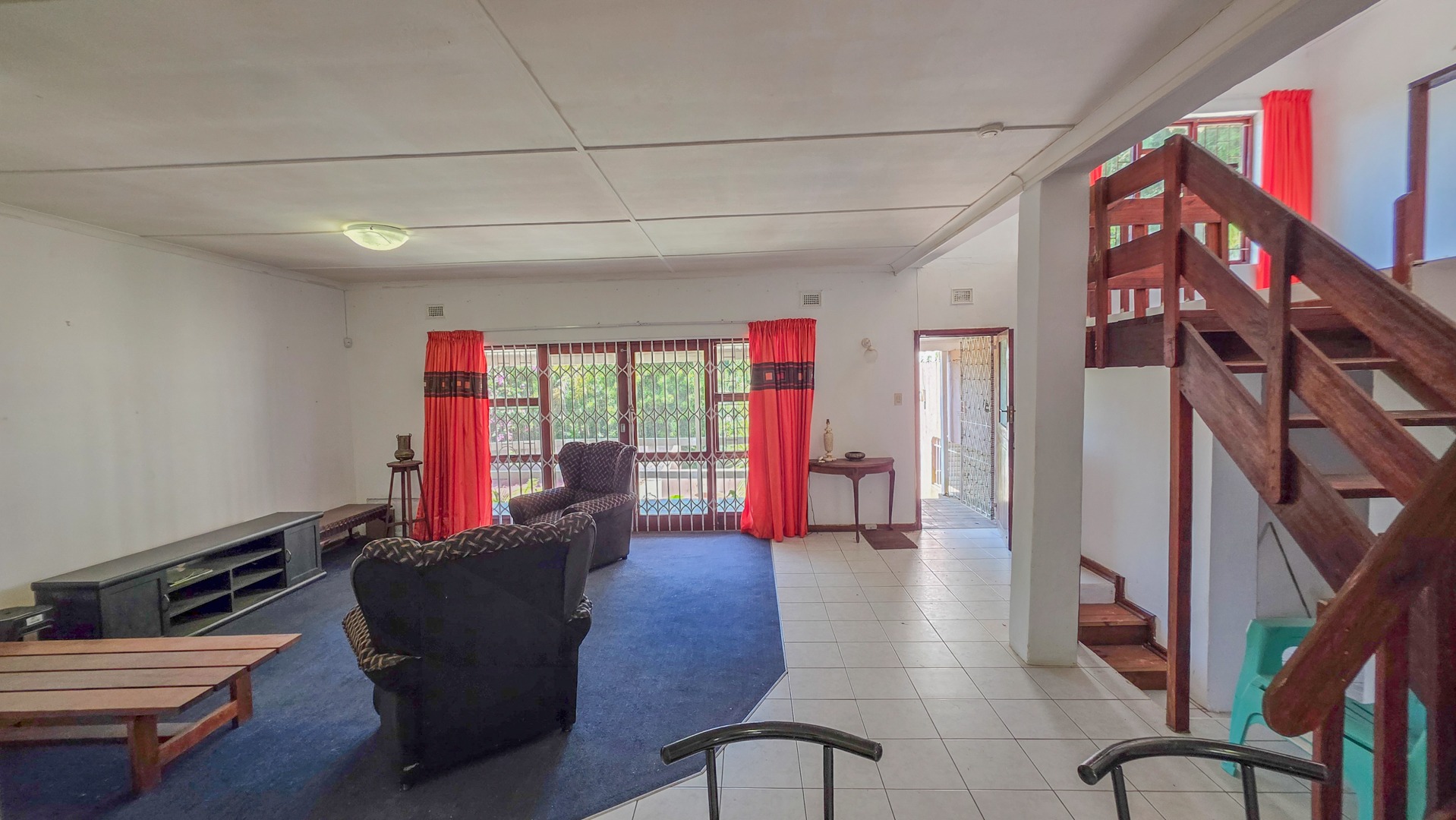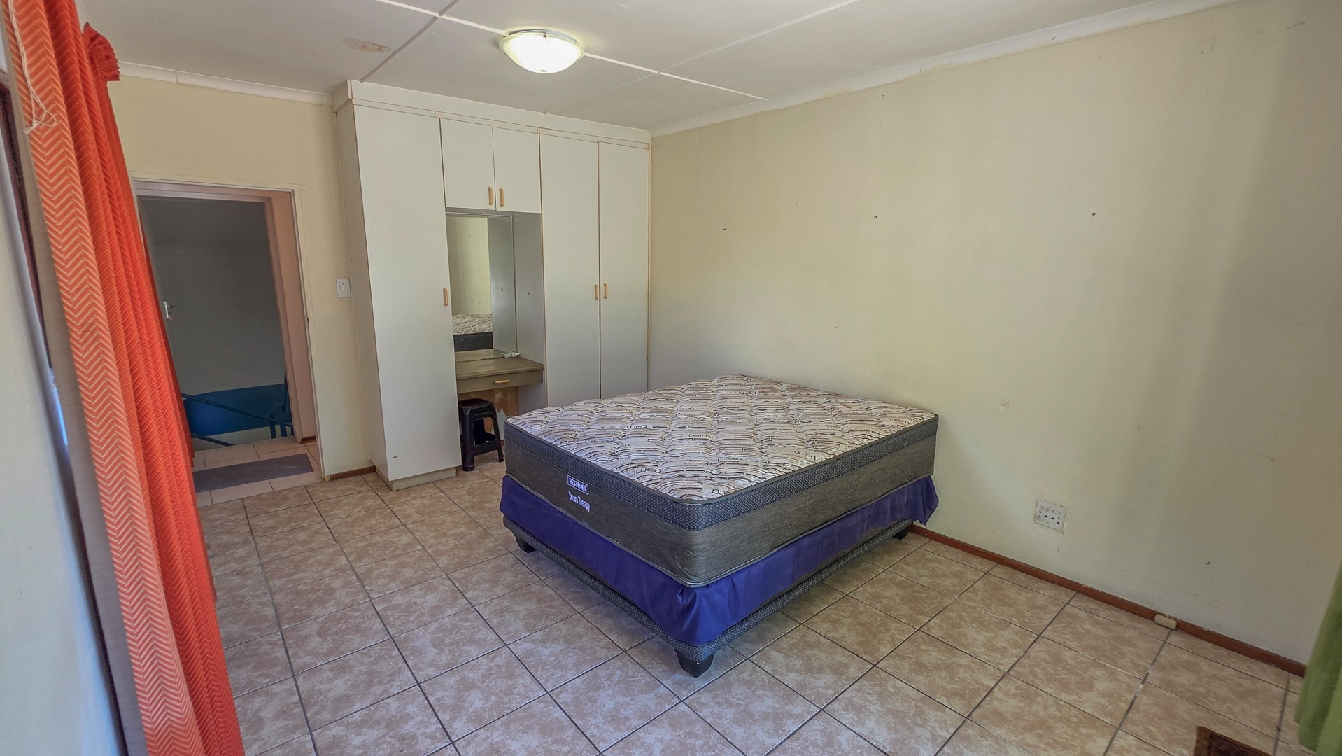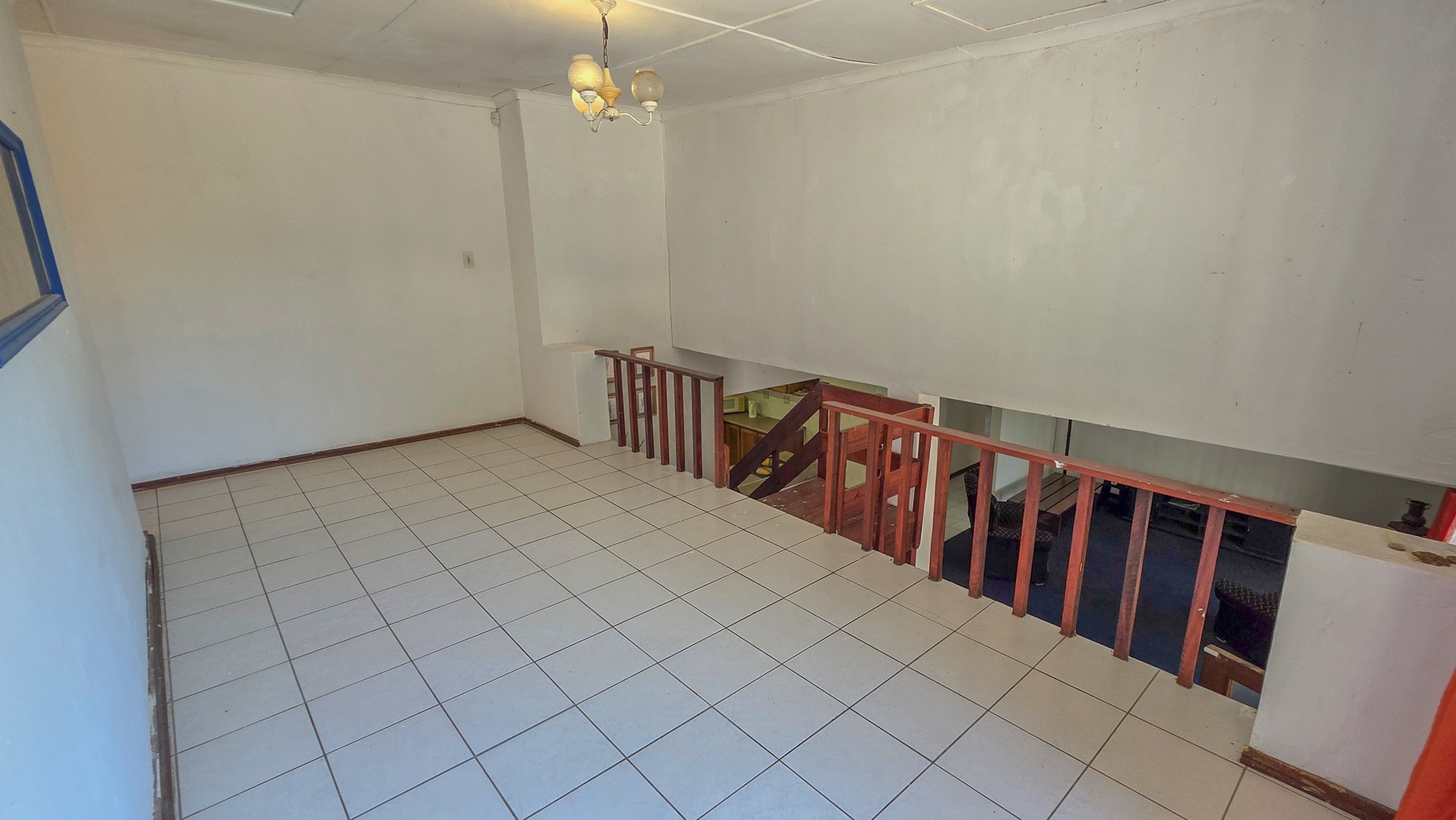 The main bedroom sits upstairs. You get built in cupboards, a private lounge and a patio with a clear view over the property. The upstairs bathroom sits a few steps down from the landing and includes a bath, toilet and basin. The outdoor area offers strong value. The pool sits next to a large entertainment space with built in braai facilities. The front yard gives you open space for recreation or future plans.